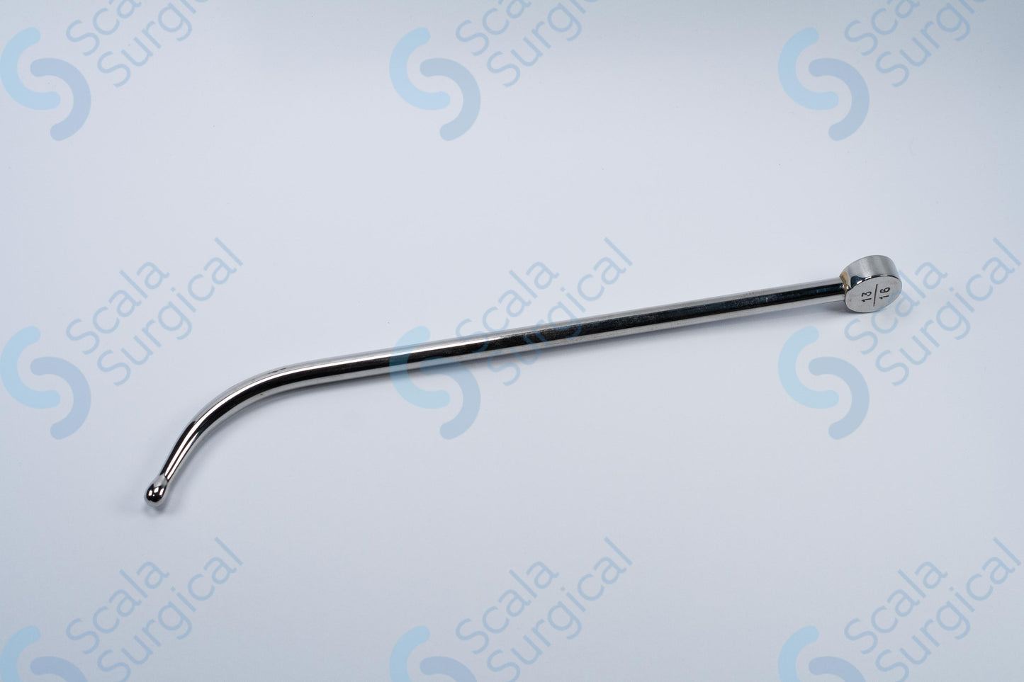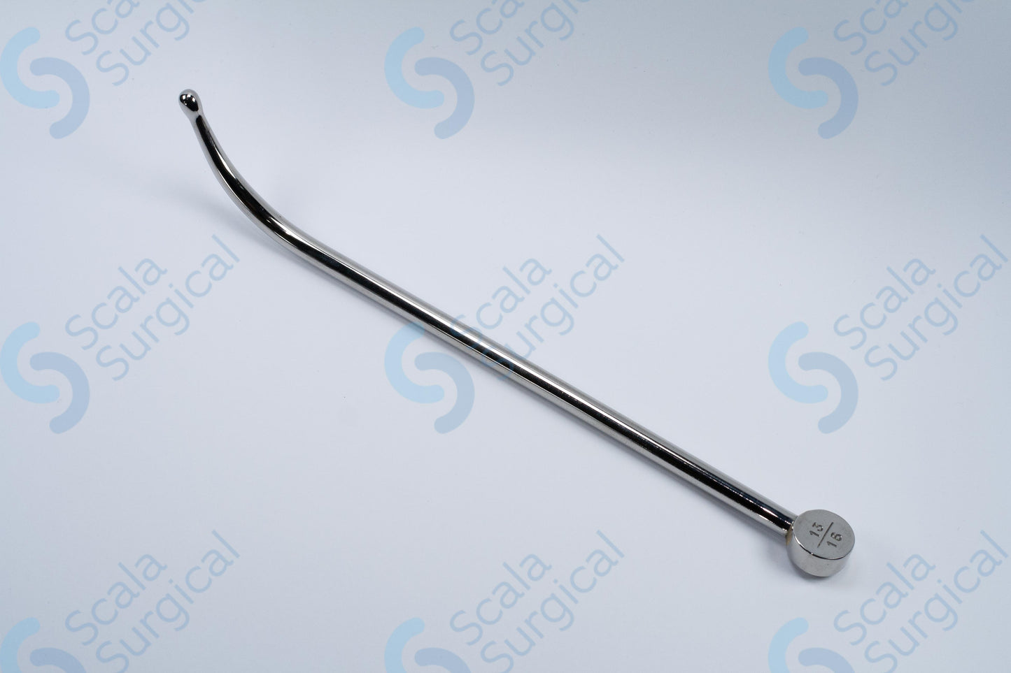A Lister Urethral Bougie is a device used during urethral procedures. It is a slender, flexible tube that is inserted into the urethra to help guide the passage of a catheter or other instrument. The 13 EG and 16 EG sizes refer to the diameter of the tube in millimeters.