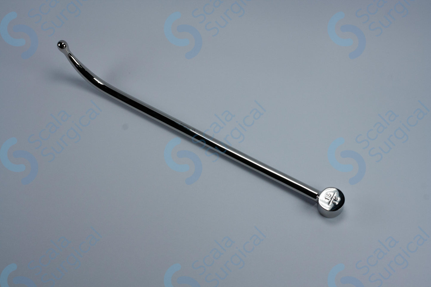 A Lister Urethral Bougie is a medical device used to dilate the urethra during urological procedures. It is a thin, flexible tube with a rounded tip that is inserted into the urethra and used to gradually widen the urethral opening. The 15 EG / 18 EG refers to the size of the bougie, with the 15 EG being the smaller and the 18 EG being the larger.