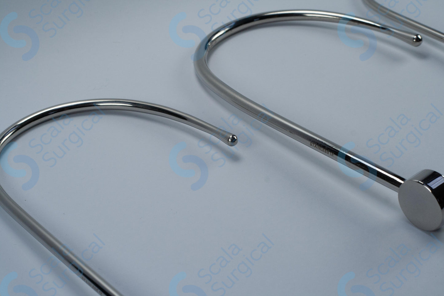 A Heygrove Retrograde Urethral Bougie Set of 3 (6? inch) is a medical device used in urology surgeries. It is a thin, flexible tube that is inserted into the urethra for dilatation, or stretching, of the urethra. This procedure is commonly used to treat urinary tract obstruction, urethral strictures, and other urological conditions.