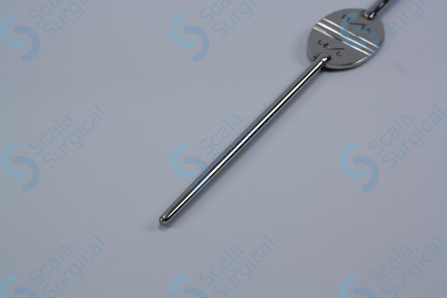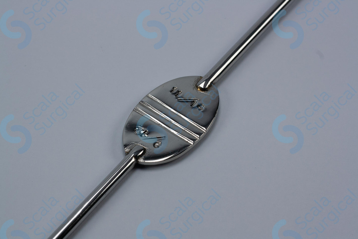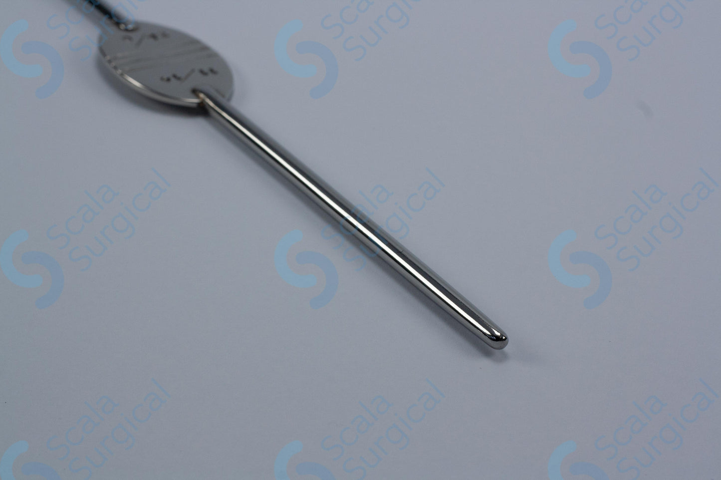 This is a type of medical device used to help guide the placement of an endotracheal tube (a tube inserted into the trachea to provide an airway) during intubation. The Canny Ryall Bougie is a flexible, curved metal rod with a rounded tip. It is available in different sizes, and this particular model ranges from 9/12 FG (French gauge) to 11/14 FG (245mm).
