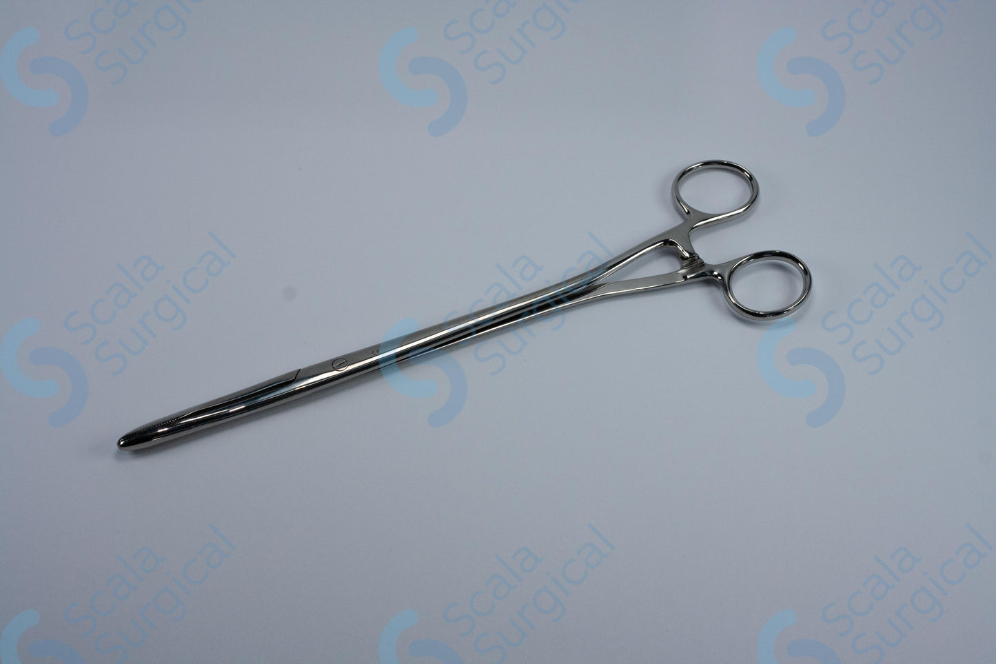 Collin Uterine Dressing Forceps Straight (10 inch) is a surgical instrument used to help with the placement of dressings in the uterus. The forceps have a long, straight shaft and curved tips that allow the physician to grasp and manipulate dressings within the uterus. They are typically used during gynecological procedures such as hysterectomies and other uterine surgeries.