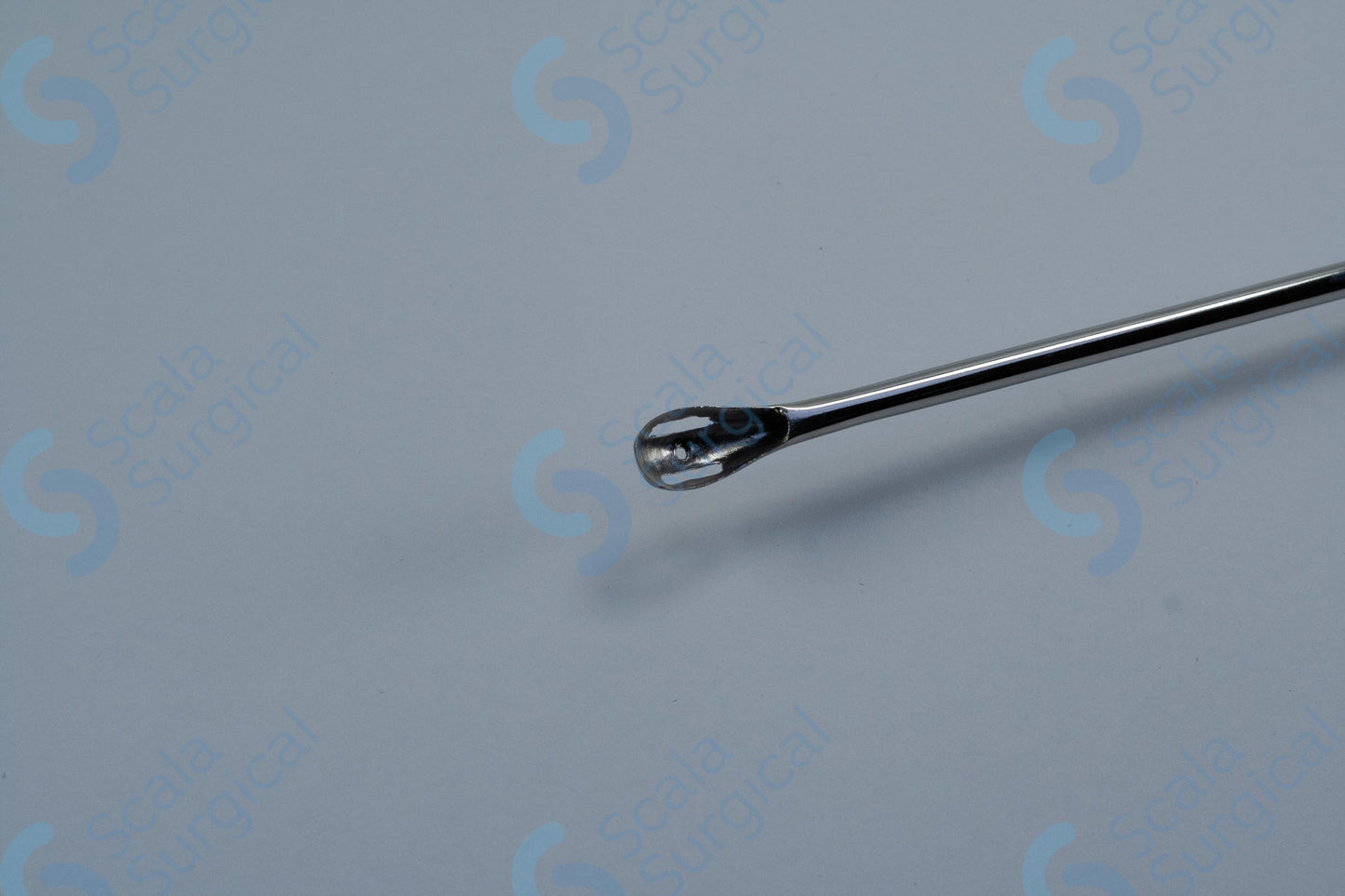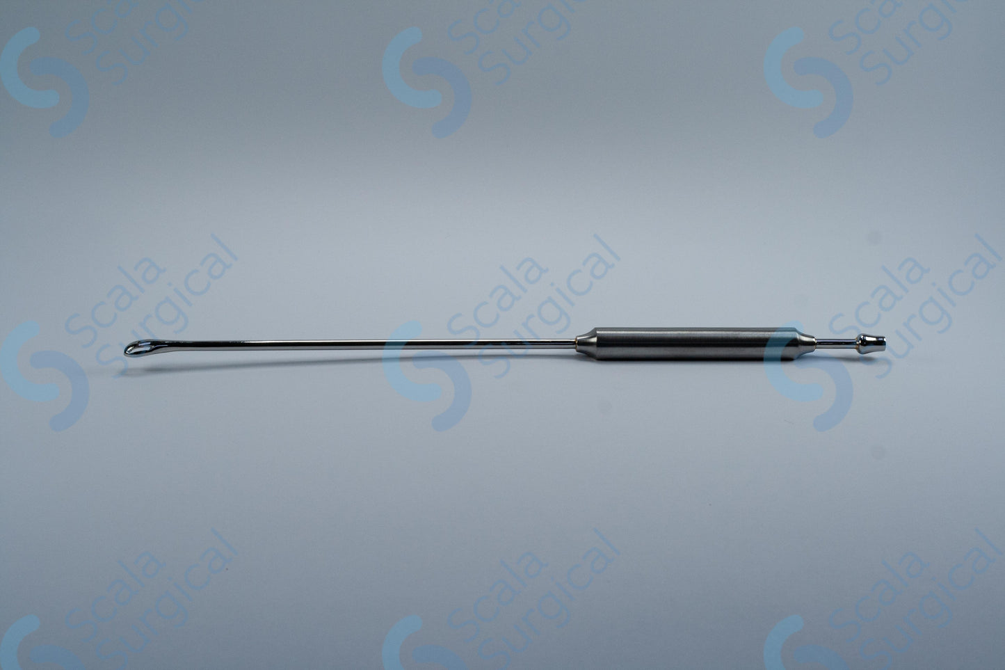 Rheinstadter's Uterine Curette Sharp is a surgical instrument used to scrape the uterine lining during a procedure known as a dilation and curettage (D&C). The tool has a sharp, spoon-like shape and a narrow width, which allows it to reach into the uterus and remove tissue. The length of the instrument is 290mm (11? inch).