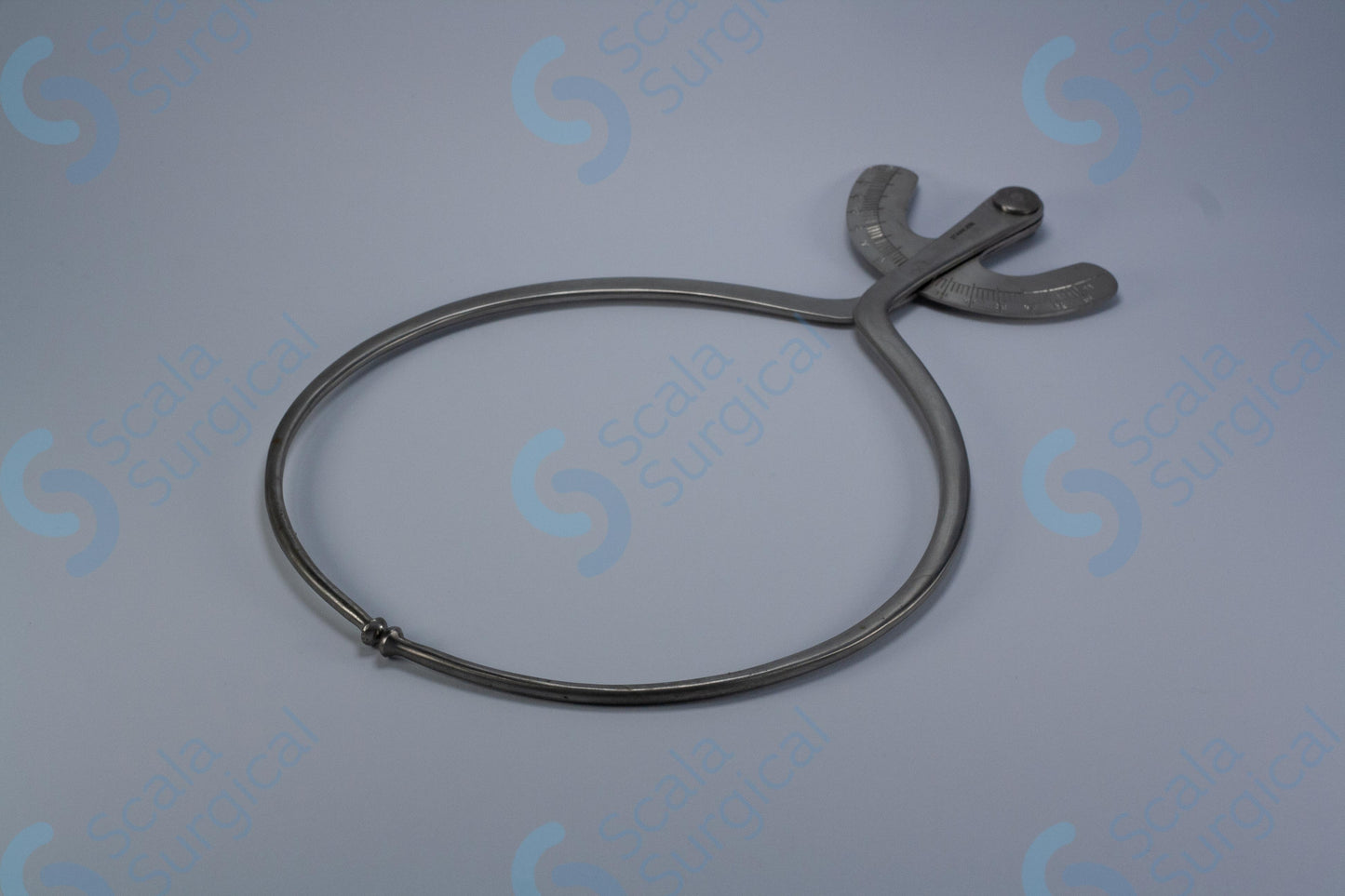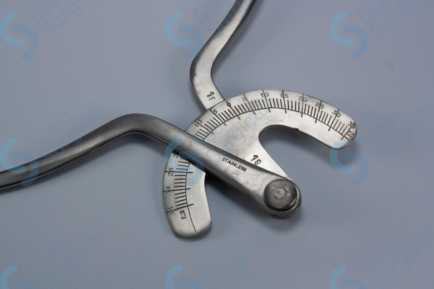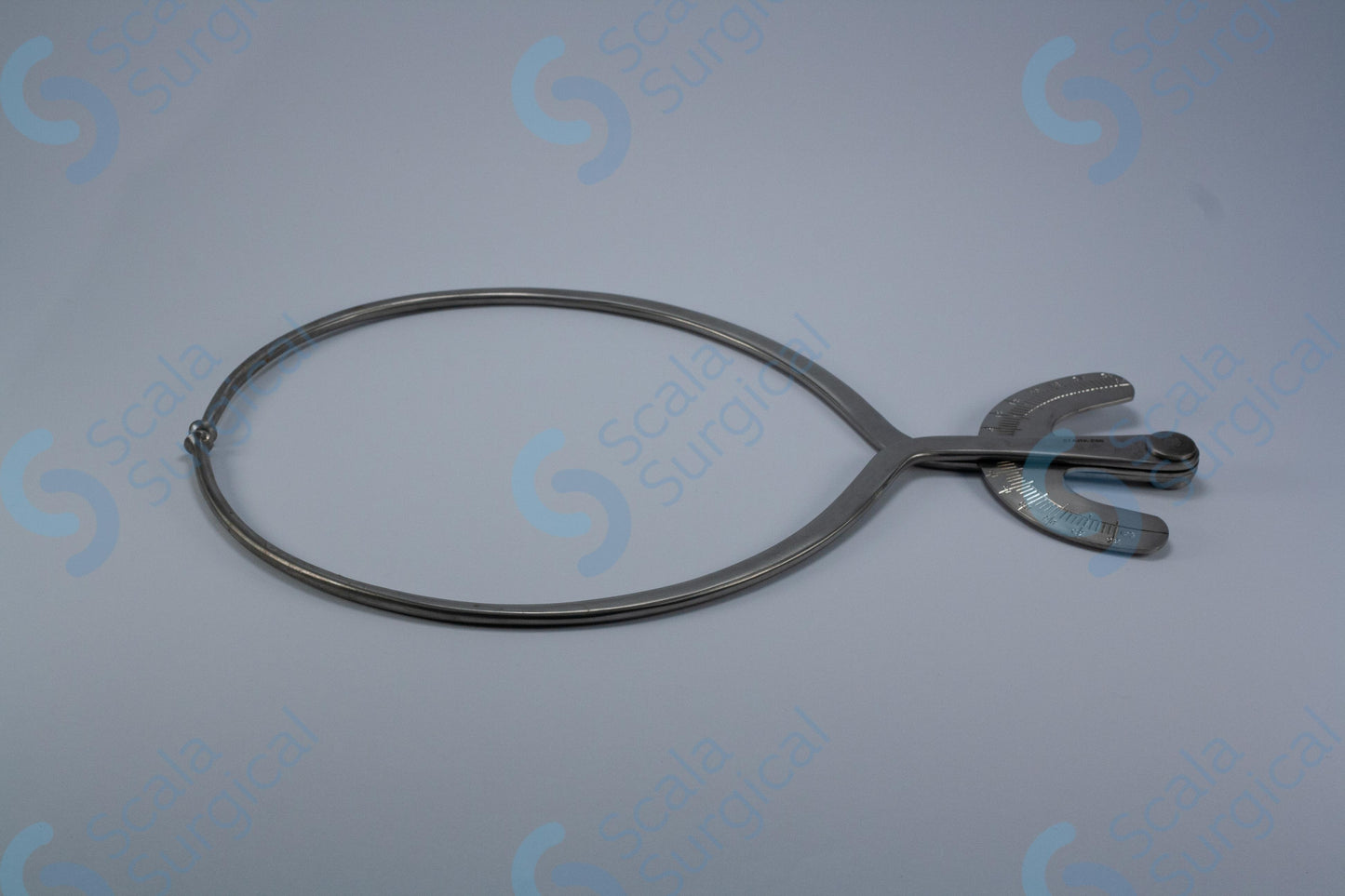 A Breisky Pelvimeter is a device used by surgeons to measure the size of a patient's pelvic cavity. It is typically used during gynecological and obstetrical procedures. The device consists of two hinged arms that are placed against the pelvic walls and then adjusted to fit the patient's individual measurements. The arms are then locked in place and the measurements can be read from the scale on the device.