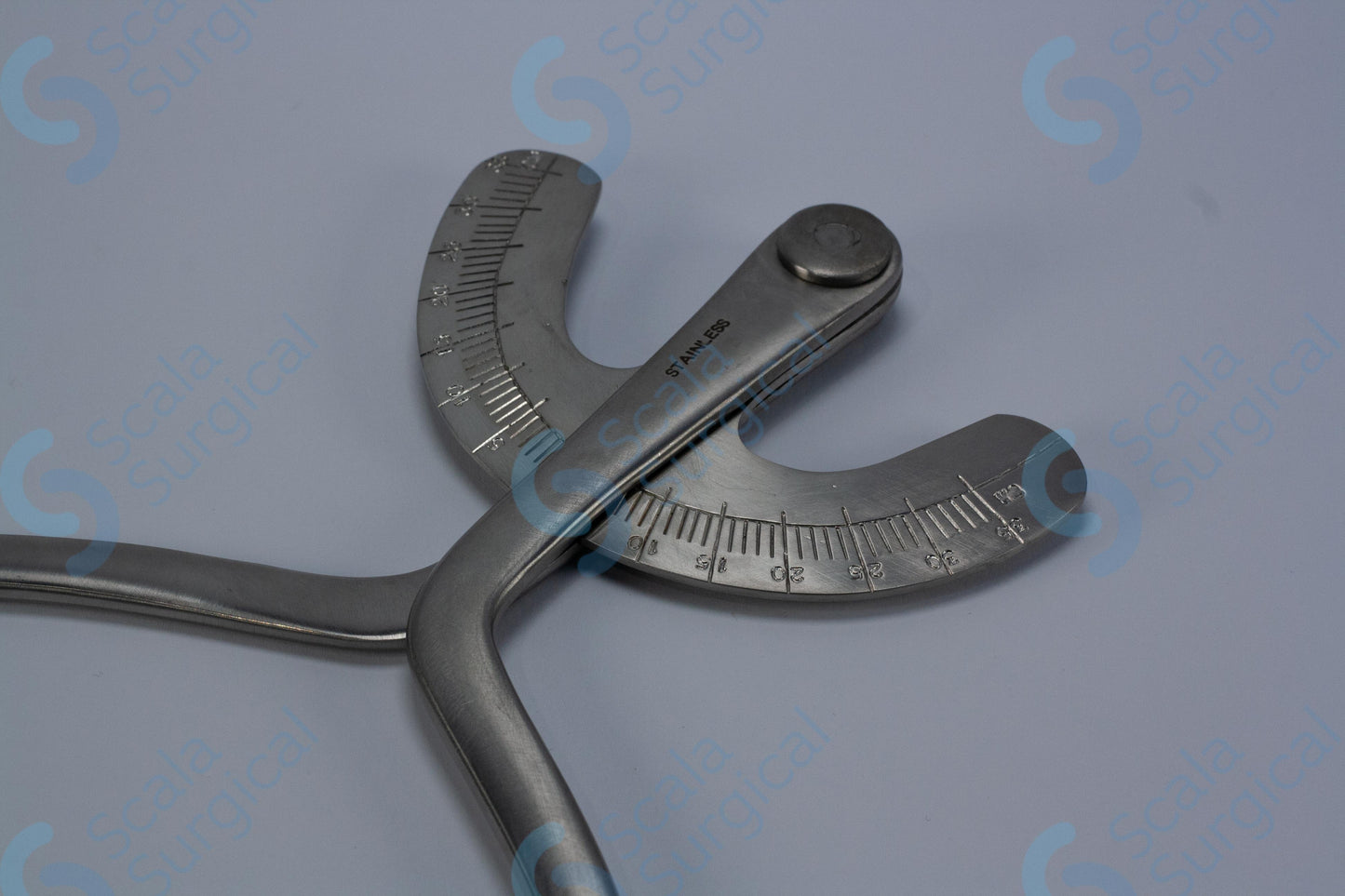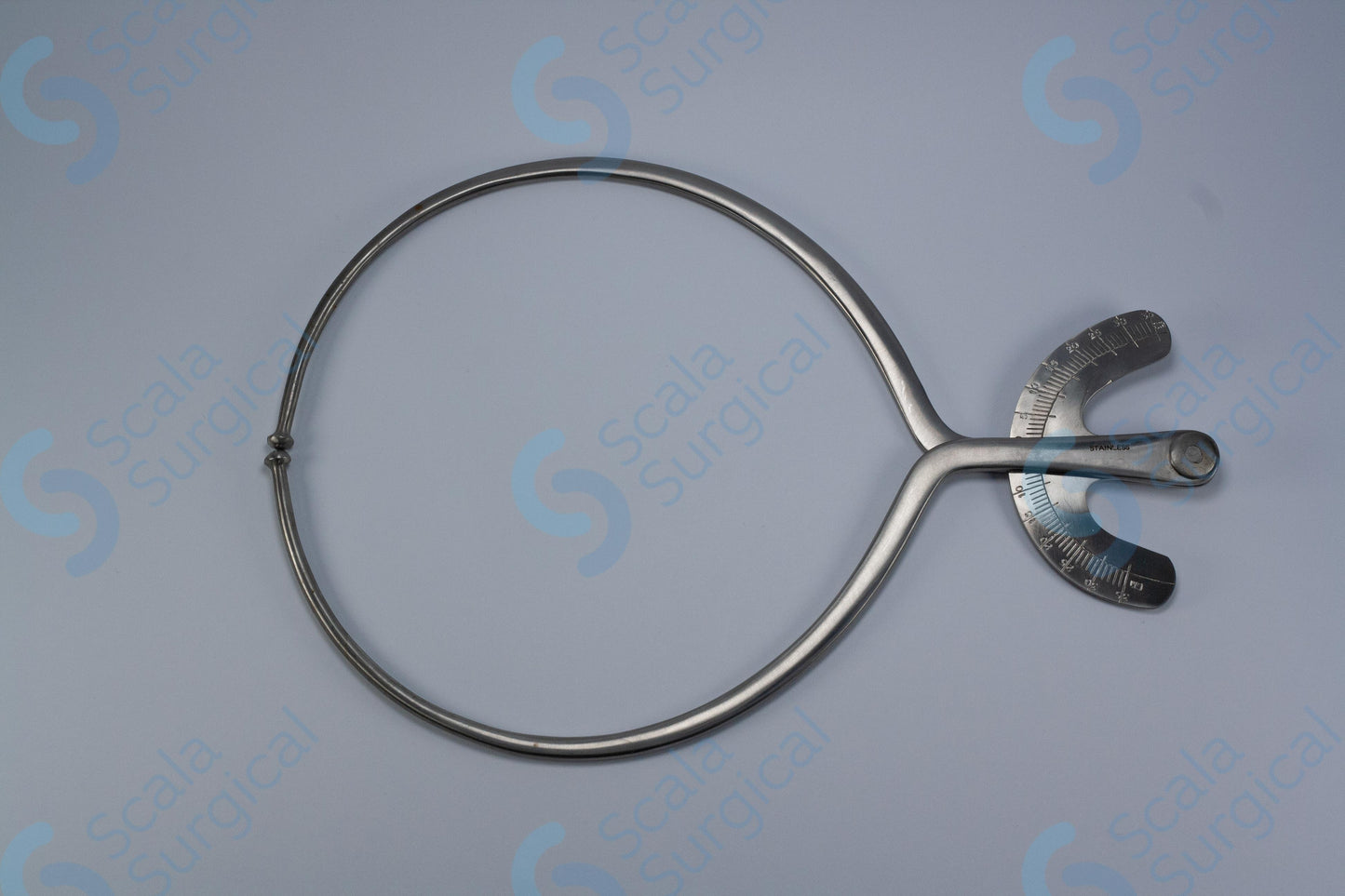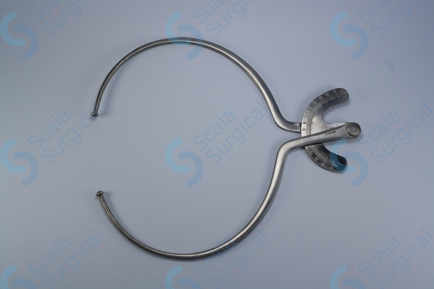 A Breisky Pelvimeter is a device used by surgeons to measure the size of a patient's pelvic cavity. It is typically used during gynecological and obstetrical procedures. The device consists of two hinged arms that are placed against the pelvic walls and then adjusted to fit the patient's individual measurements. The arms are then locked in place and the measurements can be read from the scale on the device.
