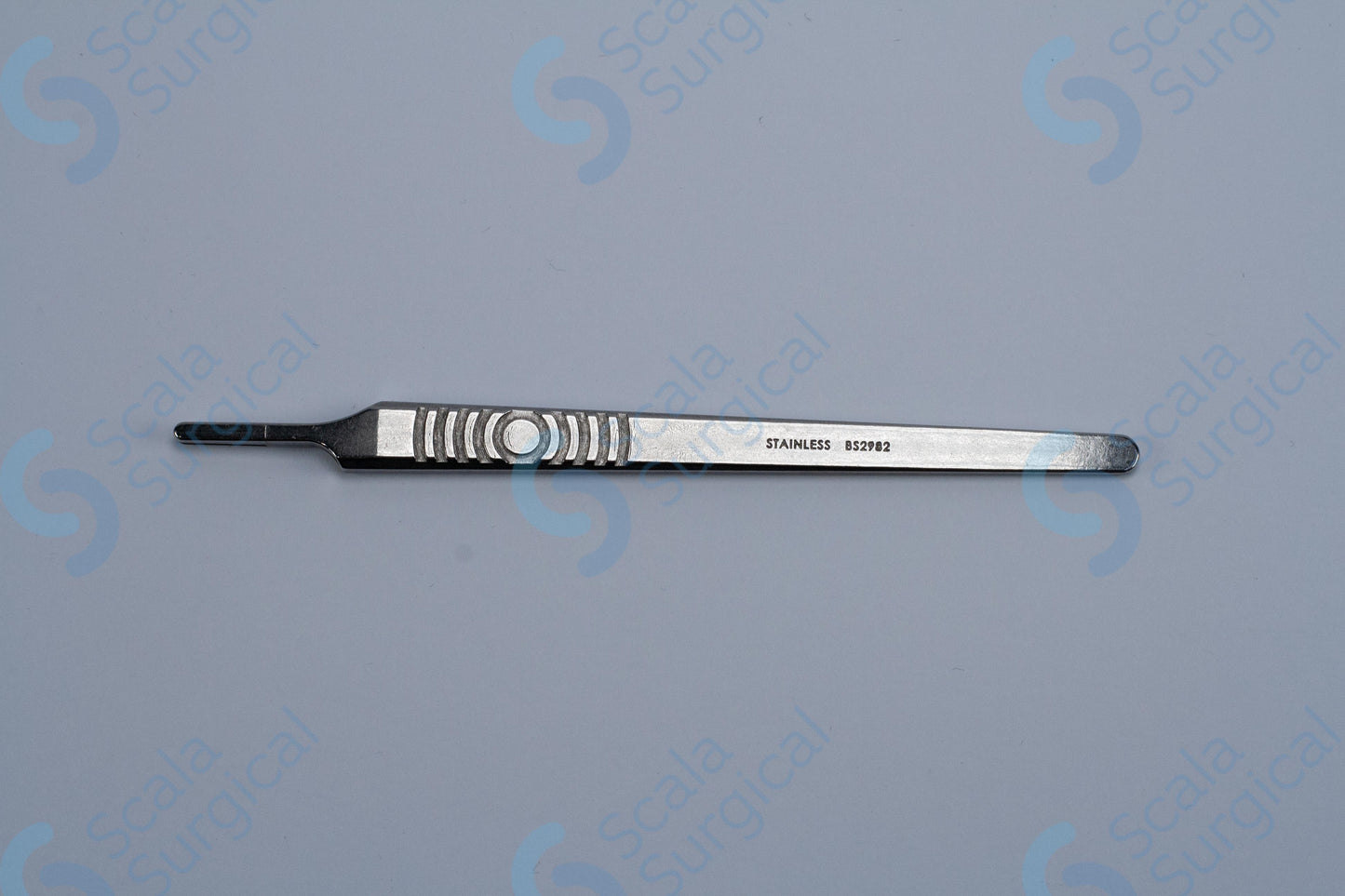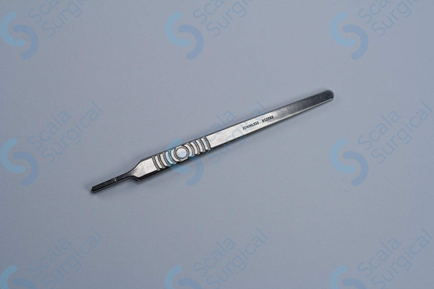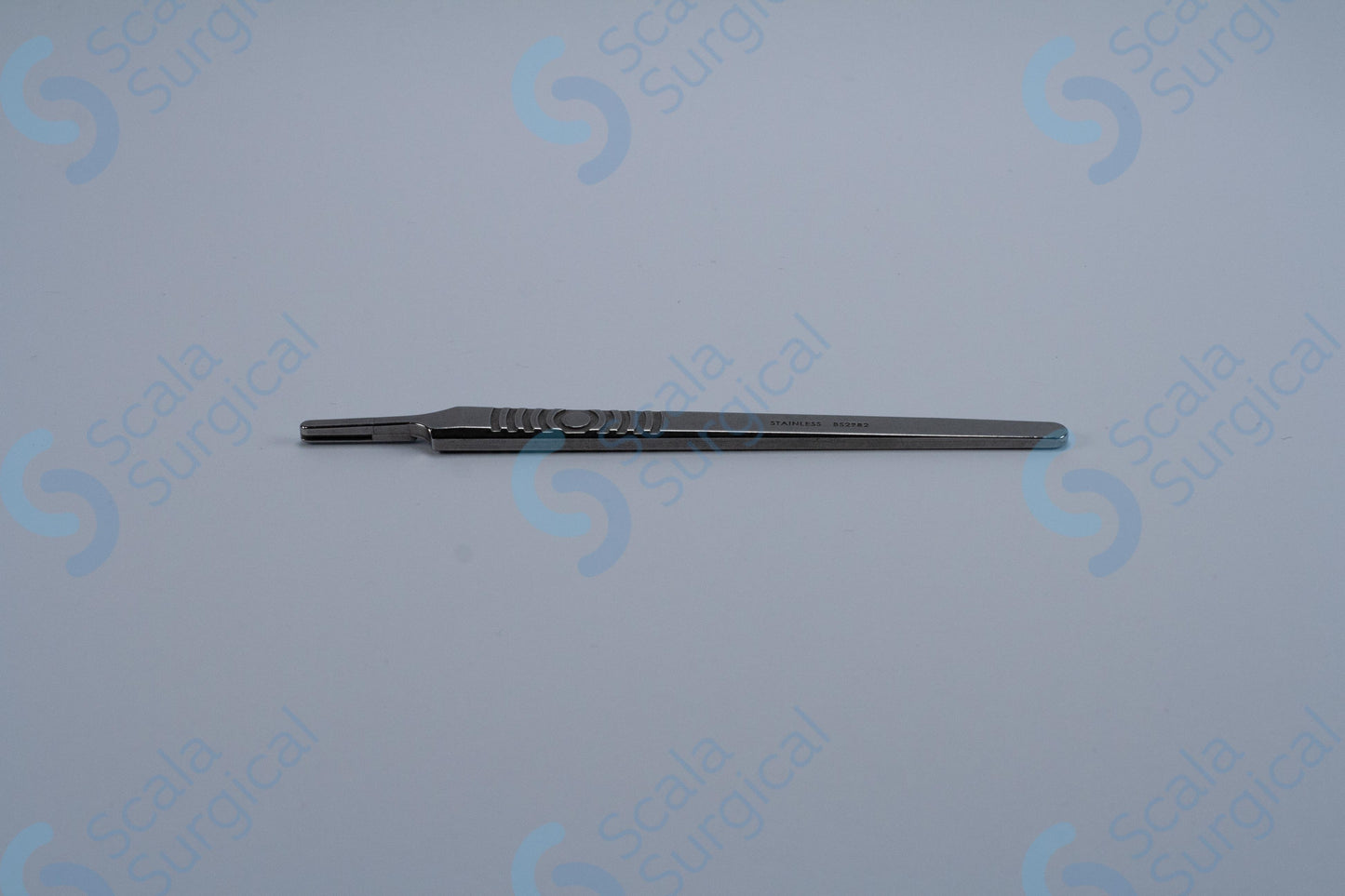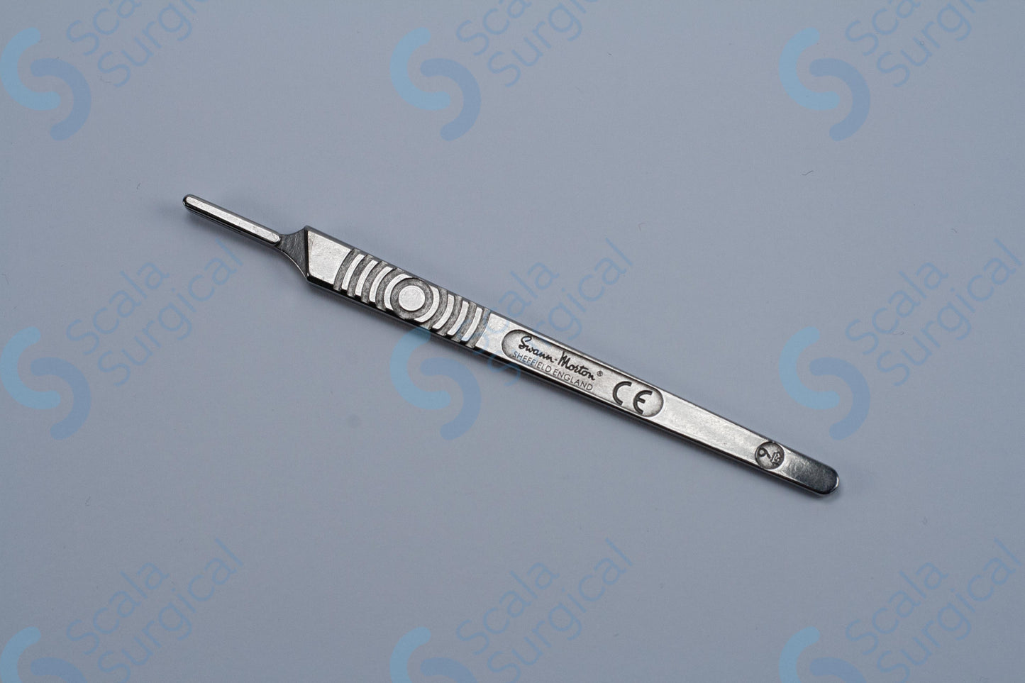 The Swann Morton Scalpel Handle No-9 is a surgical instrument used to hold a scalpel blade and provide a secure grip when making incisions. It is a reusable handle that is lightweight and ergonomically designed, allowing surgeons to make precise cuts.