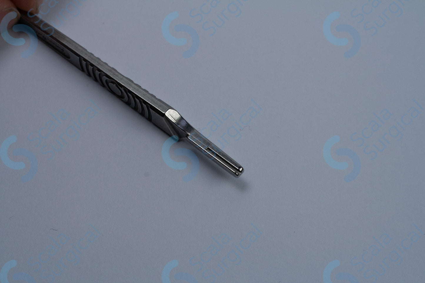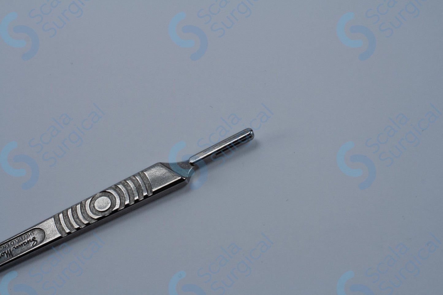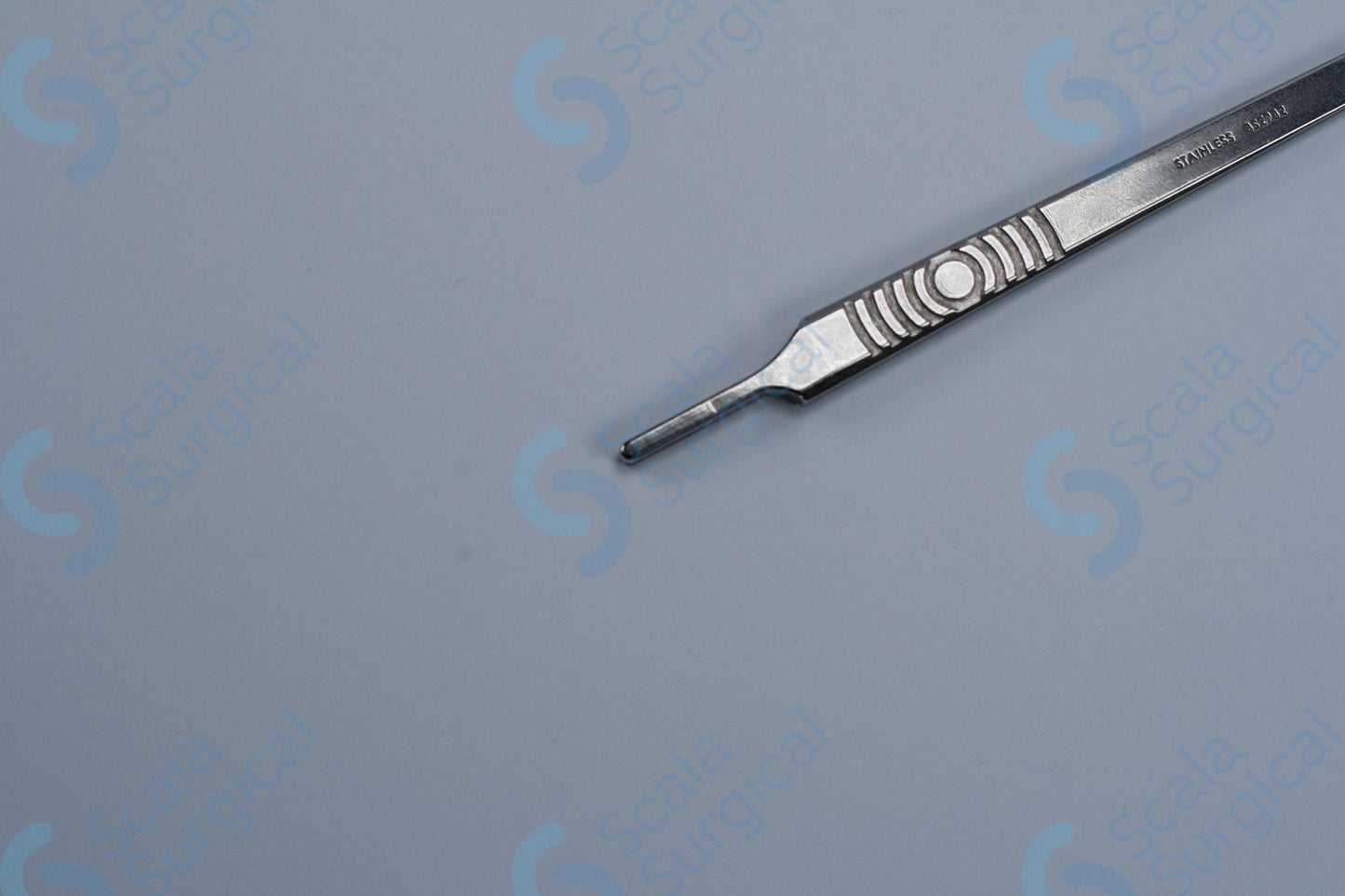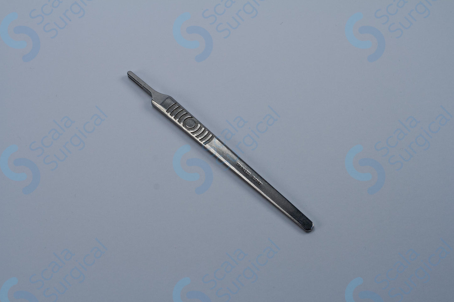 The Swann Morton Scalpel Handle No-9 is a surgical instrument used to hold a scalpel blade and provide a secure grip when making incisions. It is a reusable handle that is lightweight and ergonomically designed, allowing surgeons to make precise cuts.