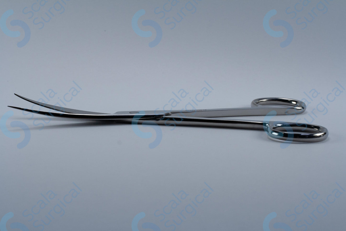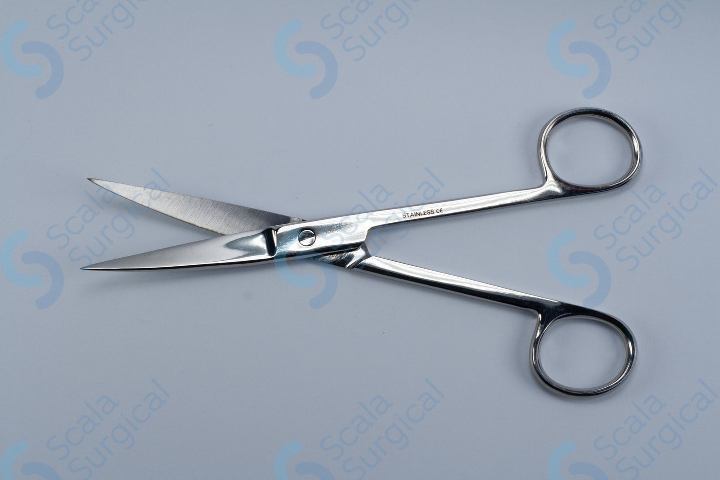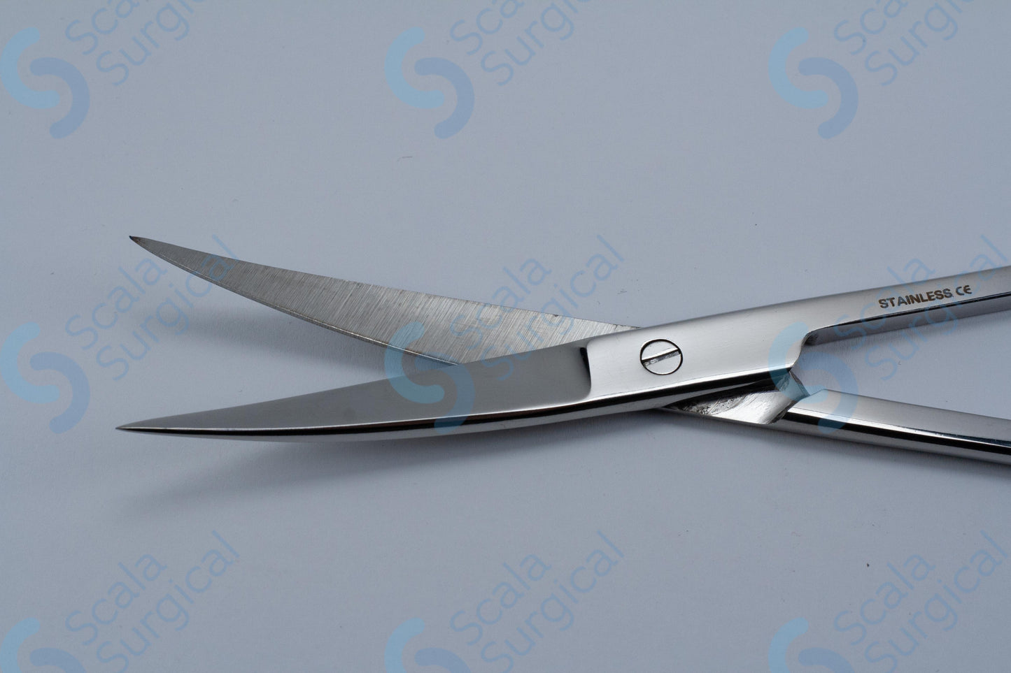 Dressing / Stitch Scissors Sharp / Sharp Curved (177.8mm) (7 inch) are surgical scissors used to cut through sutures and dressings. They feature a curved blade and sharp tips, making them ideal for precise cutting.