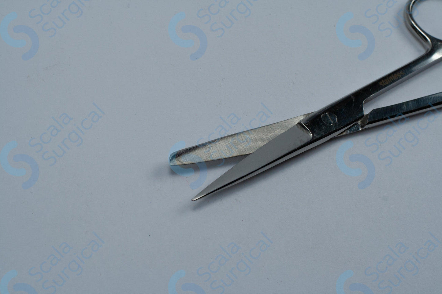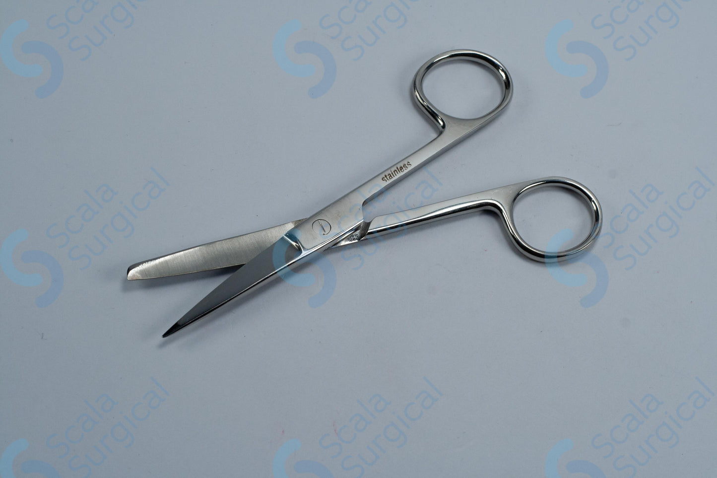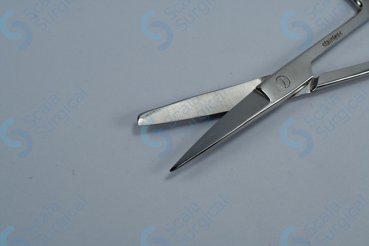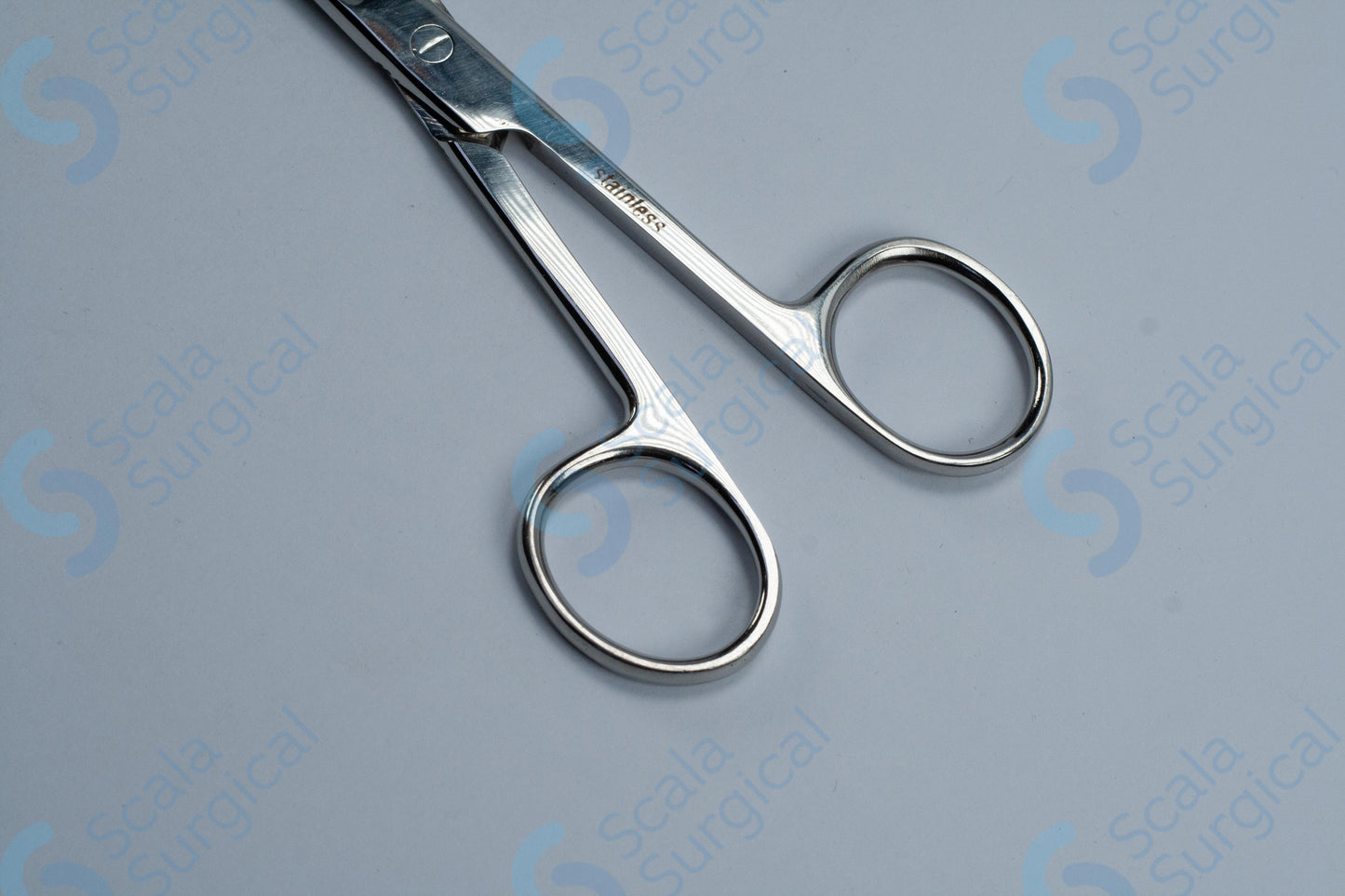 Dressing scissors are a type of surgical scissors used in the operating room to cut through bandages, tape, and other materials used to dress a wound. They have sharp and blunt ends and are typically 5 inches (127mm) long.