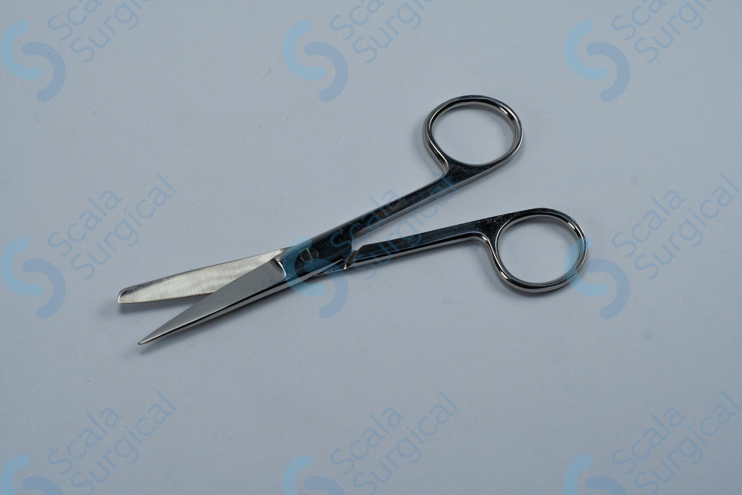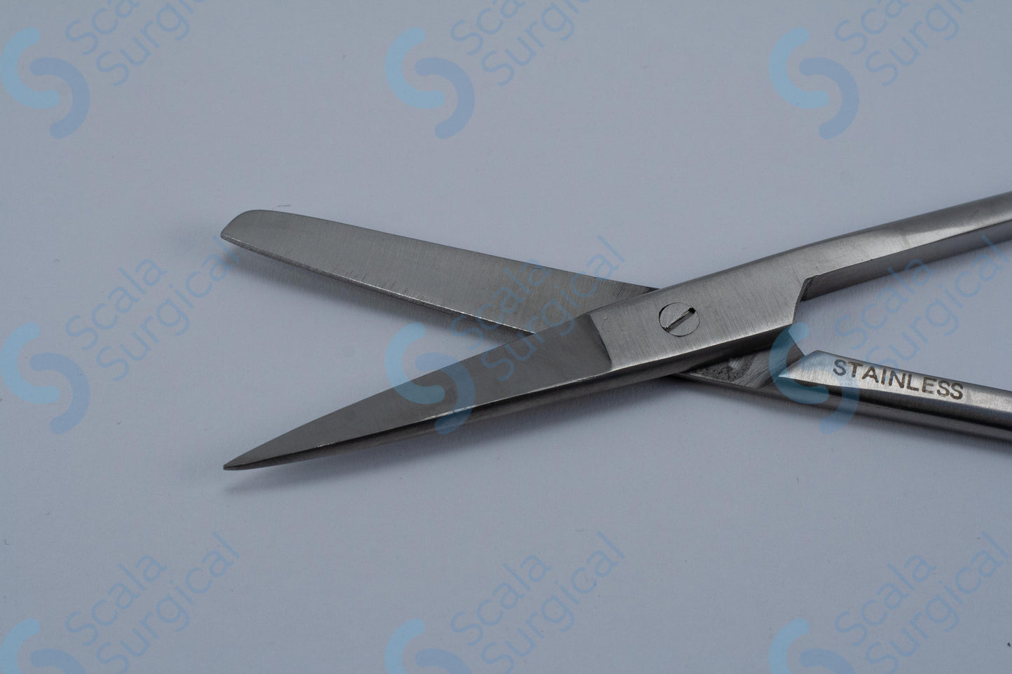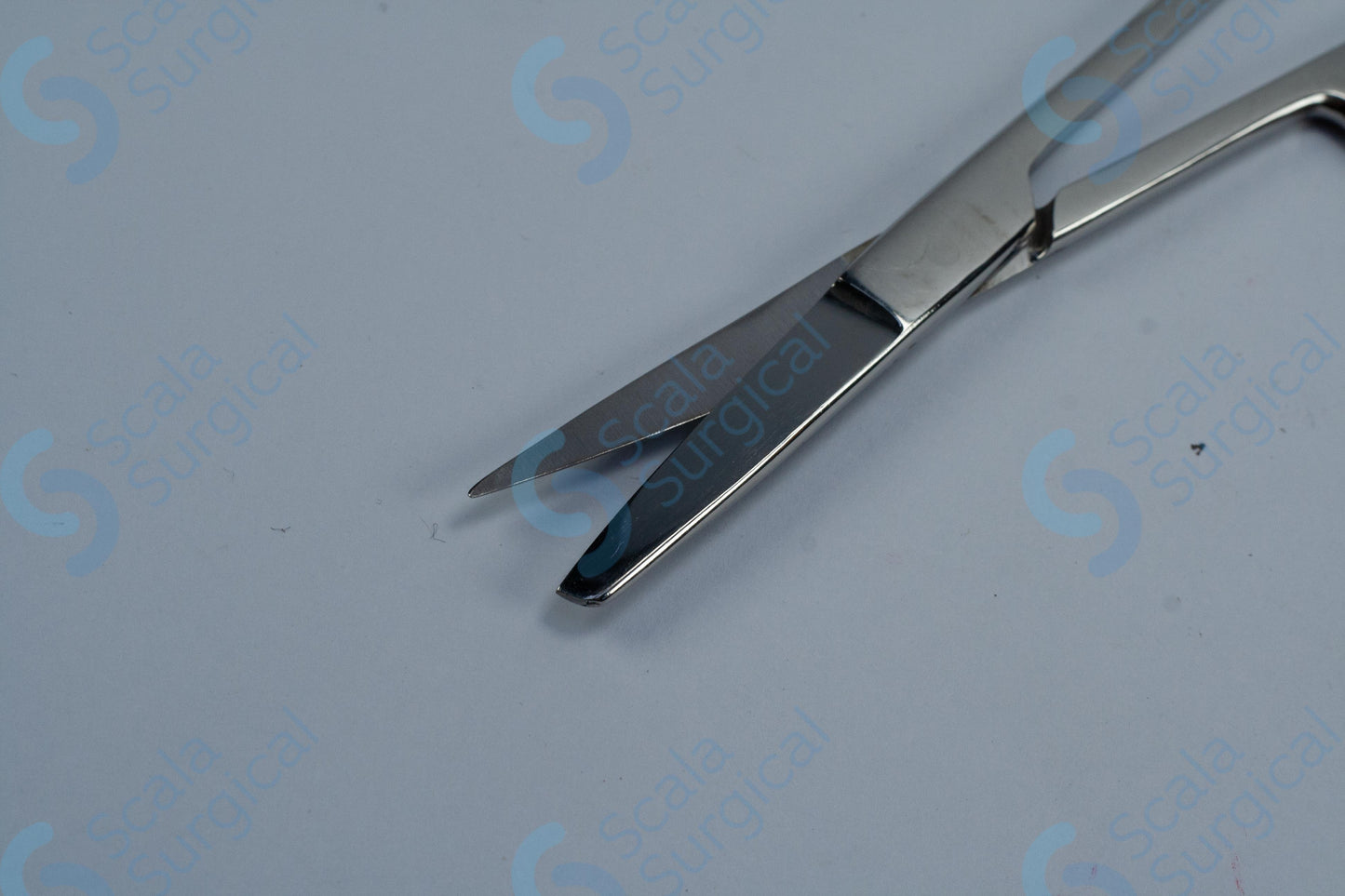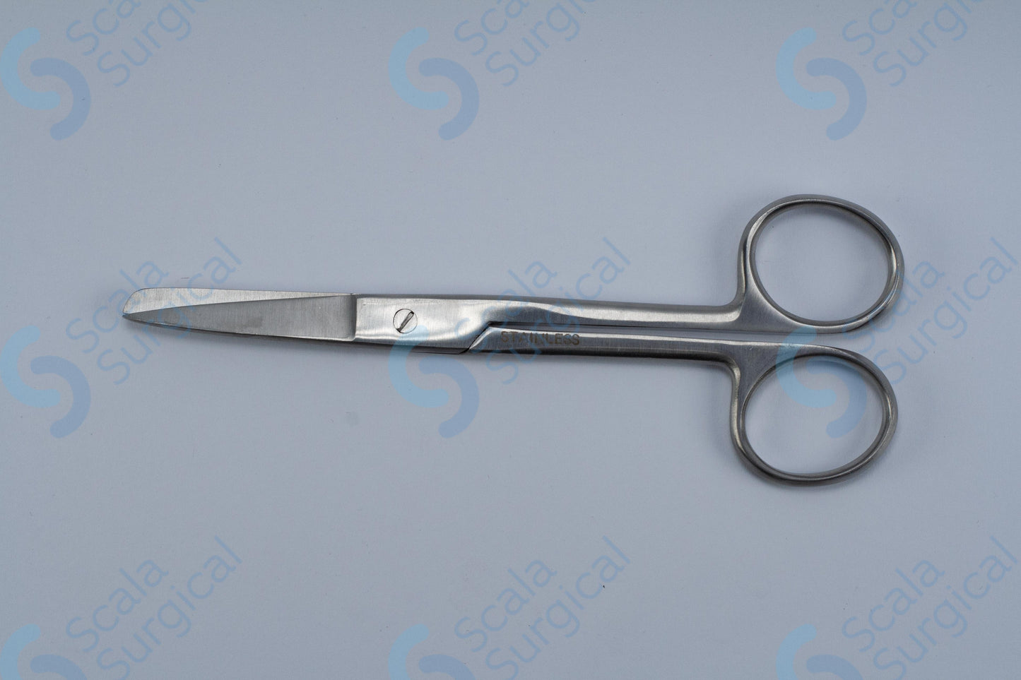 Dressing scissors are a type of surgical scissors used in the operating room to cut through bandages, tape, and other materials used to dress a wound. They have sharp and blunt ends and are typically 5 inches (127mm) long.