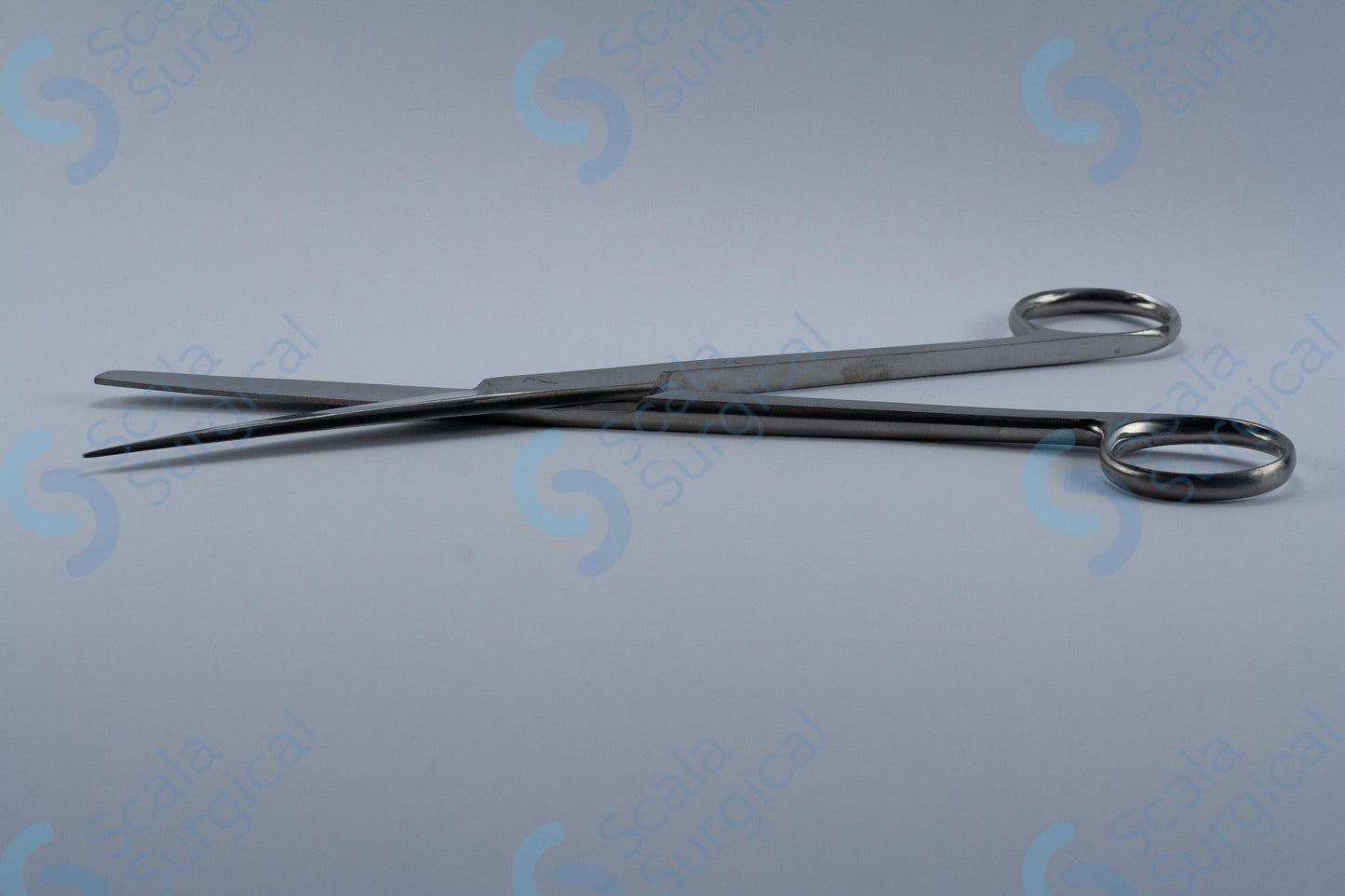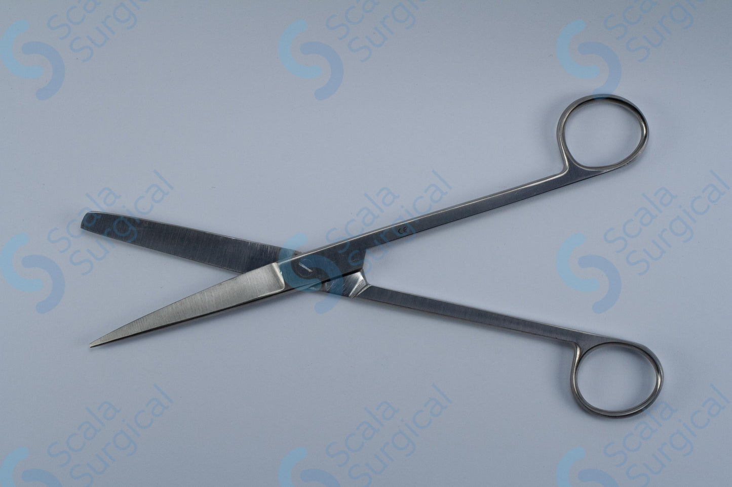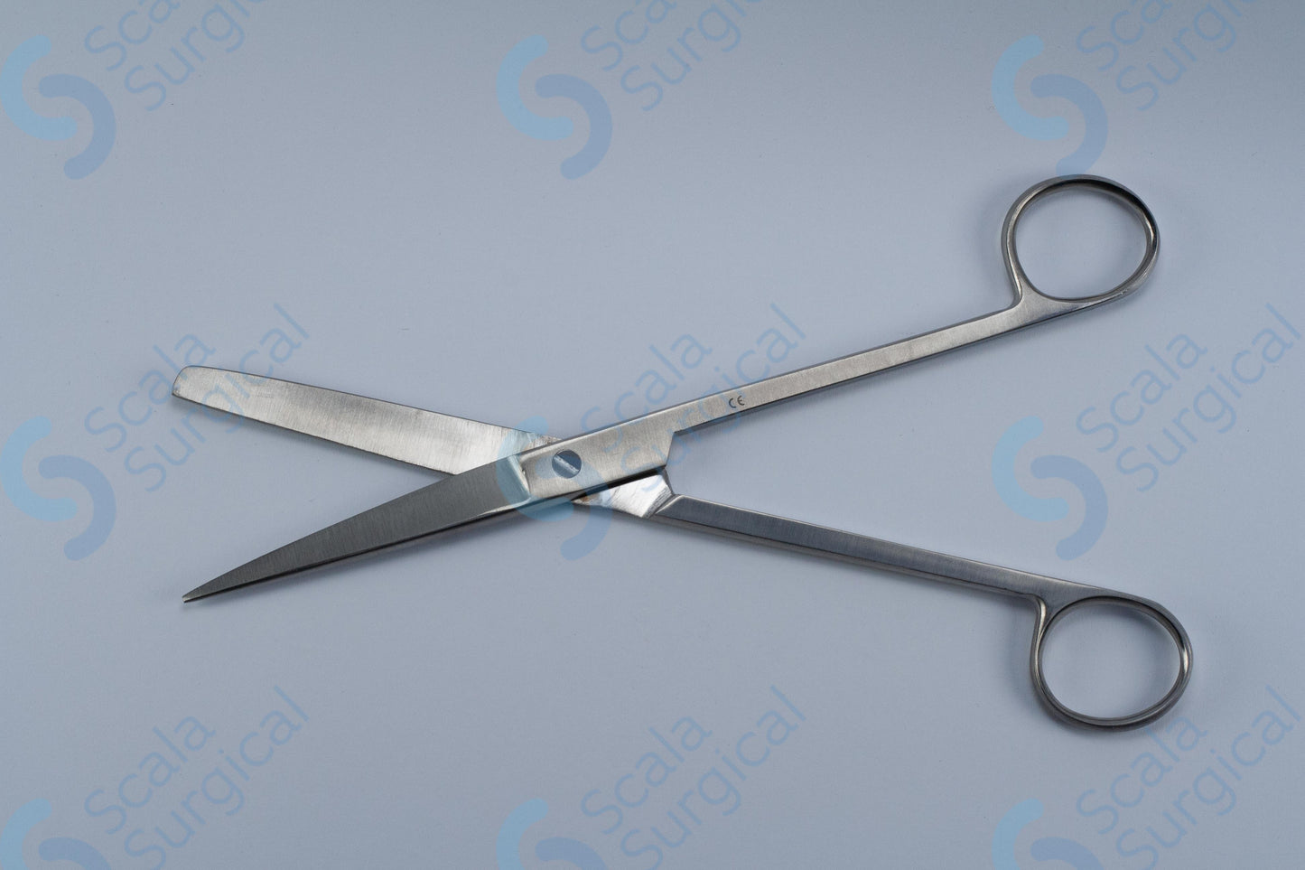 Dressing scissors are a type of surgical scissors used to cut through bandages, clothing, and other materials during a surgical procedure. The sharp/blunt straight (203.2mm) (8 inch) dressing scissors are designed to cut through bandages and clothing with precision and accuracy. They are usually made of stainless steel and are available in various sizes.