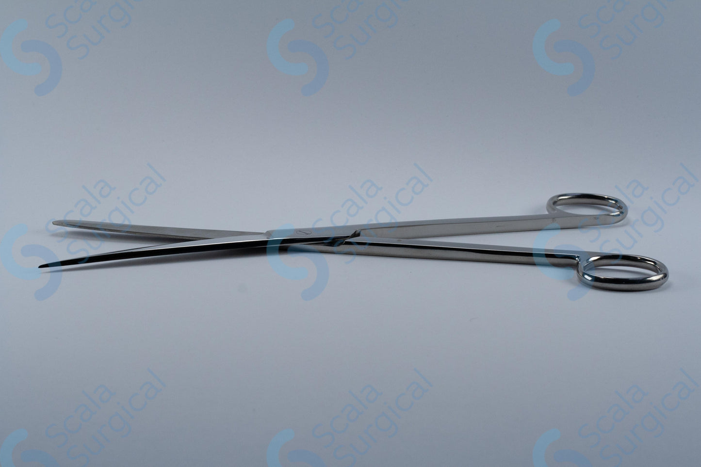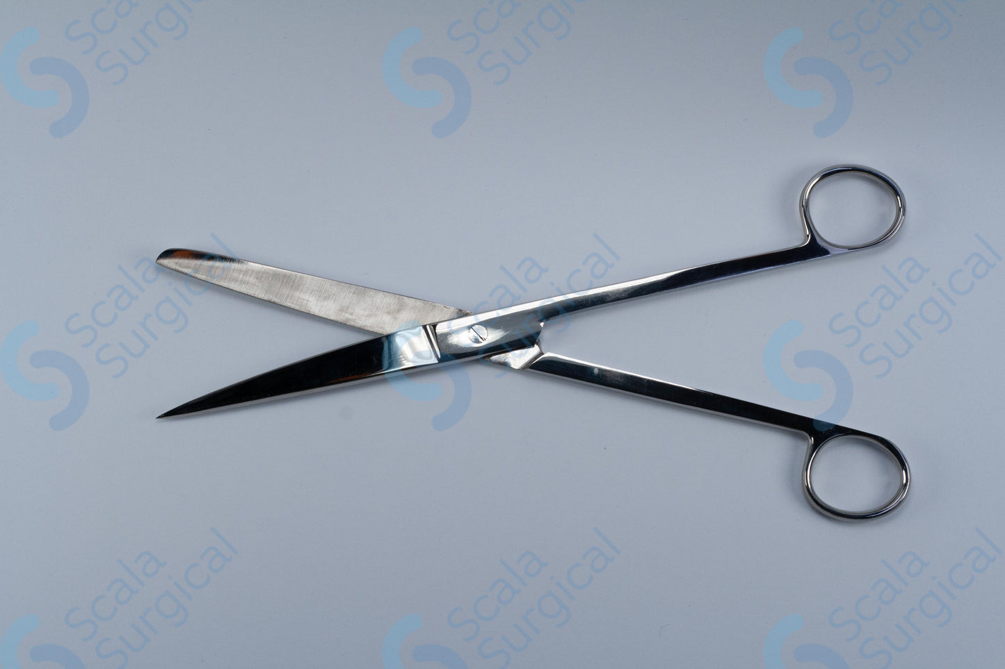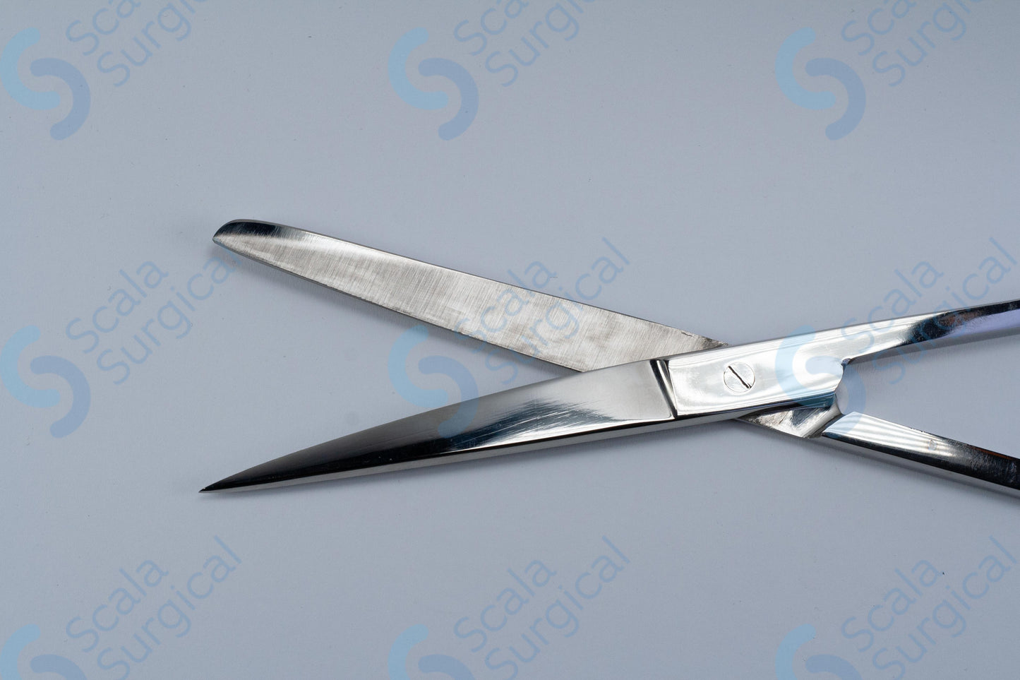 Dressing scissors are a type of surgical scissors used to cut through dressings and bandages. The sharp/blunt design of the scissors allows for cutting through the dressing without damaging the underlying tissue. The size (228.6mm or 9 inch) indicates the length of the scissors.