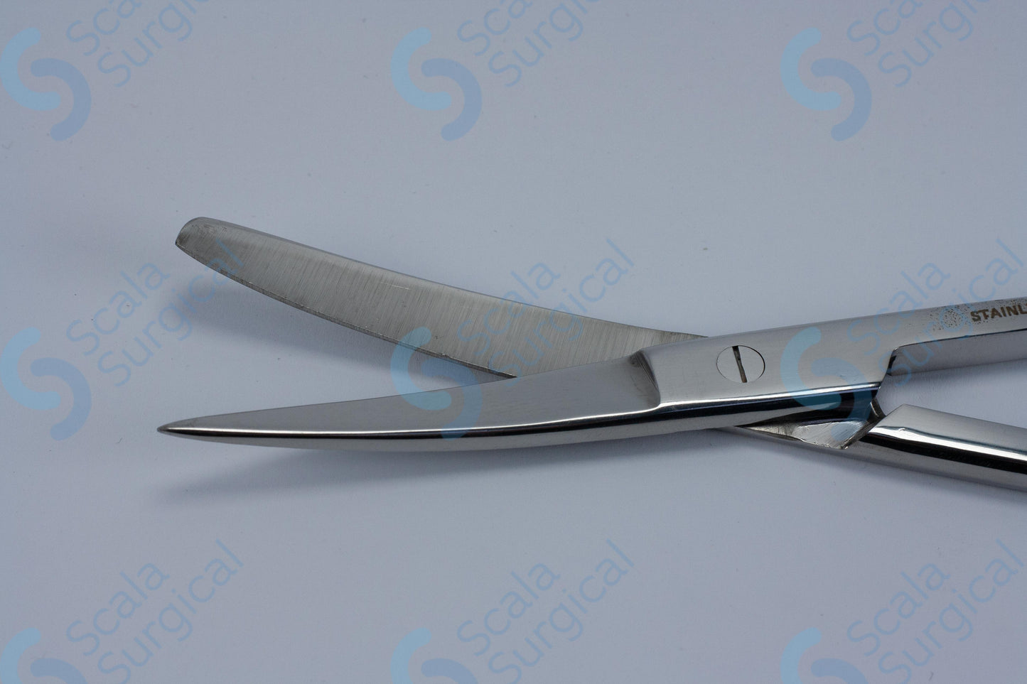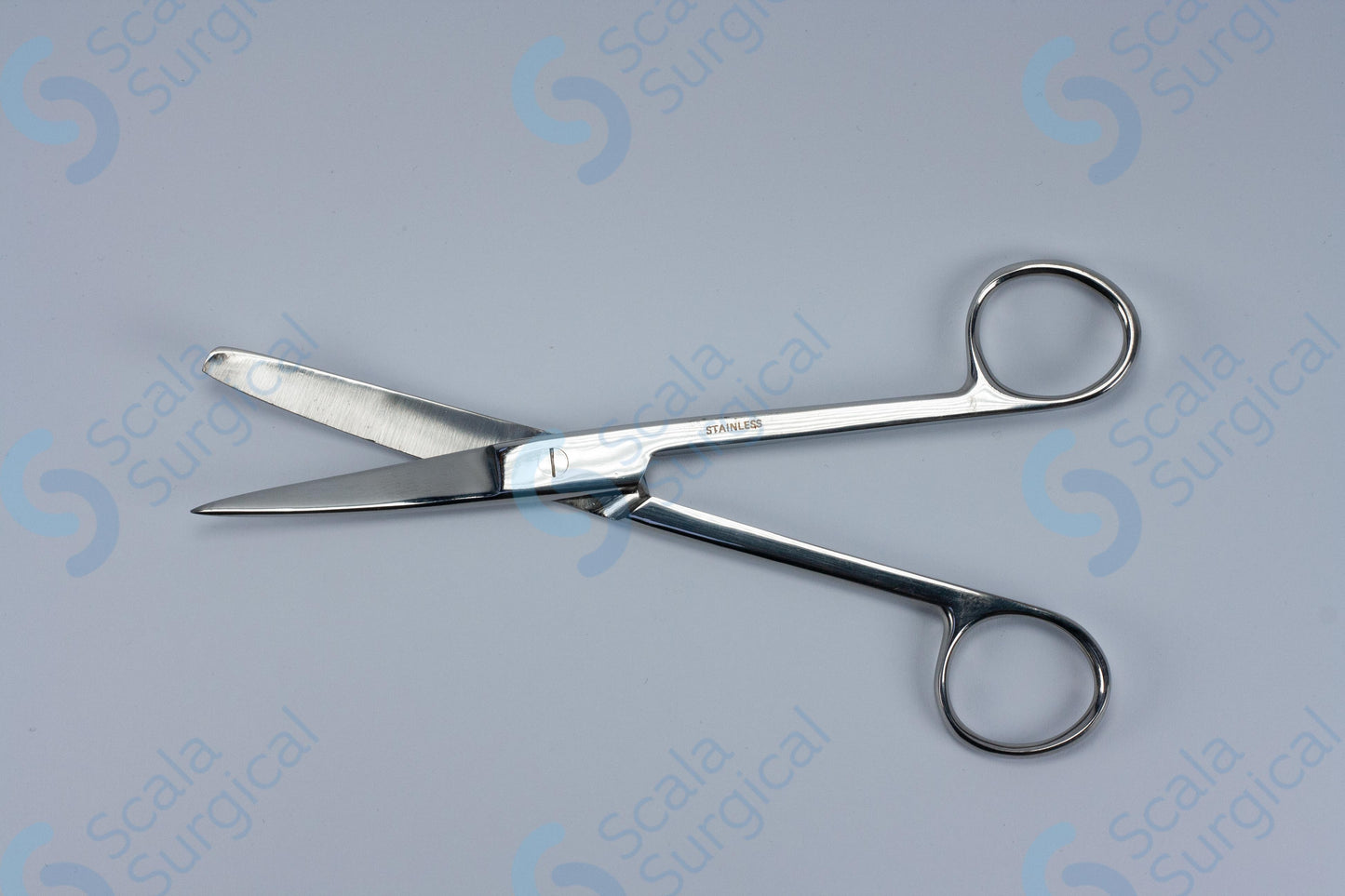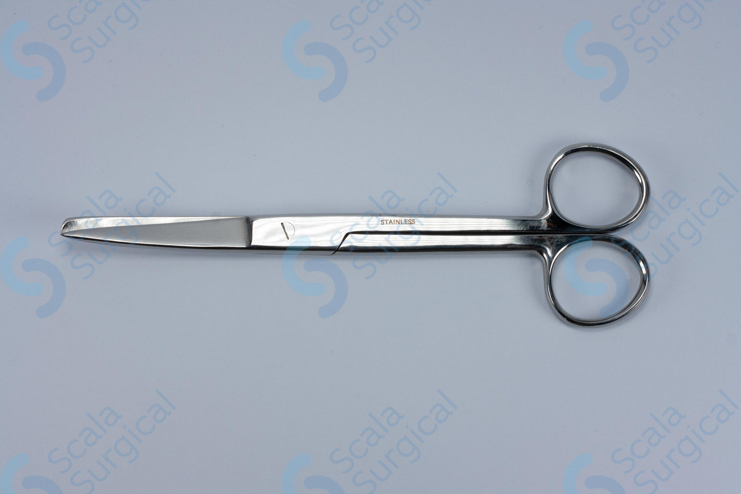 Dressing scissors are used by surgeons to cut through dressings (bandages, gauze, etc.) to access the wound area. The sharp/blunt curved design is beneficial to prevent accidental cuts to the patient. The 177.8mm (7 inch) size is ideal for cutting dressings in tight spaces.