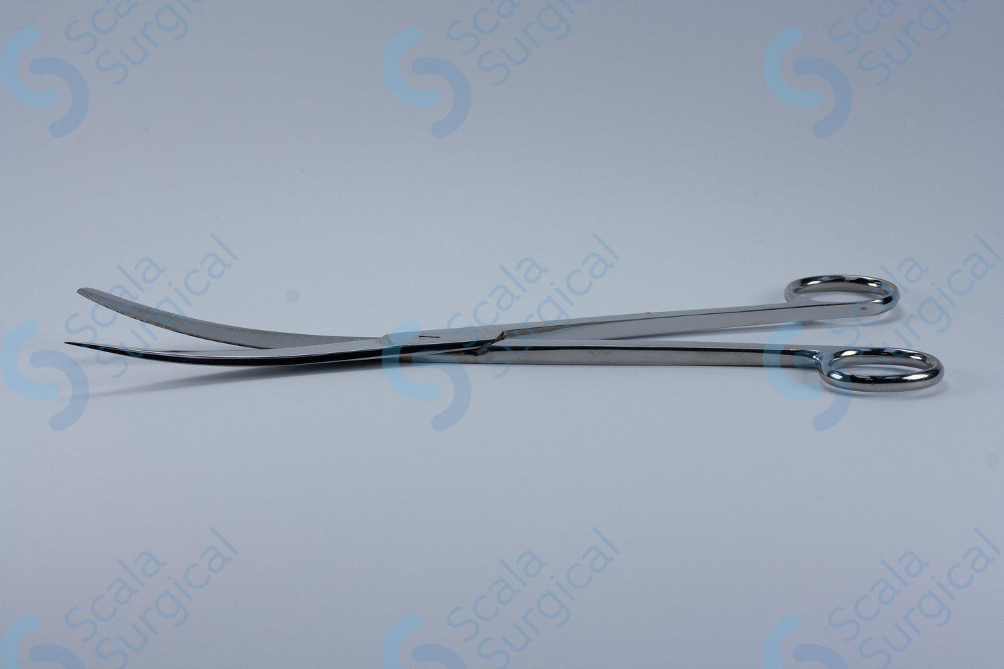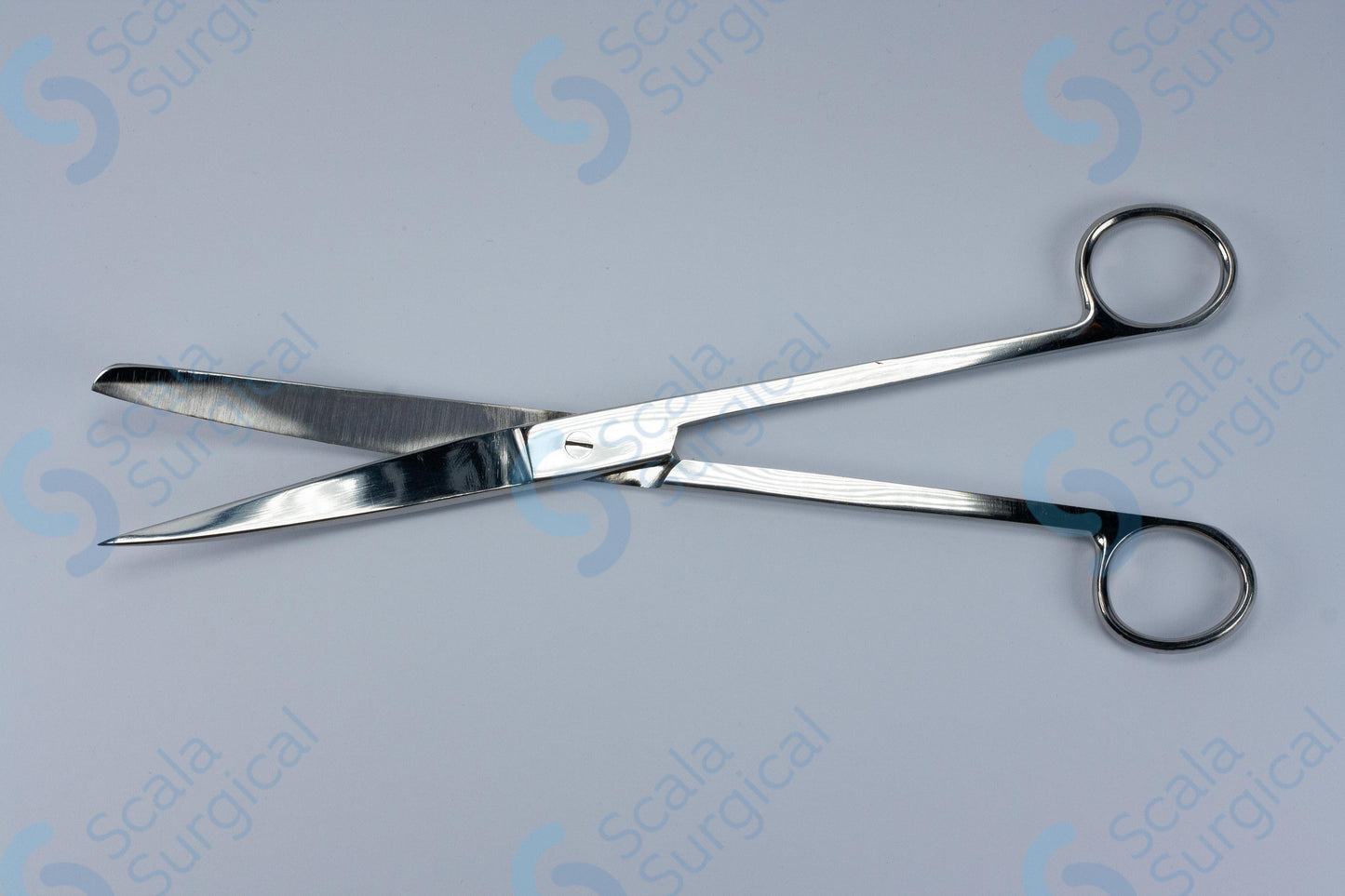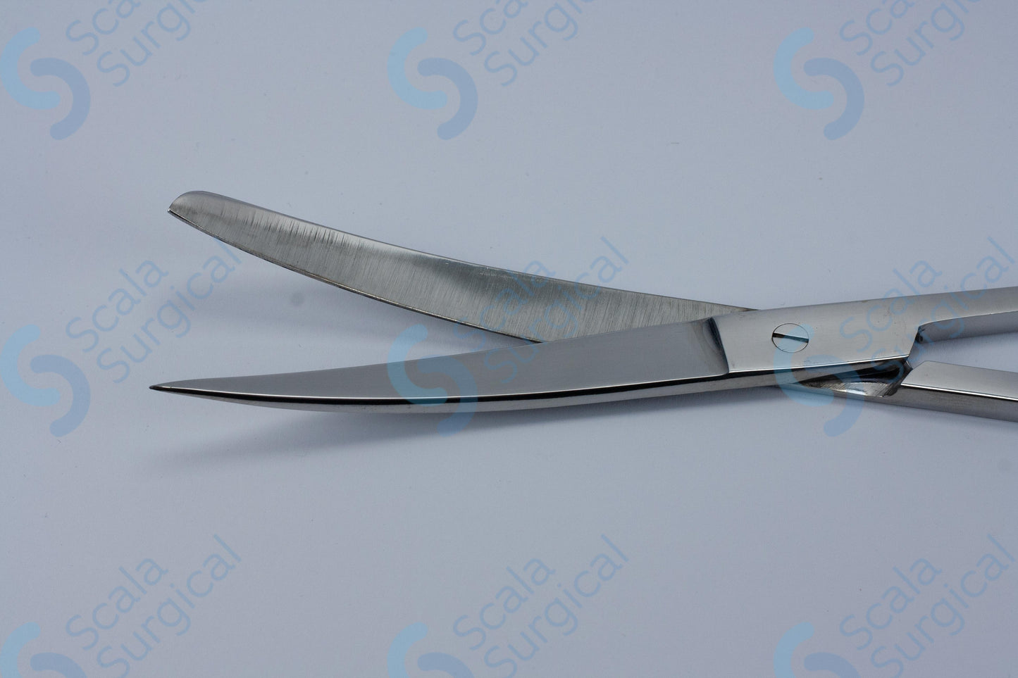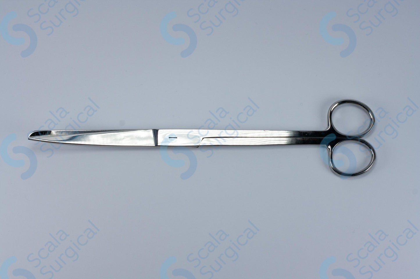 Dressing scissors are used in the surgical field to cut through dressings, bandages, and other materials. The sharp/blunt curved design allows for precise cutting around curved areas and hard-to-reach places. The 228.6mm (9 inch) size is typically used for larger dressings and bandages.