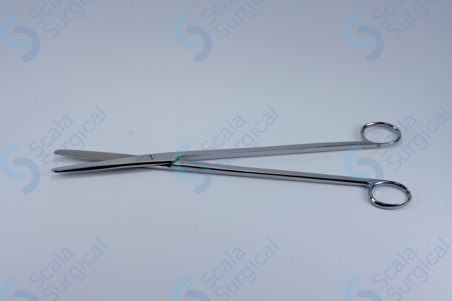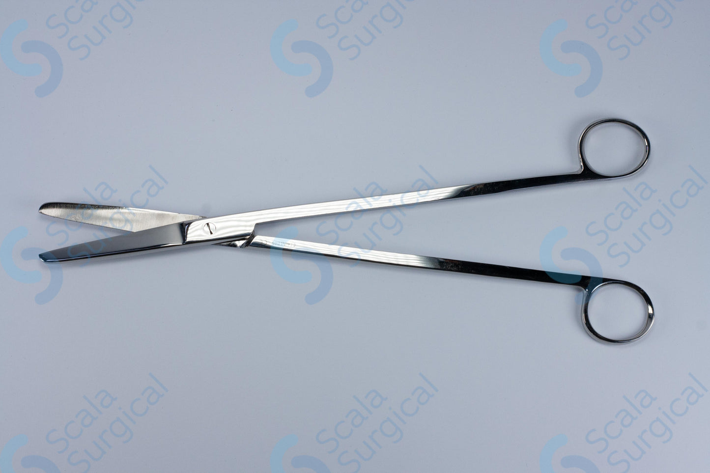 Dressing scissors blunt/blunt straight are used to cut through medical dressings and bandages. They have a straight blade with a blunt tip, making them safe to use on the skin. The 228.6mm (9 inch) size is a standard length for most dressing scissors.
