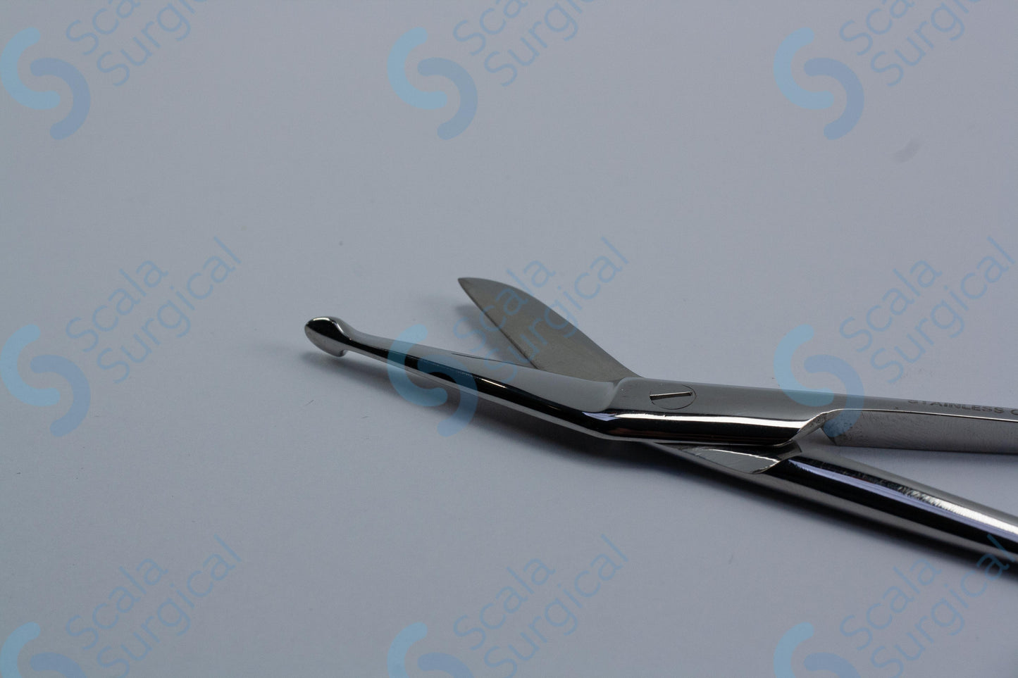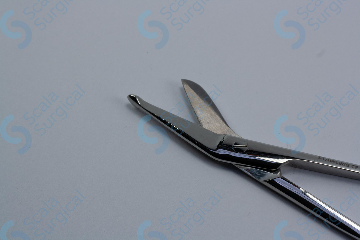 These Lister Bandage Scissors are used in the surgical field to carefully cut through bandages and dressings without damaging the underlying tissue. The angled blade and blunt tip help to reduce the risk of accidental cuts and are designed to provide maximum control, precision, and comfort.