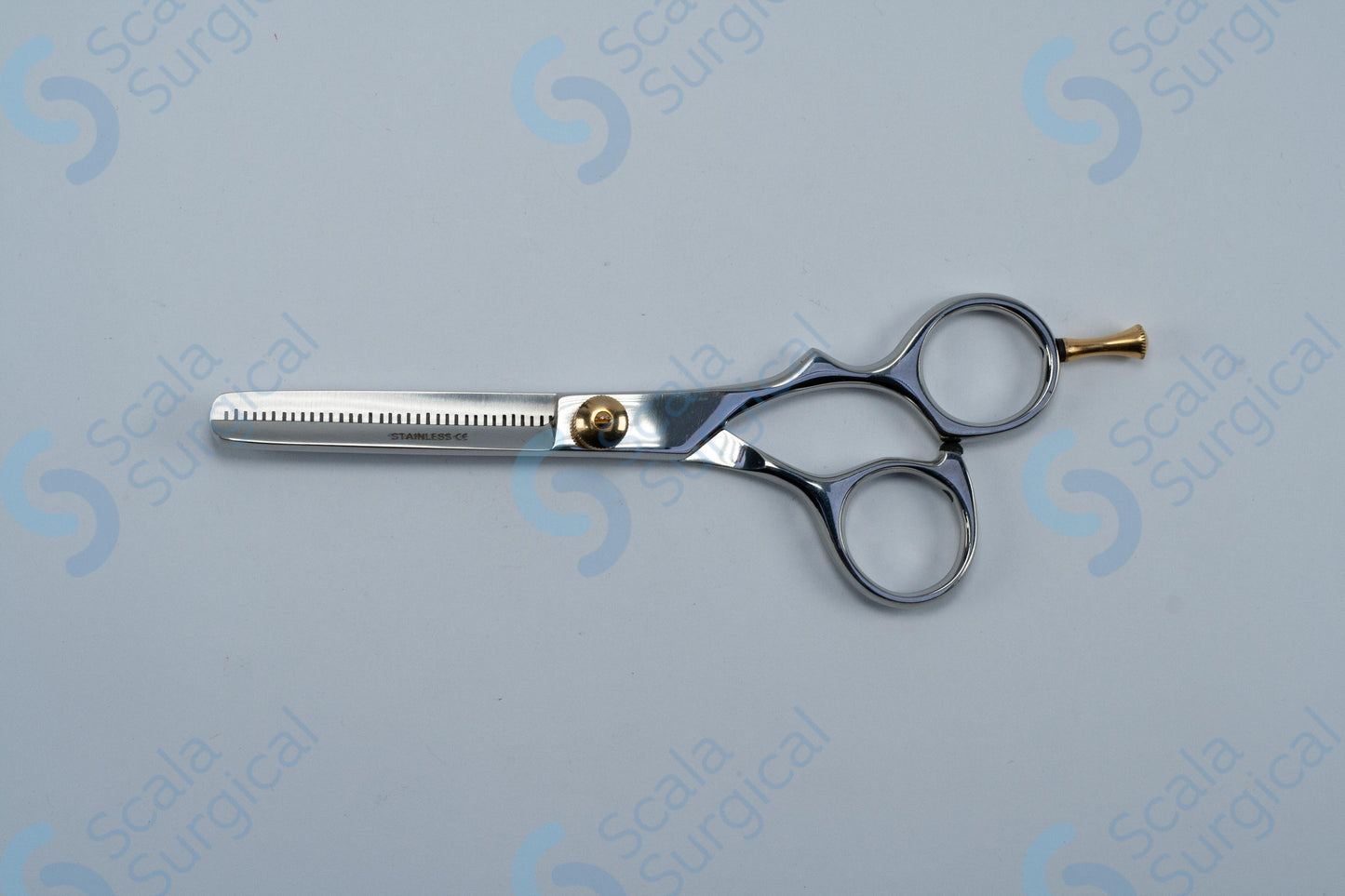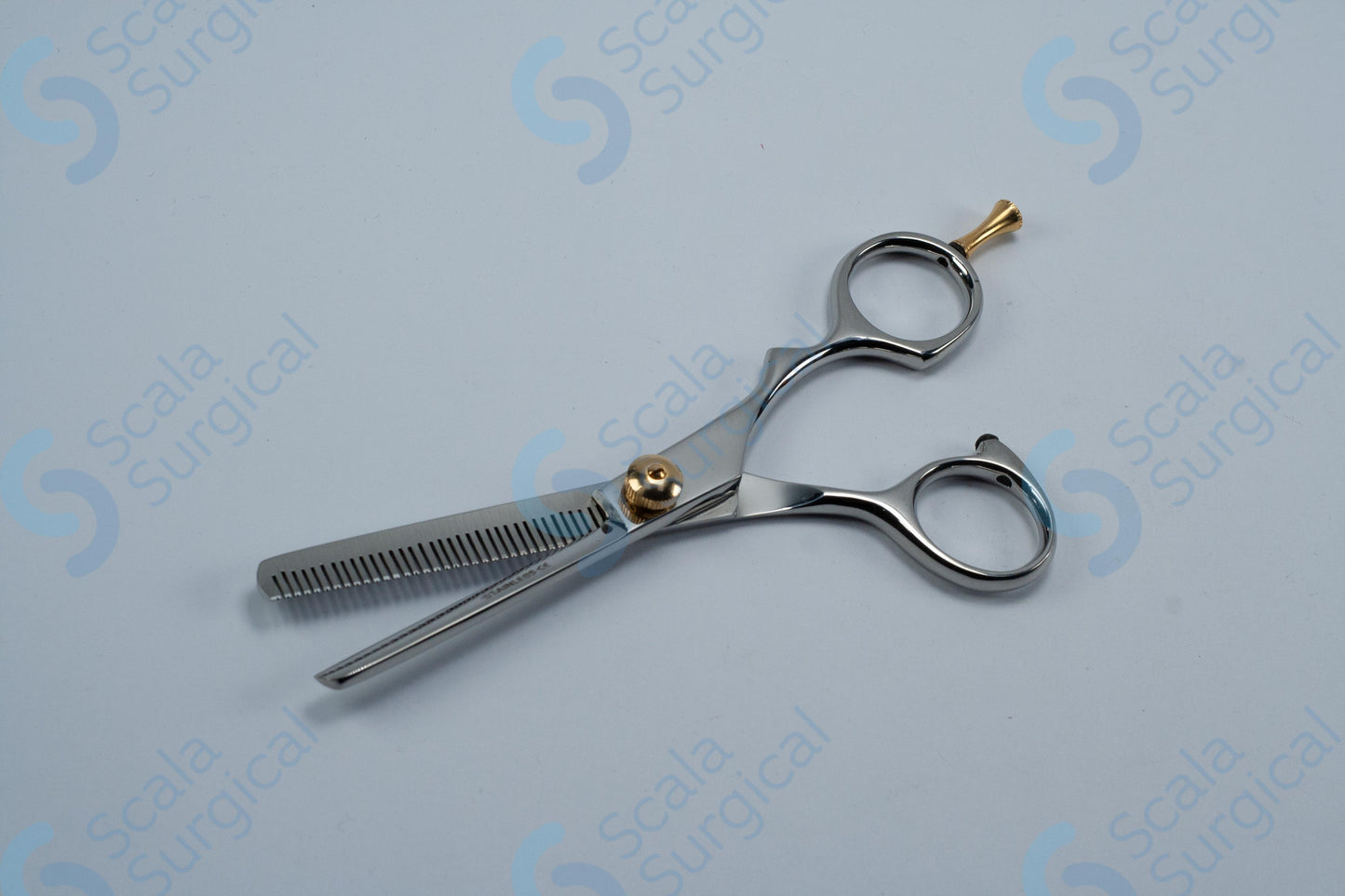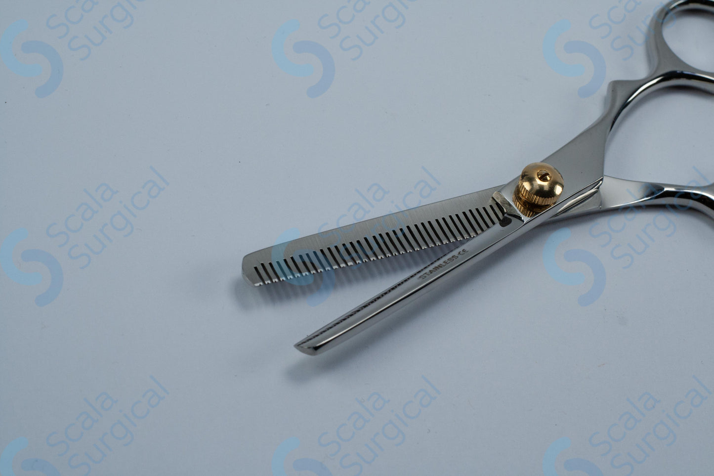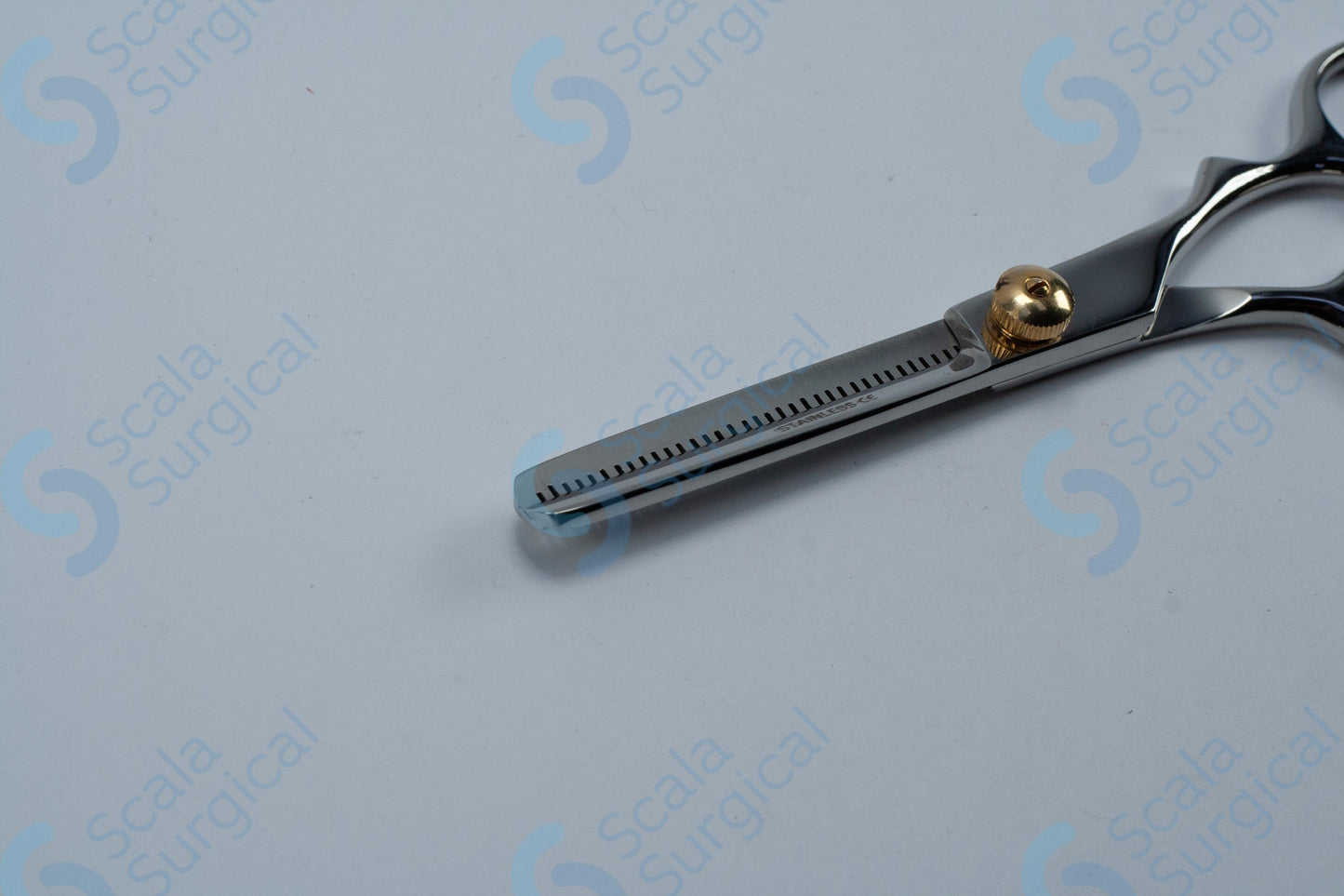 Barber Hair Thinning Shears with Finger Rest (145mm 5? inch) are used in the surgical field to trim and thin out thick hair on the patient's head prior to surgery. This helps to reduce the risk of infection and improve the visibility of the surgical site.