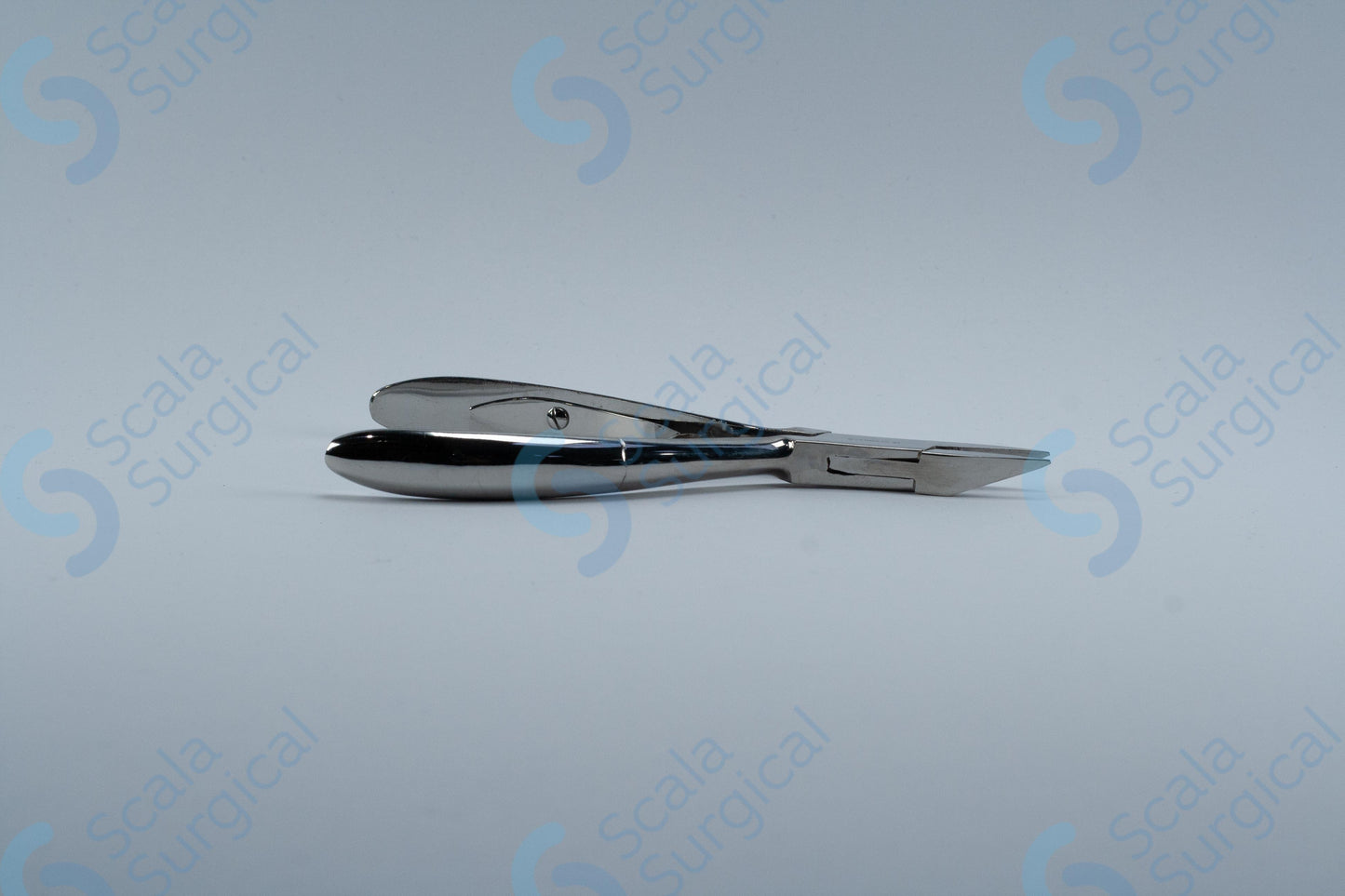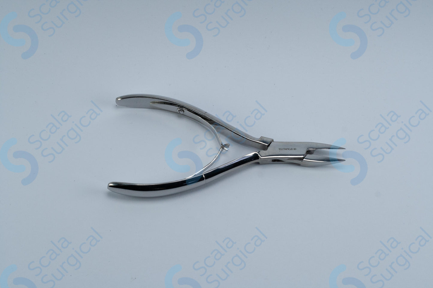 This item is used to safely and accurately trim an ingrown toenail. The straight triangular box joint design provides a secure grip and the 127mm (5 inch) size is suitable for use on larger nails.