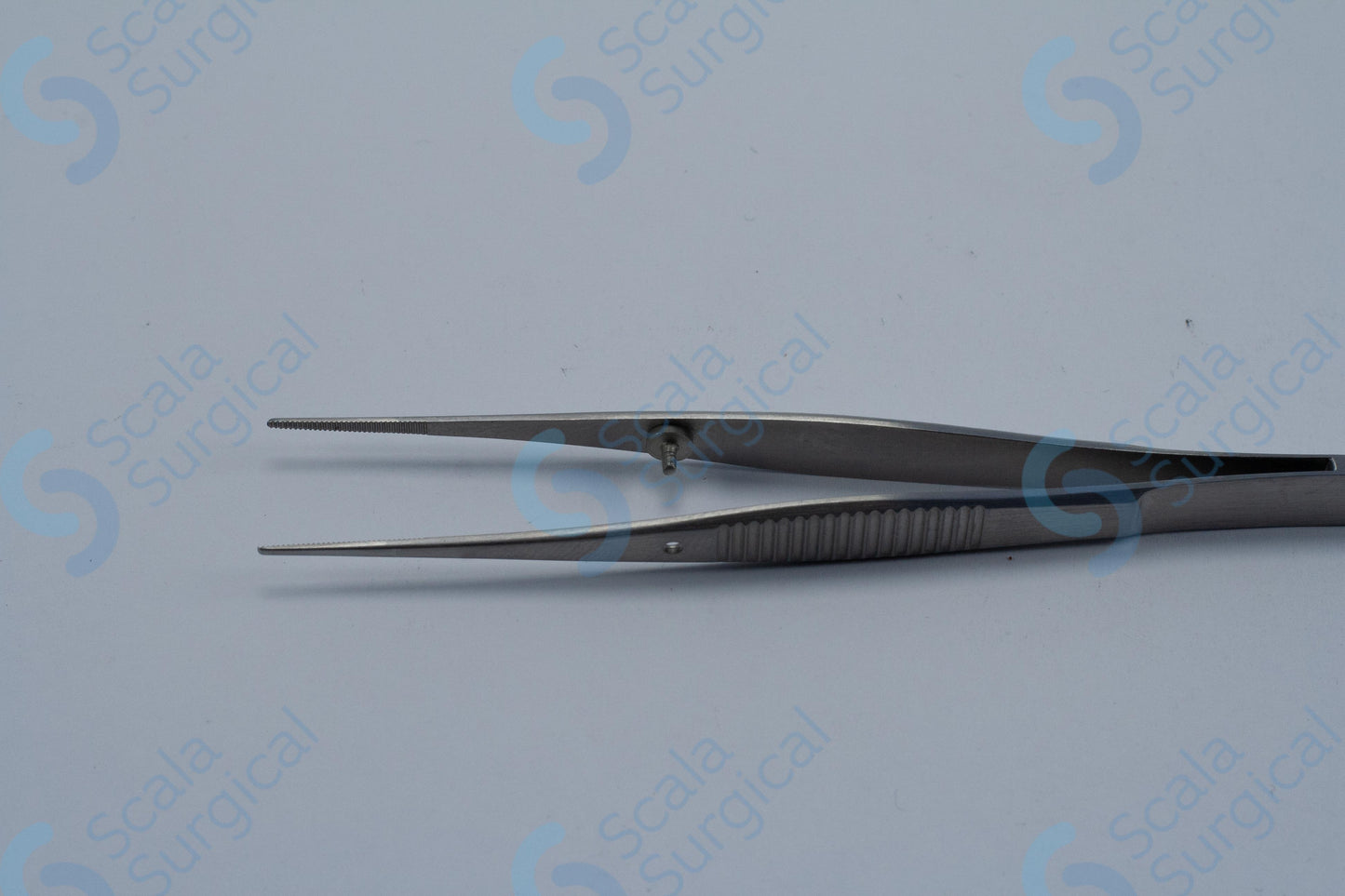 Iris Dissecting and Tissue Forceps Serrated Jaws Straight (101.6mm) (4 inch) are surgical instruments used to hold, grasp, and manipulate tissue during surgical procedures. The serrated jaws are designed to grip tissue securely, while the straight design allows for precise control and manipulation. These forceps are commonly used for dissecting delicate tissue, such as the iris of the eye, or for holding and manipulating tissue during other surgical procedures.