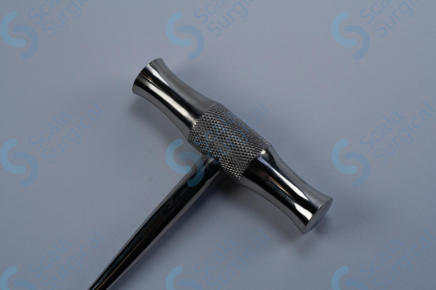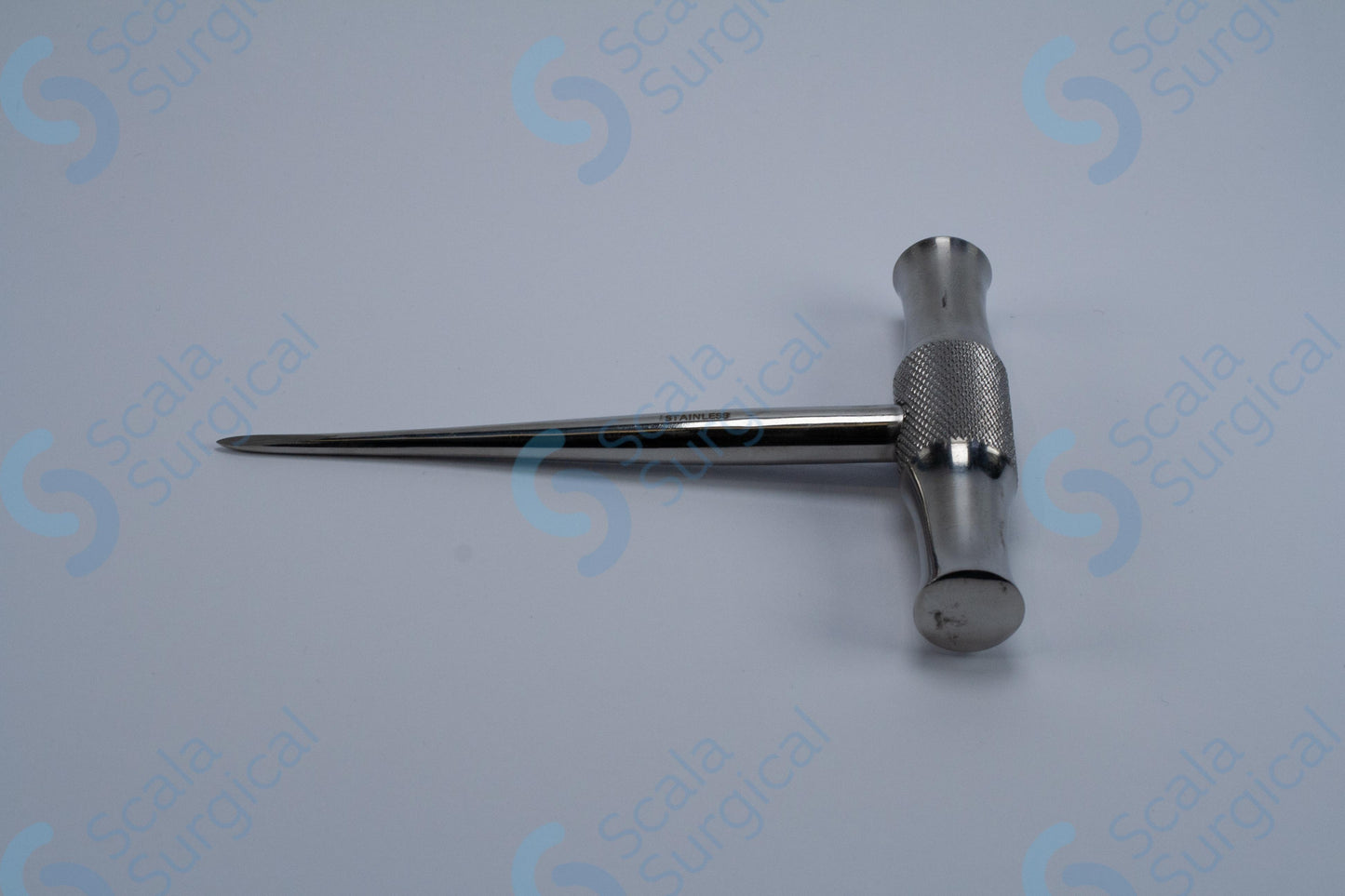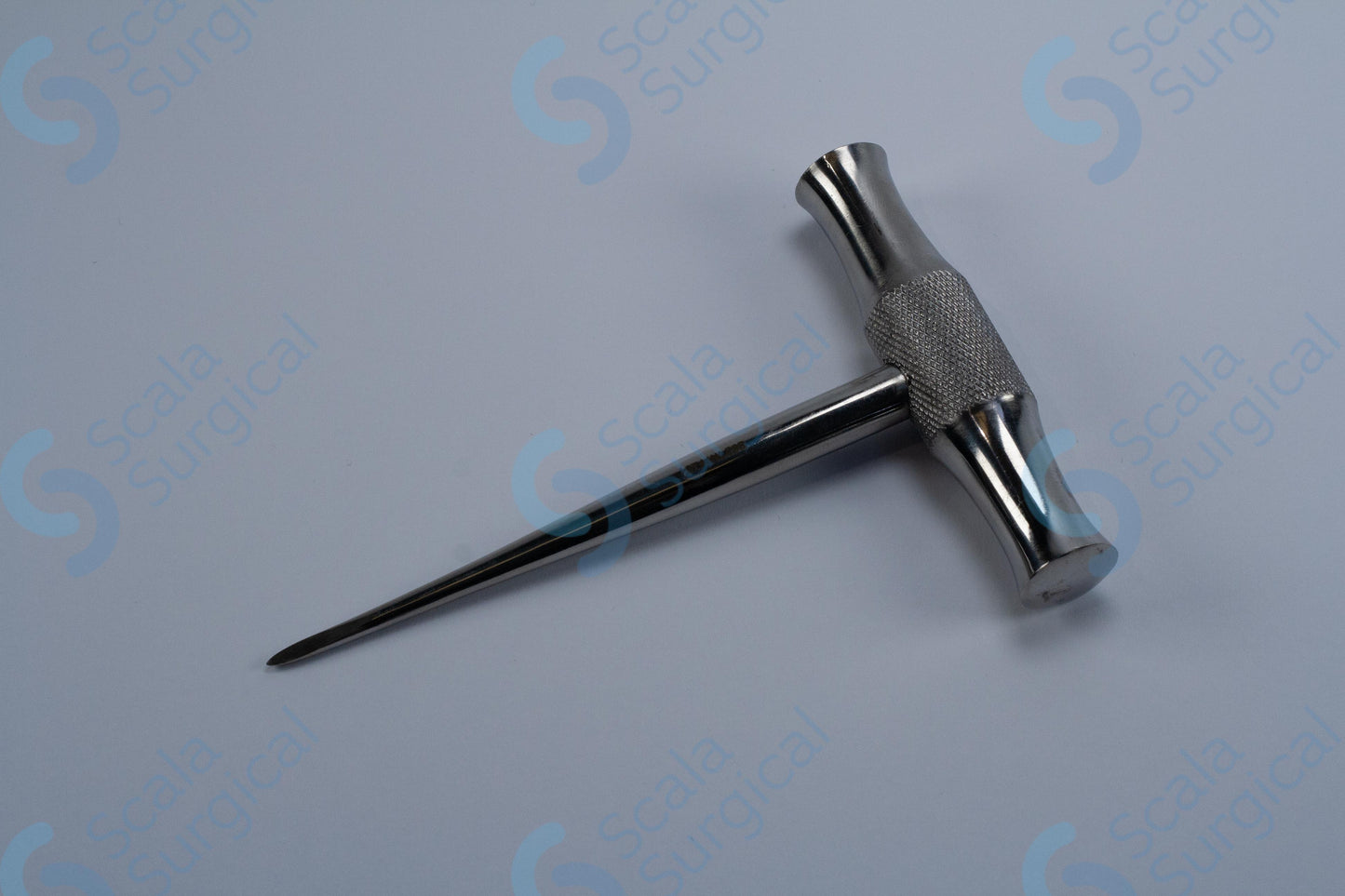 Root elevators with a T-shaped handle and a straight blade are used to gently separate the tissue around the root of a tooth during dental surgery. The blade is inserted into the gum line and used to carefully lift and separate the tissue from the root of the tooth. This helps to provide access for the dentist to remove the tooth or perform other procedures.