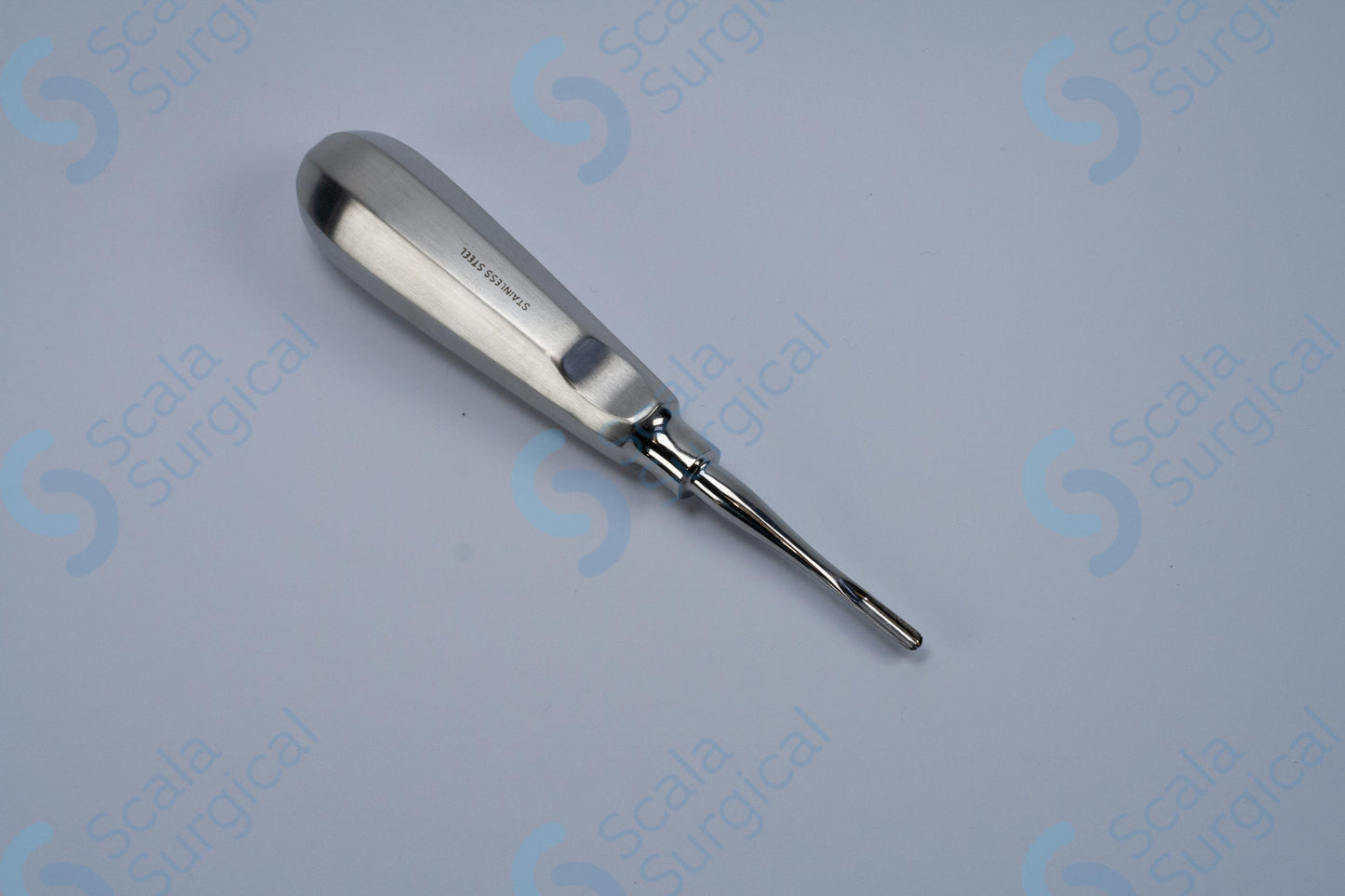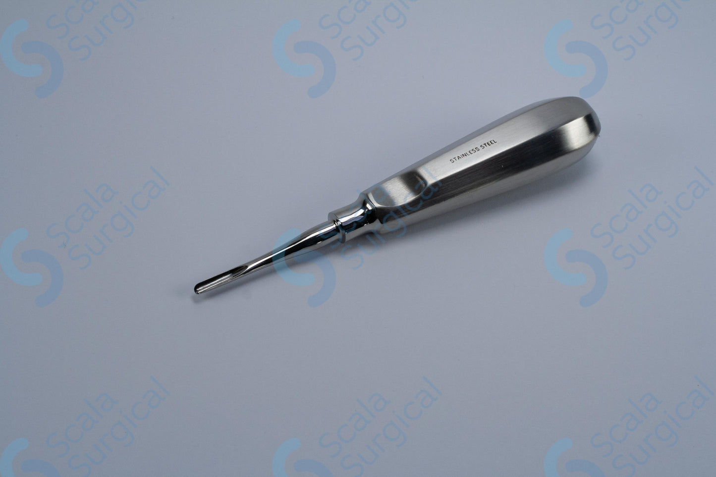 A root elevator is a surgical tool used to lift and/or remove a tooth root from its socket in the jawbone. The Root Elevator 720/4 (152.4mm) (6 inch) is a specific type of root elevator that is 152.4mm (6 inches) in length.