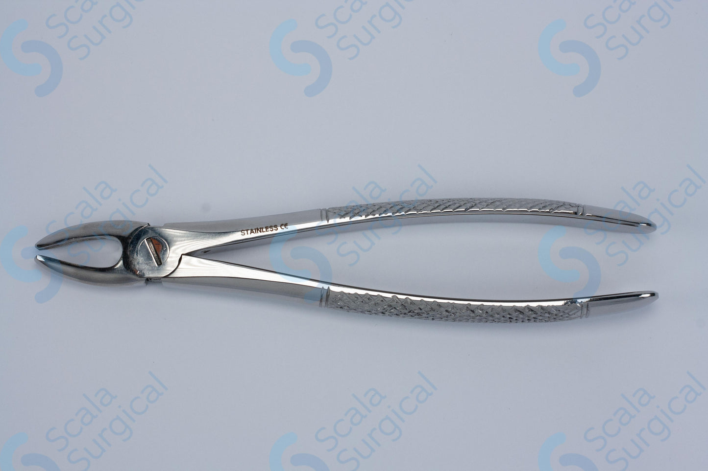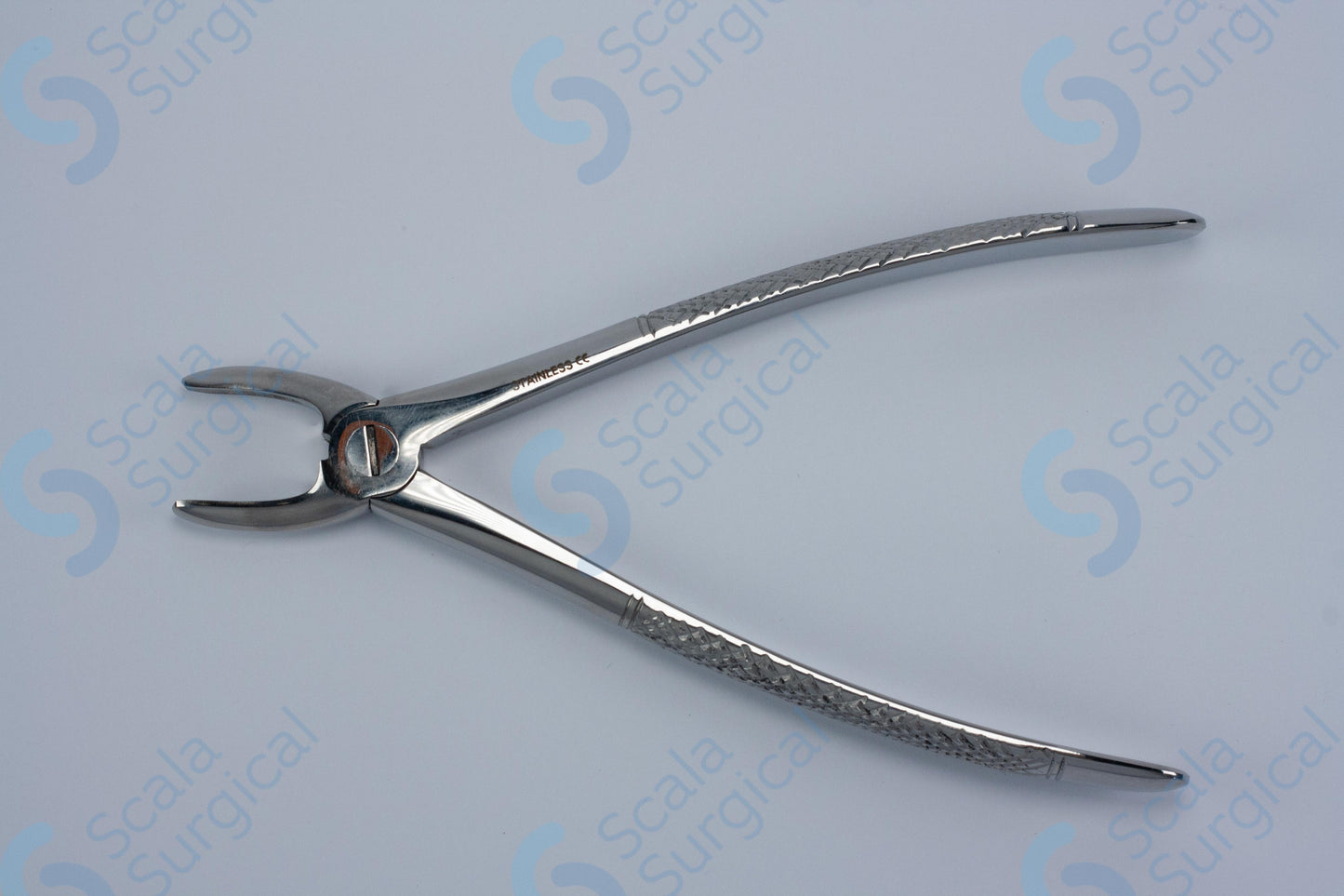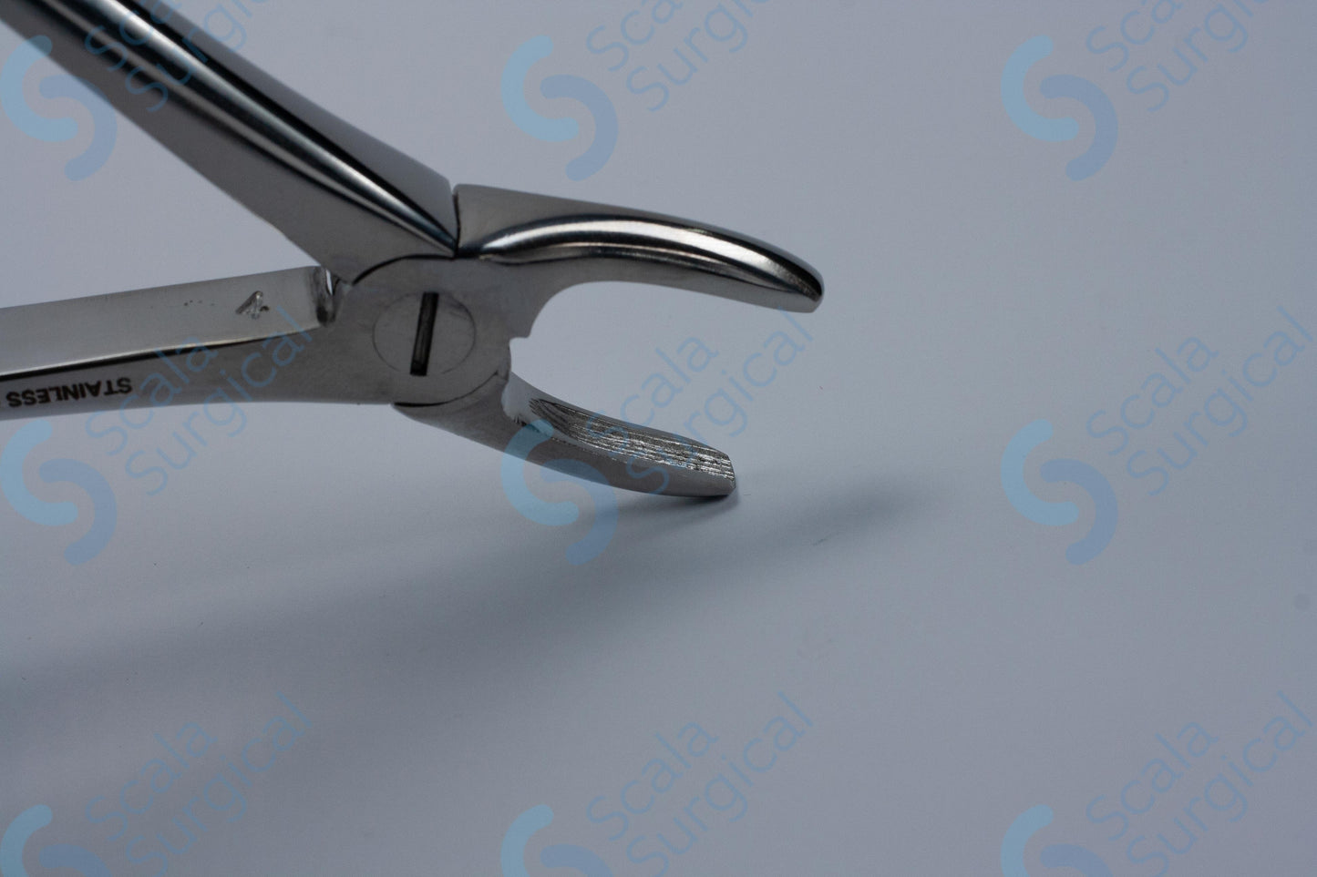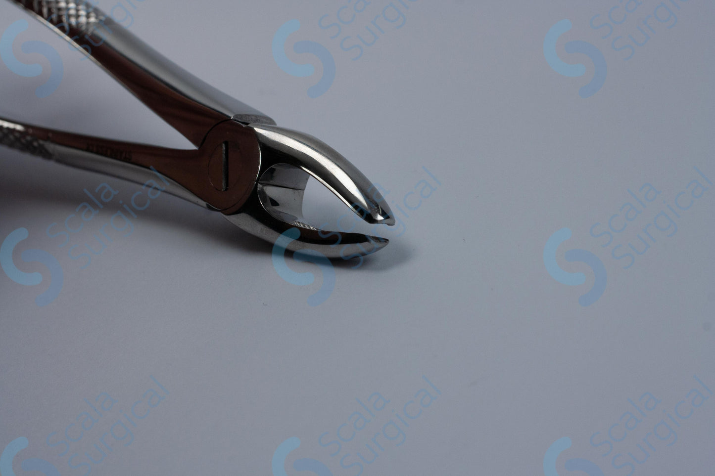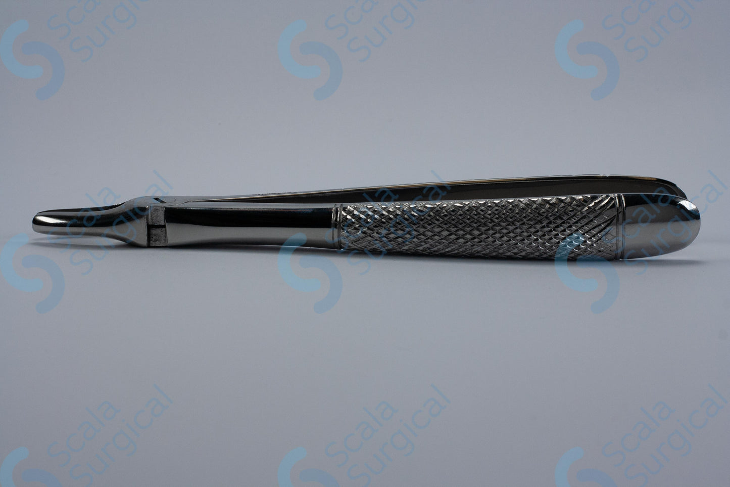 Dental forceps with a spring action handle are used to hold small dental instruments, such as probes and mirrors, during dental procedures. They are designed with a spring-loaded handle that opens and closes with the press of a button, allowing the user to easily grip and release the instrument without having to manually open and close the handle.