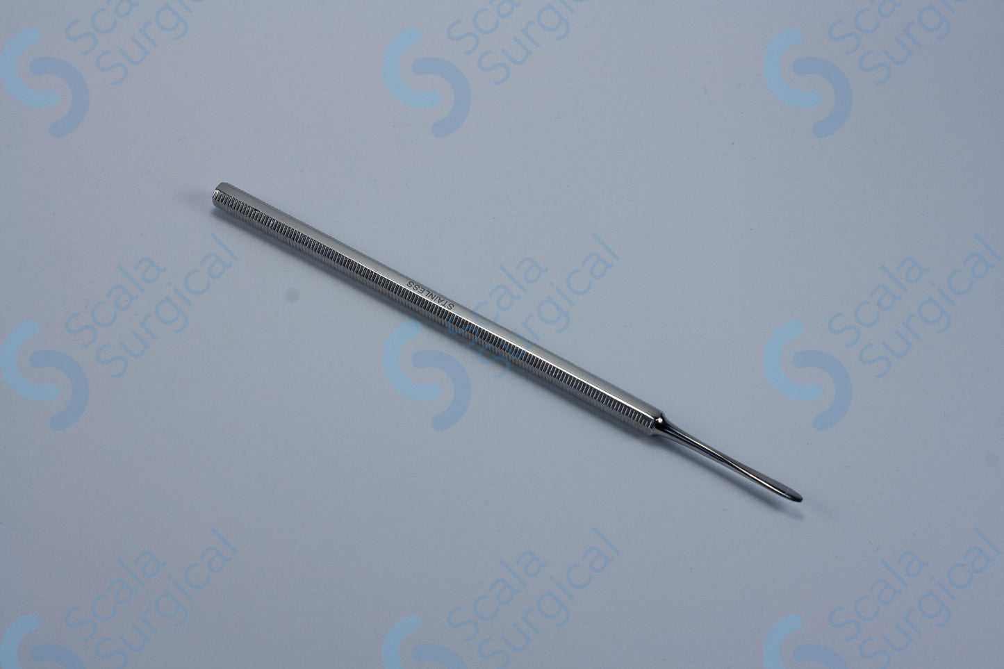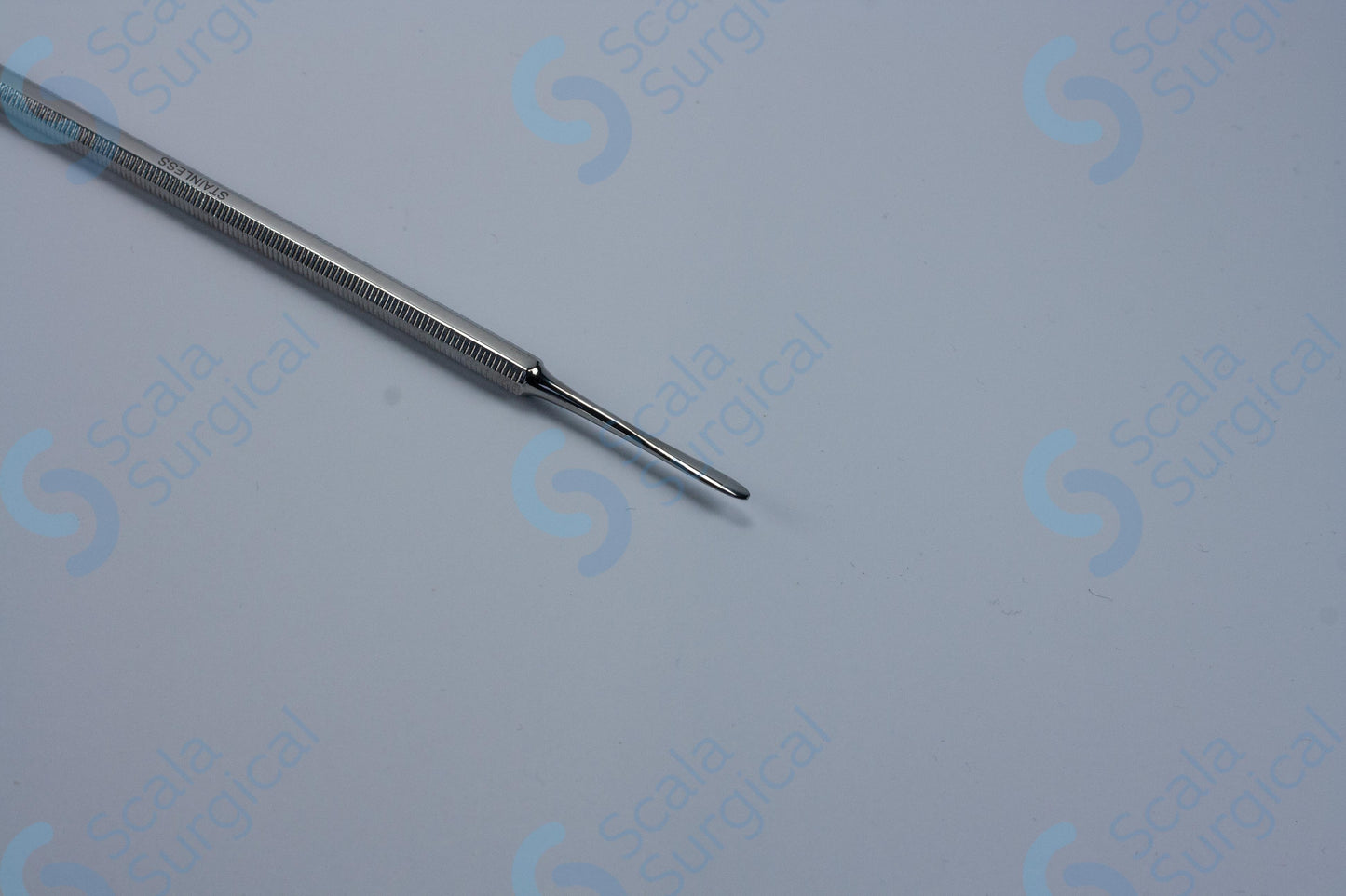 The White Burnisher Single Ended (No-2010/1) is a tool used in orthopedic surgery to smooth and contour bone surfaces. It is commonly used in the treatment of bone fractures, osteotomies, and arthrodesis. The tool is made of stainless steel and has a single-ended, rounded tip.