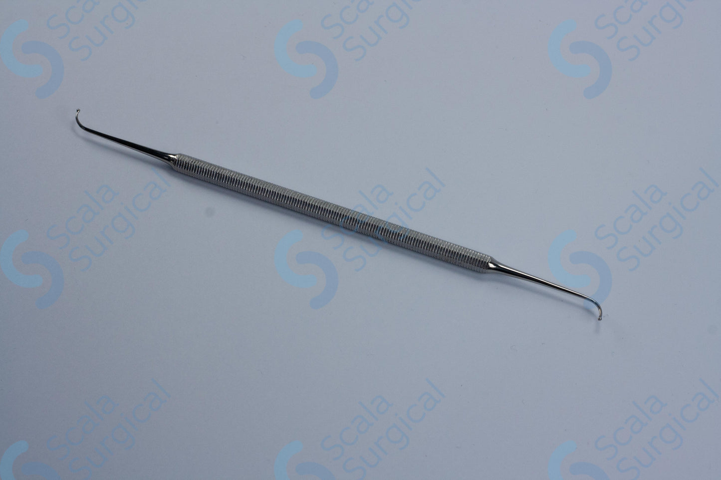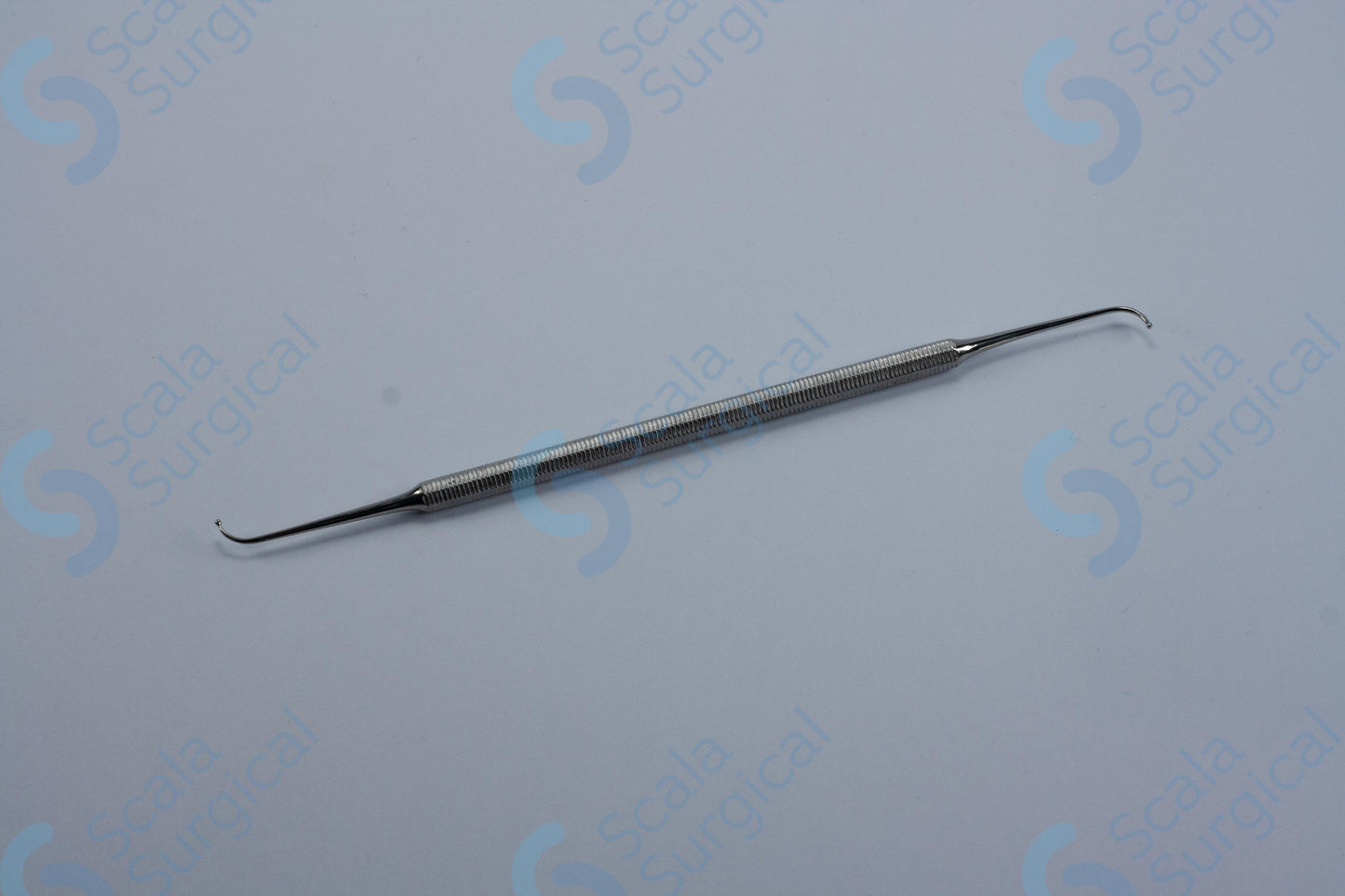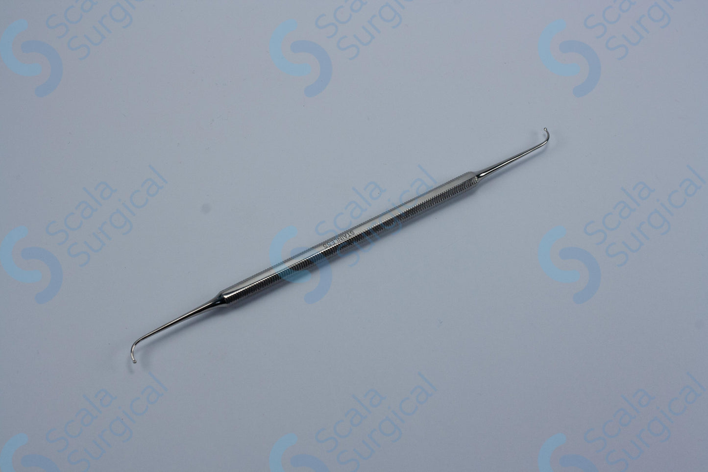 An amalgam plugger double ended (1710/17) is a dental instrument used to fill cavities with an amalgam material. It is used to shape and condense the amalgam, and the double ended design allows the dentist to use both ends of the plugger for different tasks.
