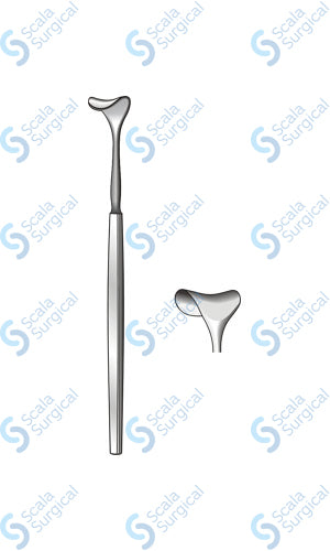 A Desmarres Retractor Large is a surgical instrument used to hold back the eyelids during ocular surgery. It is a metal or plastic device with two curved arms that are connected at one end. The arms are usually slightly curved and have a handle on the end. The curved arms are used to hold back the eyelids during ocular surgery.
