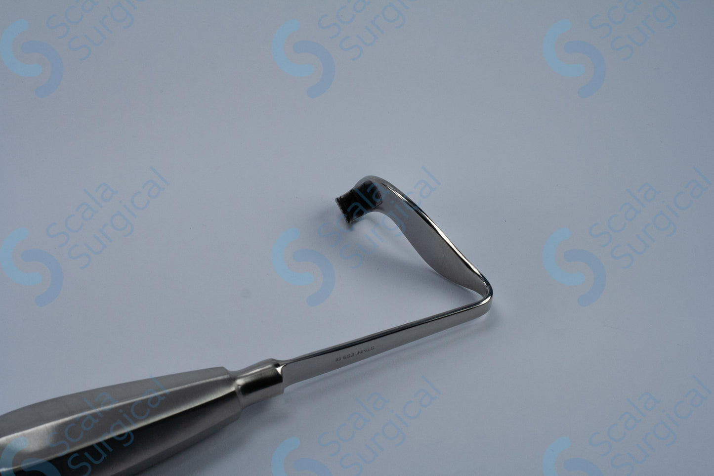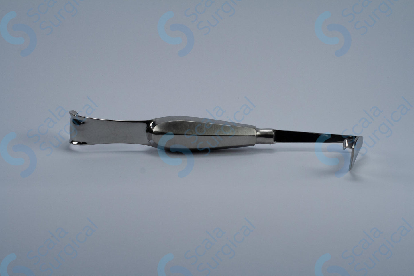 The Rowe Buccal Flap Retractor is a surgical instrument used to retract tissue during oral surgery procedures. It is specifically designed to retract the buccal flap during oral surgeries such as crown lengthening and implant placement. The double ended hollow handle is curved to the left to provide greater access to the surgical site.