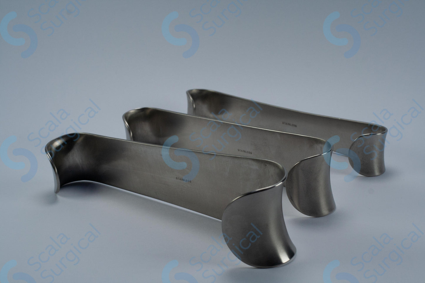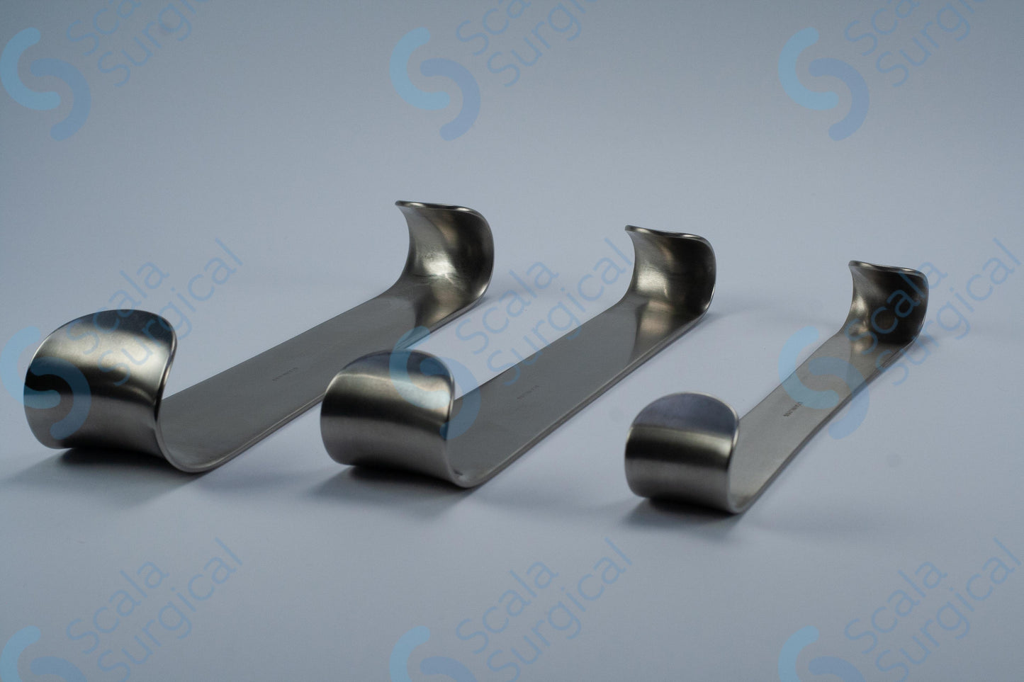 A Roux Retractor Double Ended Set of 3 (152.4mm) is a surgical instrument used to retract tissue and organs during surgery in order to provide better access to the surgical site. It is used to hold open the skin and underlying tissue.