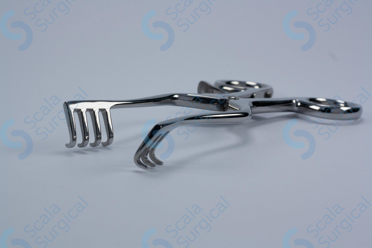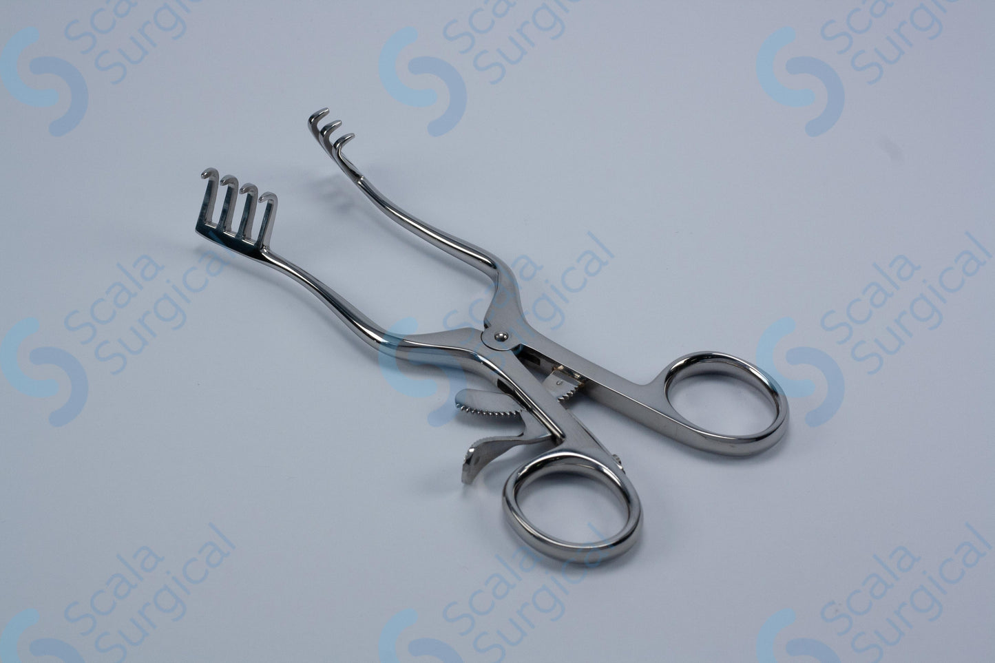 This Weitlaner Self Retaining Retractor is a surgical instrument used to hold back underlying tissue and organs in order to provide a clear view of the surgical site. The 3 x 4 prongs are blunt and the 139.7mm (5? inch) size makes it suitable for use in a variety of surgical procedures.