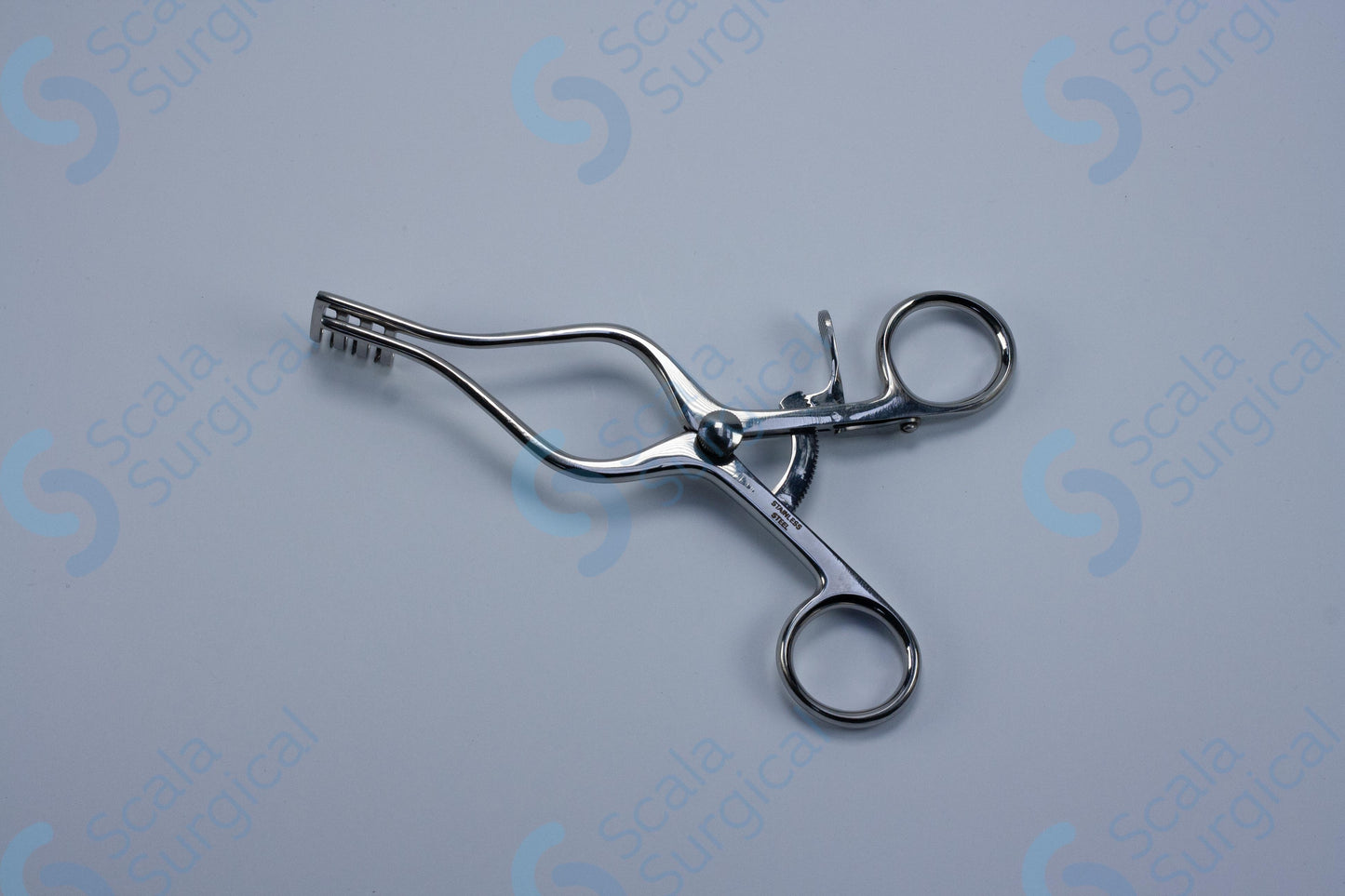This Weitlaner Self Retaining Retractor is used to hold open a surgical incision or wound in order to provide access to the underlying anatomy. The three prongs and four blades are blunt, making them safe for use in delicate tissue. The 158.75mm (6? inch) size allows for use in a variety of surgical procedures.
