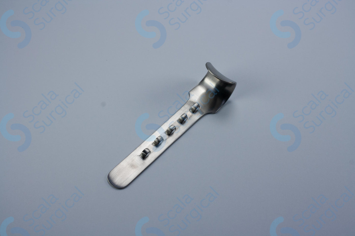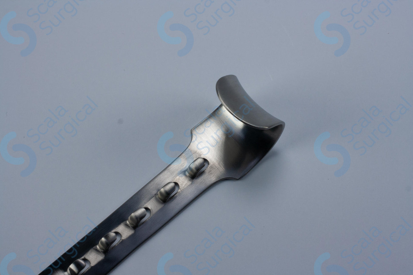 This stainless steel blade is typically used for surgical procedures such as incising tissue, cutting sutures, and dissecting tissue. It is designed for precision and durability, and is often used in laparoscopic and robotic surgeries.