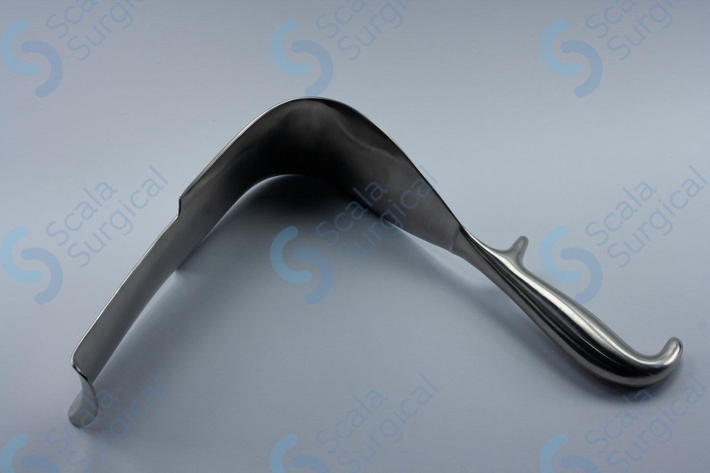 The St Marks Retractor with Lip is a surgical instrument used to hold back tissue and organs in order to gain access to a surgical site. It is typically used during abdominal surgery, and the two sizes listed (200mm x 65mm and 100mm x 50mm) refer to the size of the retractor's blade.