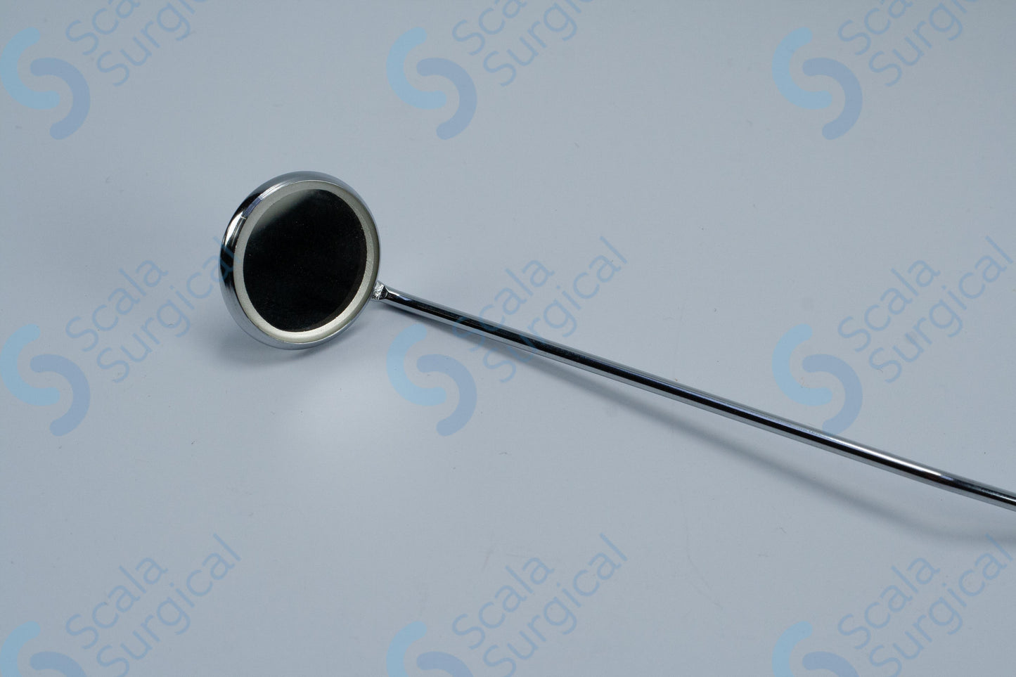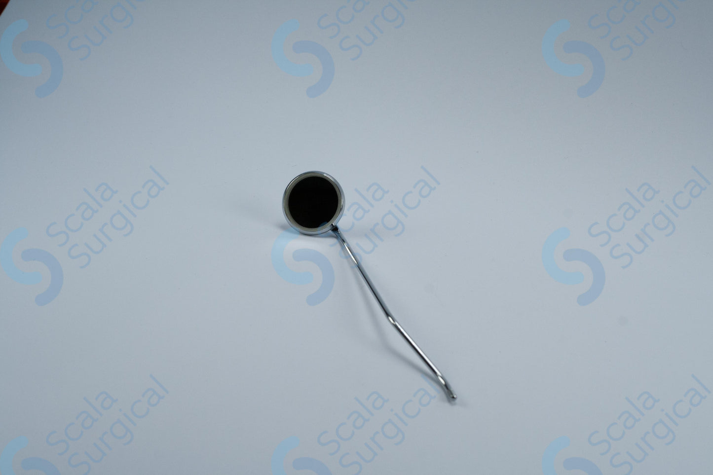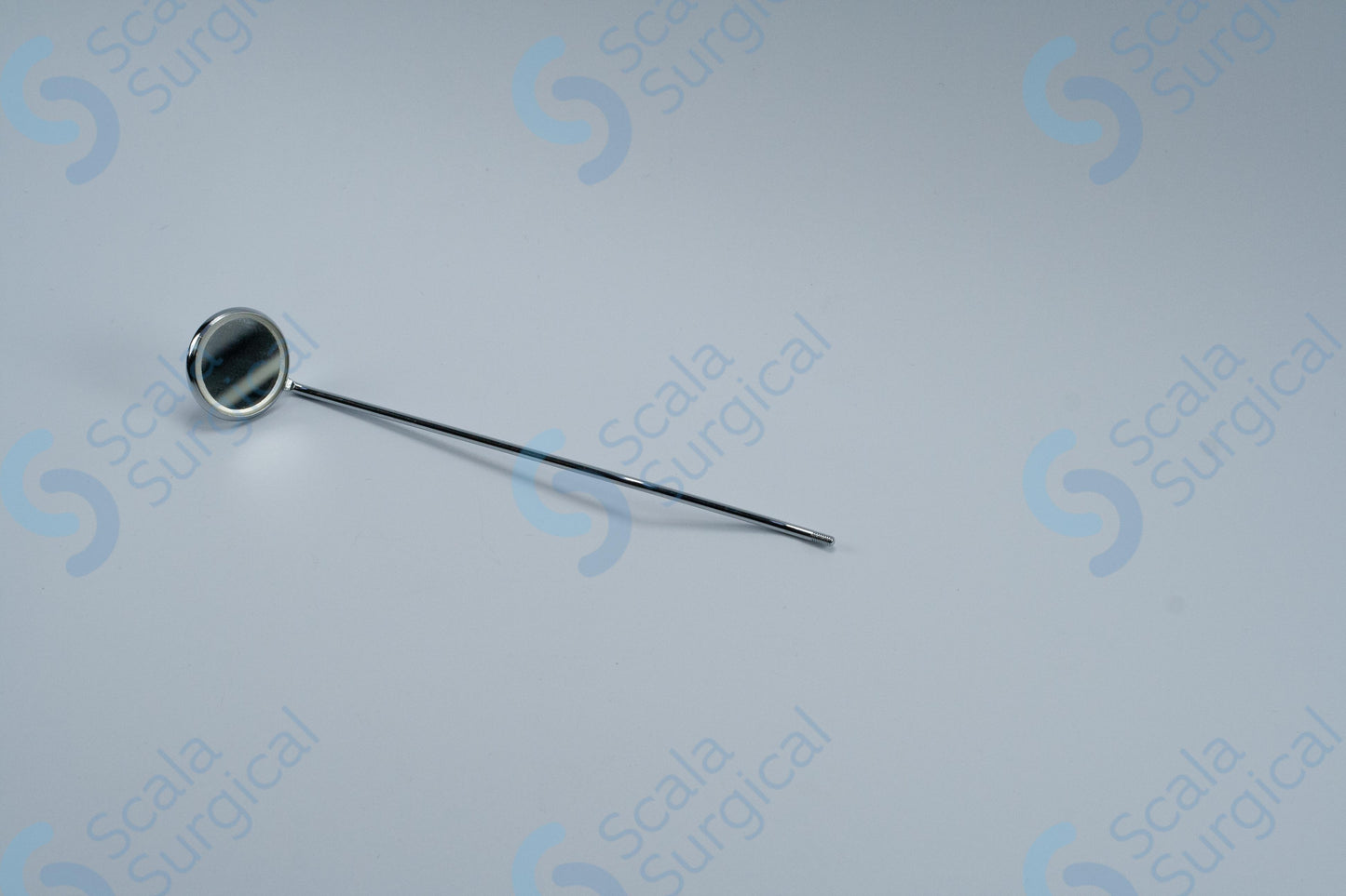 The St Clair Post Nasal Handle and Mirror is a tool used by surgeons to help visualize the area behind the nose. It consists of a handle with a 24mm mirror attached to the end. The mirror can be angled to provide a clear view of the area behind the nose, which is important for performing certain procedures such as nasal polypectomy or septoplasty.
