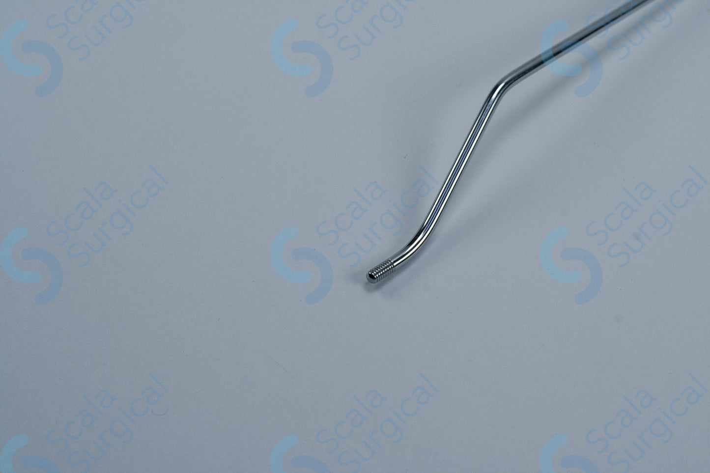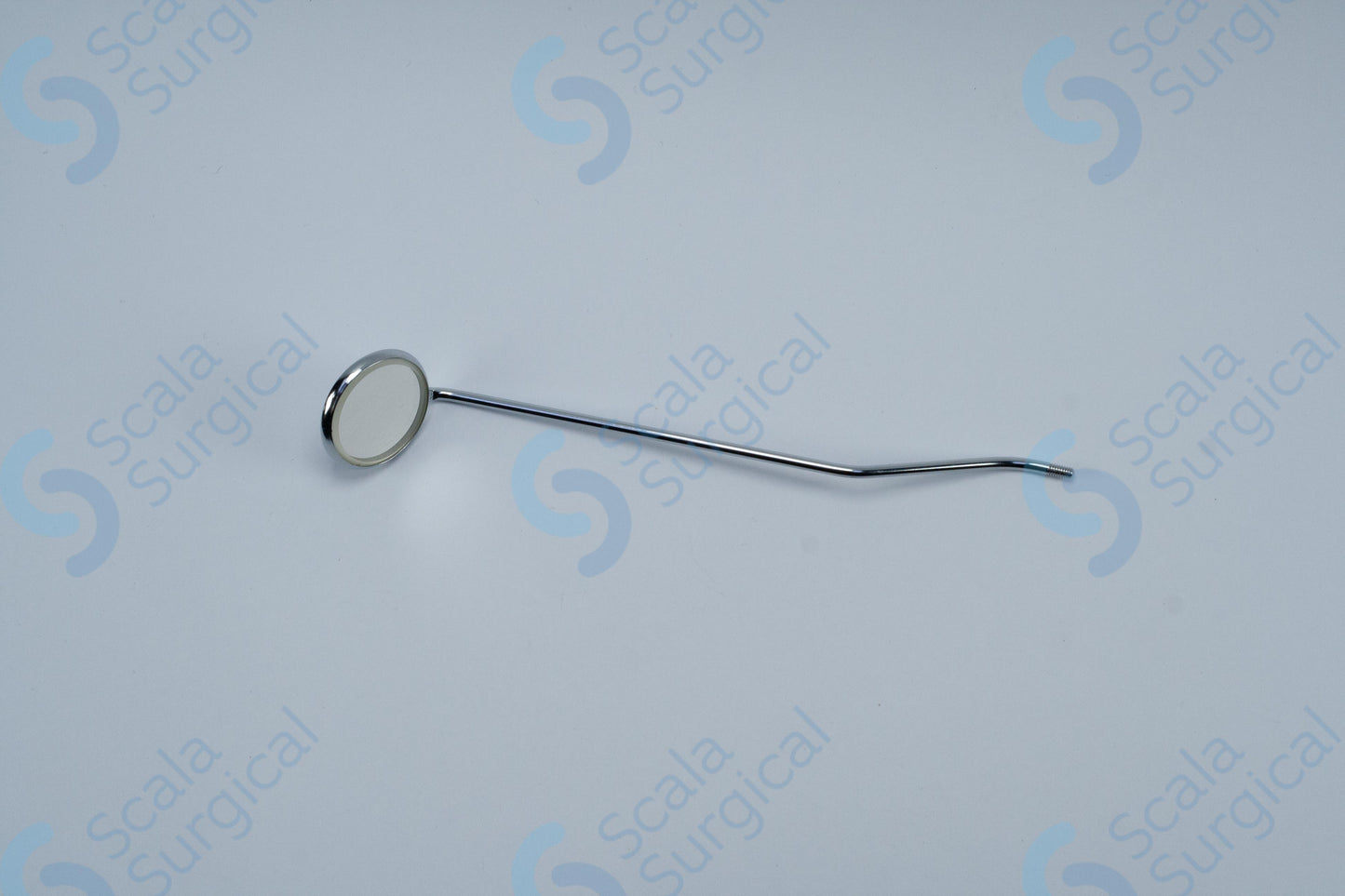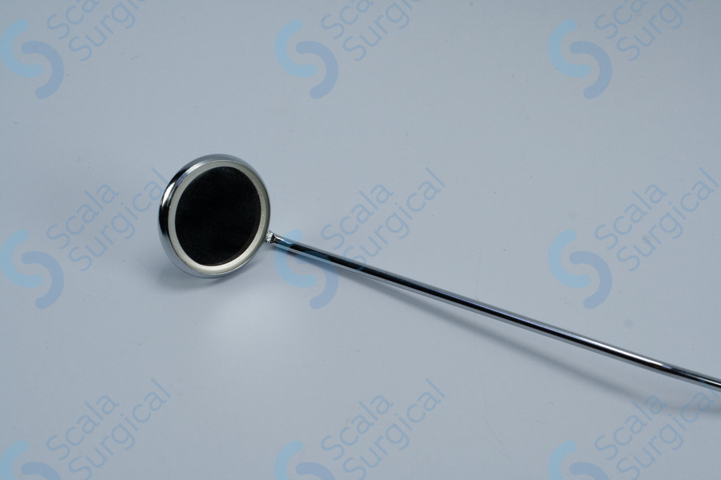 The St Clair Post Nasal Handle and Mirror is a tool used by surgeons to help visualize the area behind the nose. It consists of a handle with a 24mm mirror attached to the end. The mirror can be angled to provide a clear view of the area behind the nose, which is important for performing certain procedures such as nasal polypectomy or septoplasty.