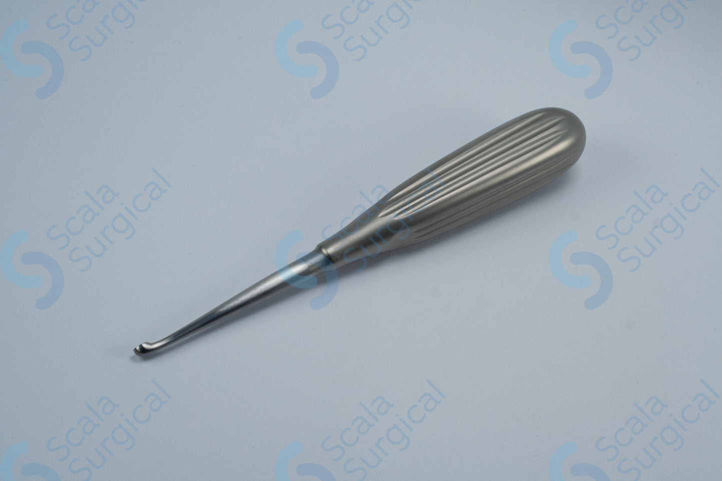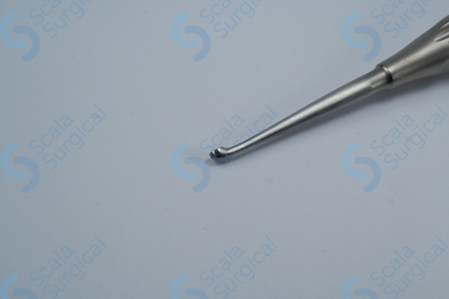 The Volkmann Scoop is a surgical instrument used to remove bone chips, spicules, and other small debris during orthopedic and trauma surgeries. It is designed with a single ended oval cup and a hollow handle, allowing the surgeon to easily scoop and remove debris from the surgical site. The size 00 scoop has a scoop length of 4mm and a scoop width of 2.5mm, making it ideal for removing small pieces of debris.