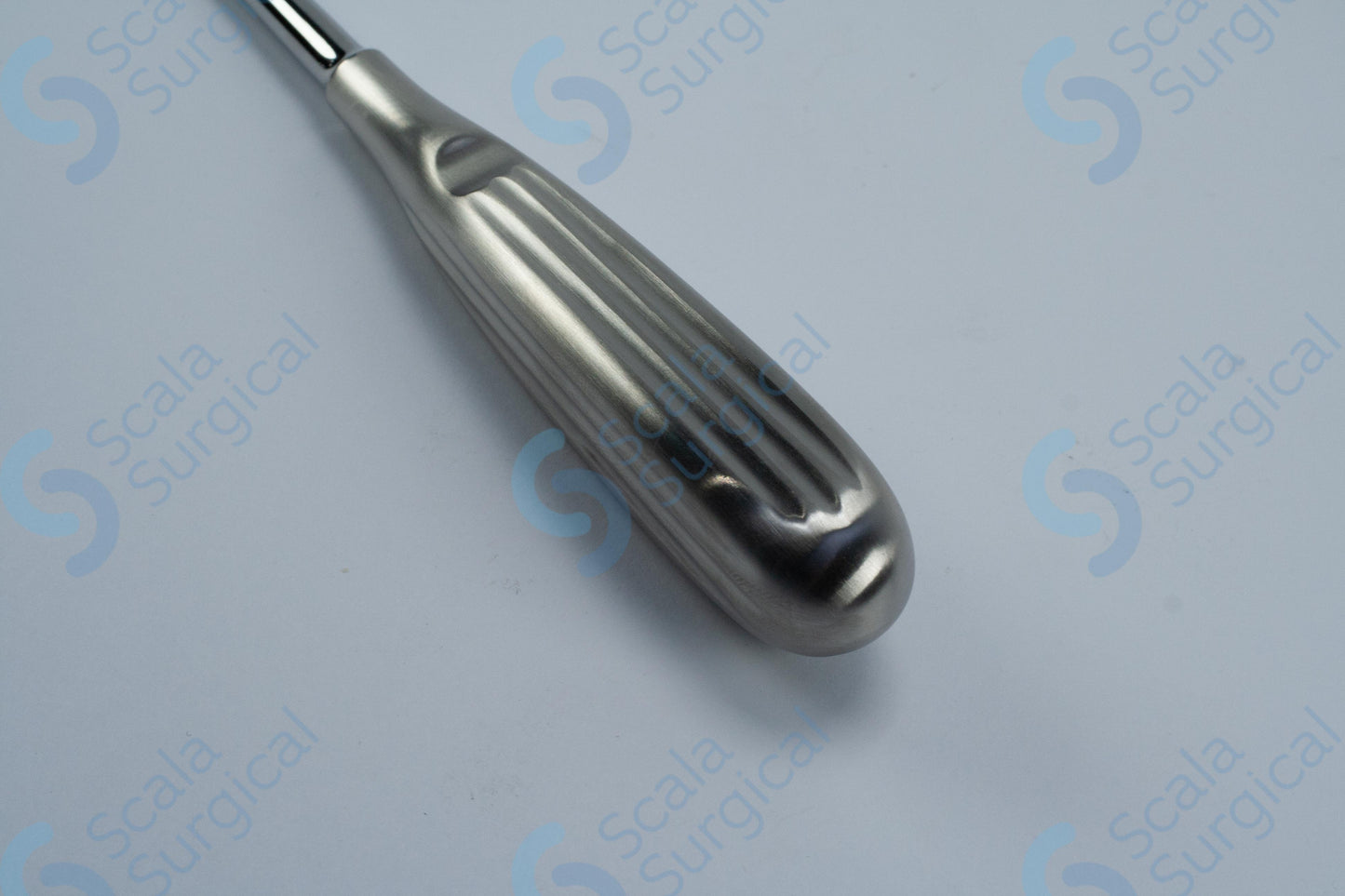 The Volkmann Scoop Single Ended Hollow Handle Oval Cup Size 3 is a surgical instrument used for the removal of bone fragments, chips, and other debris during surgical procedures. It can be used to scoop out bone and tissue from a surgical site, and its size and shape make it ideal for reaching into small spaces.