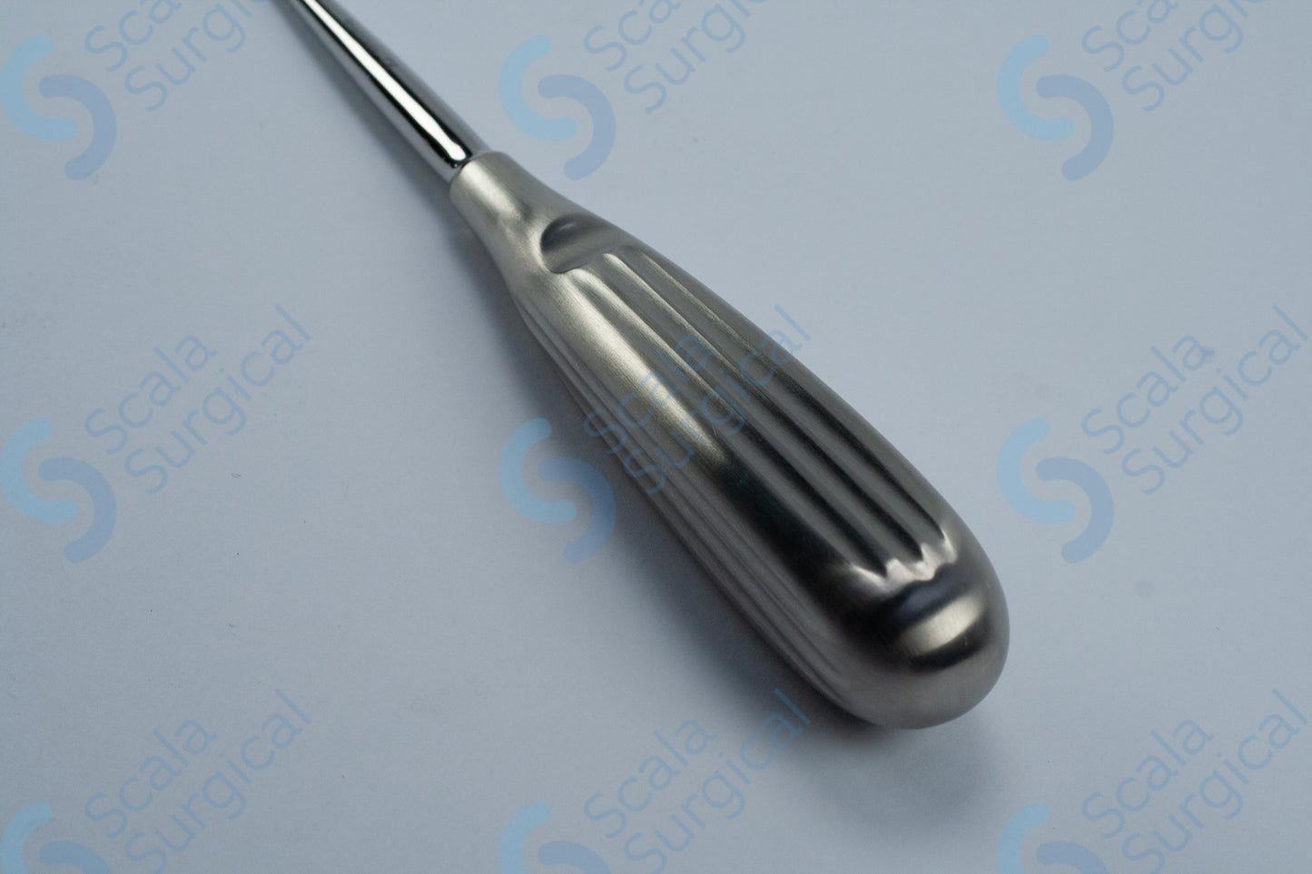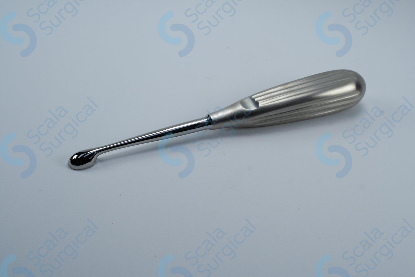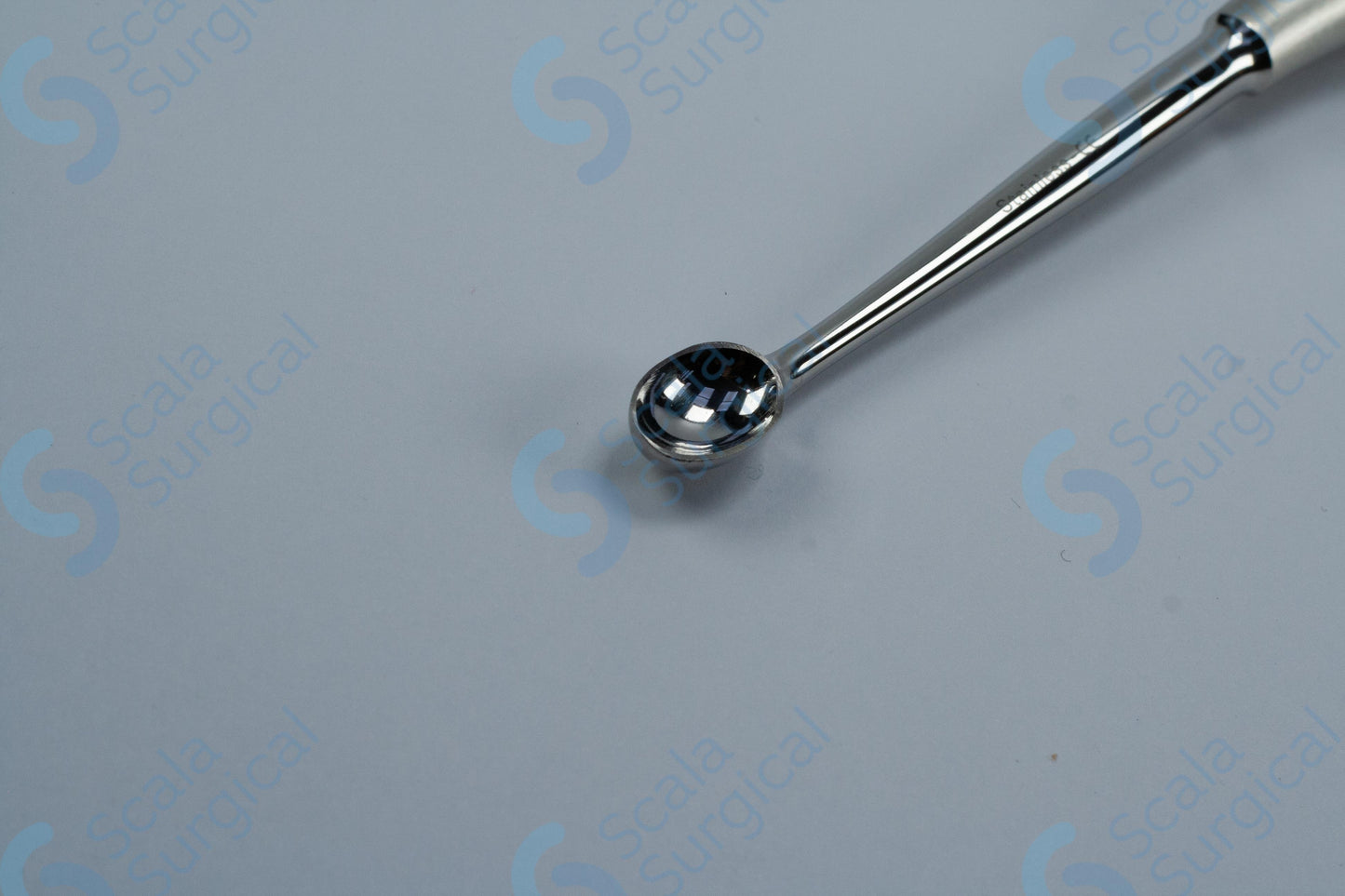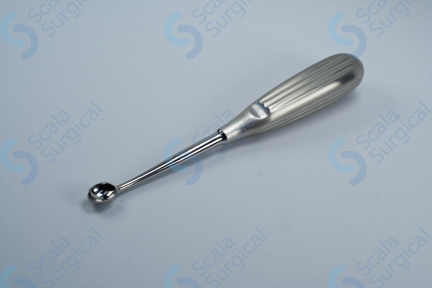 A Volkmann scoop is a surgical instrument used to remove bone fragments or chips from a surgical site. The hollow handle makes it easier to manipulate the scoop and the oval shape helps to scoop up the bone fragments. The size 4 scoop has a scoop length of 10.5mm and a scoop width of 6.5mm.