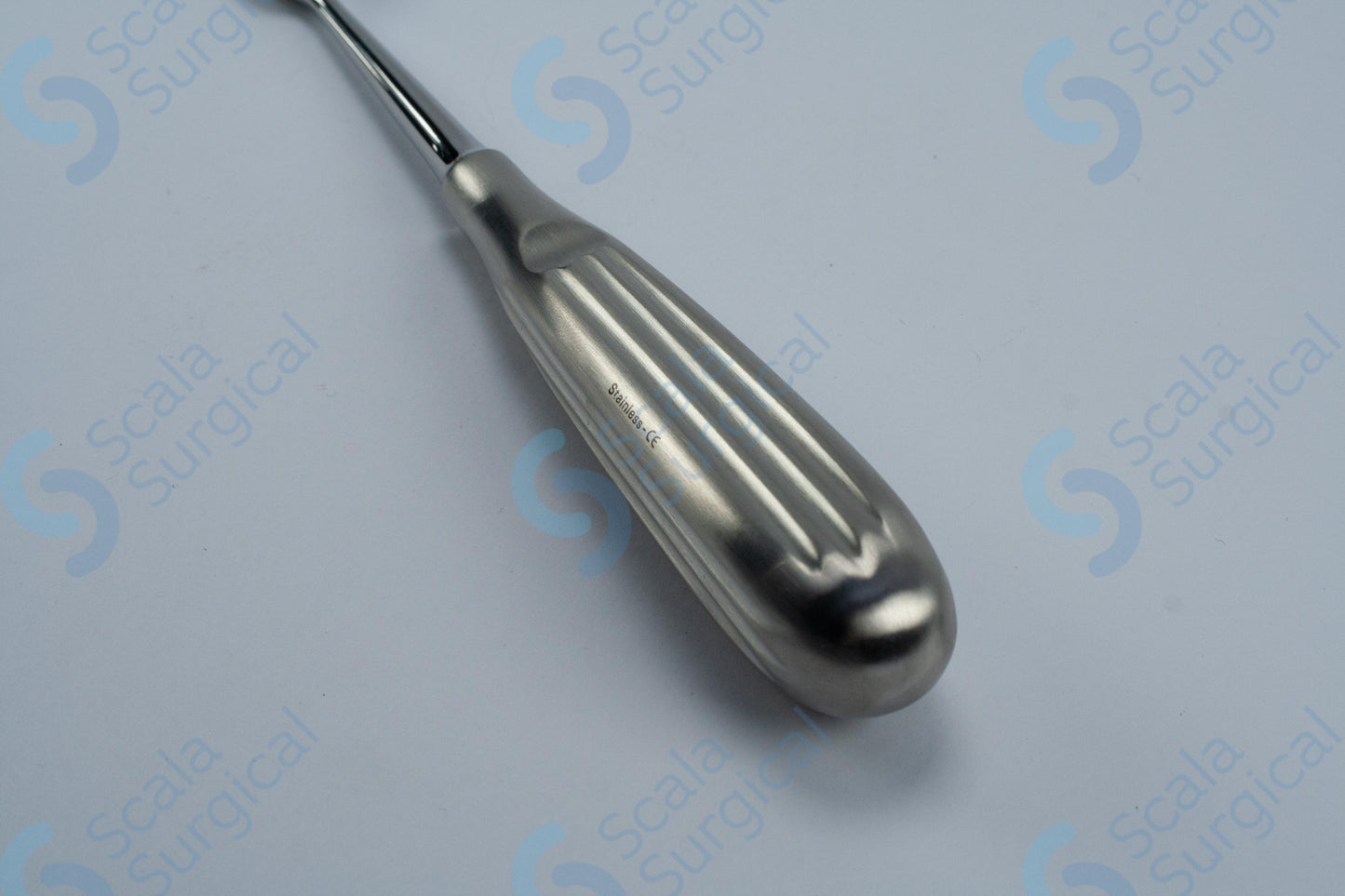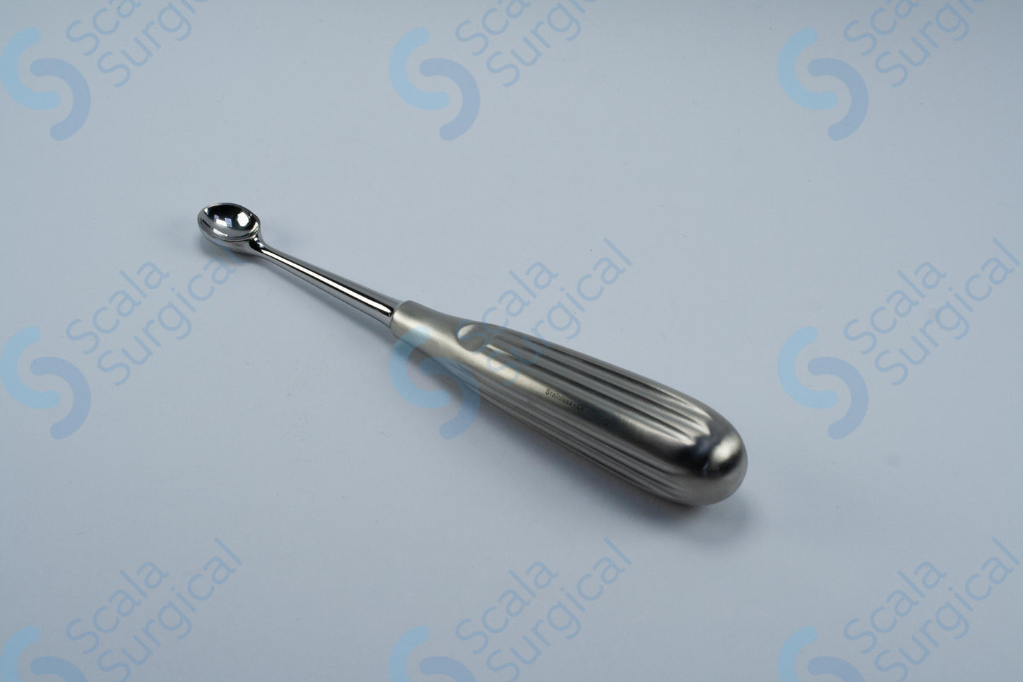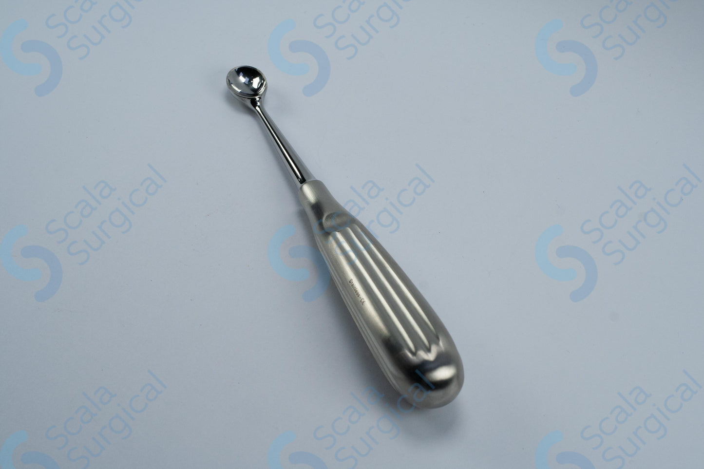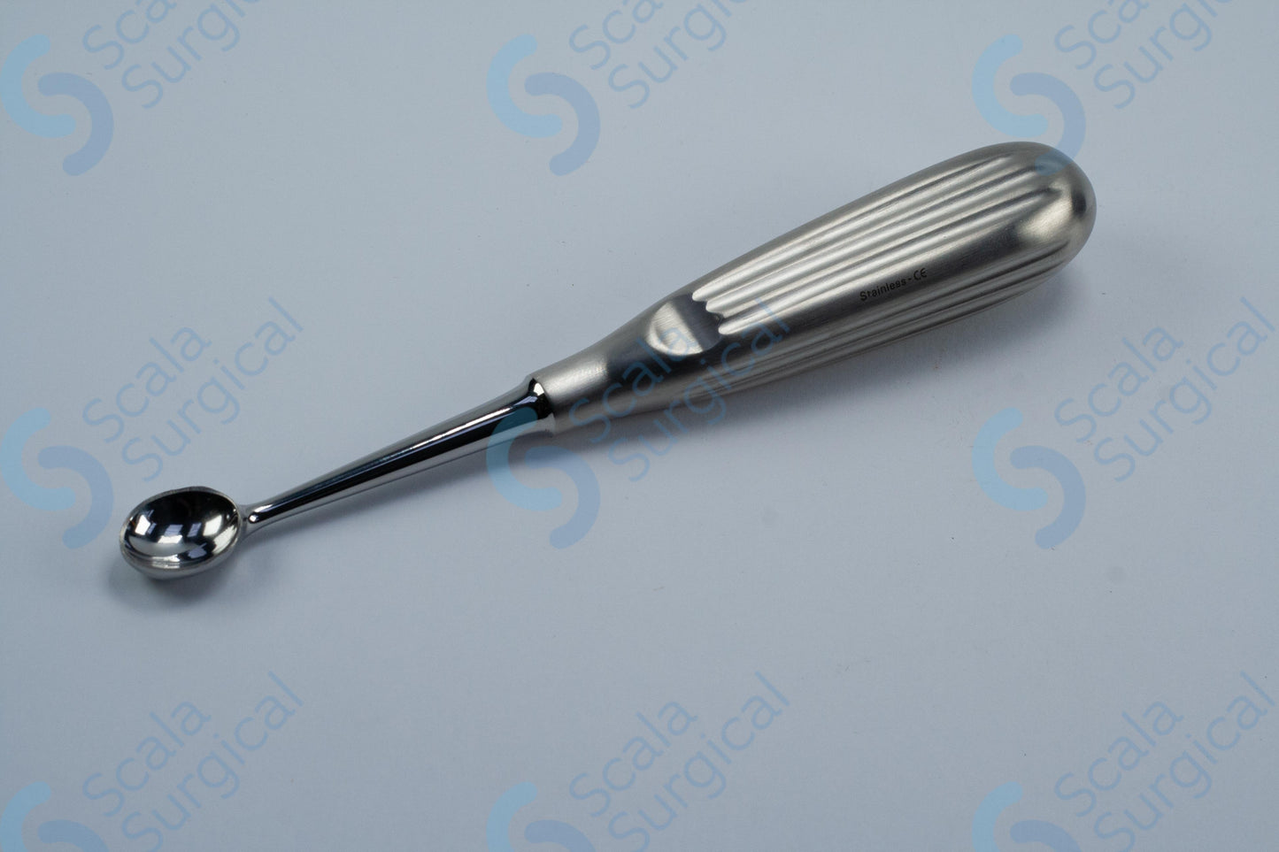 The Volkmann Scoop is used in orthopedic surgery to scoop out bone chips and debris from the surgical site. The single ended hollow handle allows the surgeon to safely remove the bone chips without damaging the surrounding tissue. The oval cup shape and size 5 dimensions provide a precise tool for the surgeon to use.
