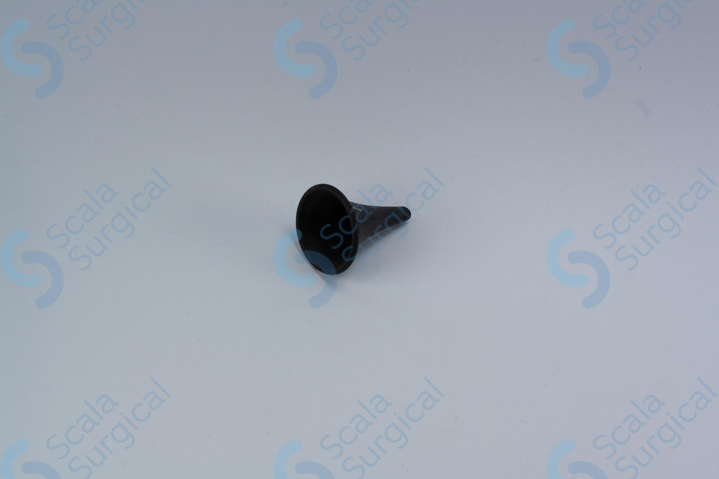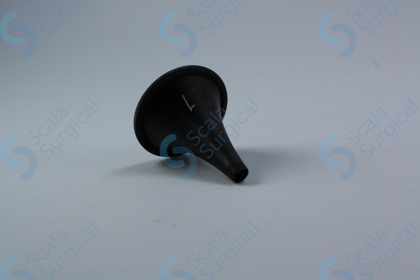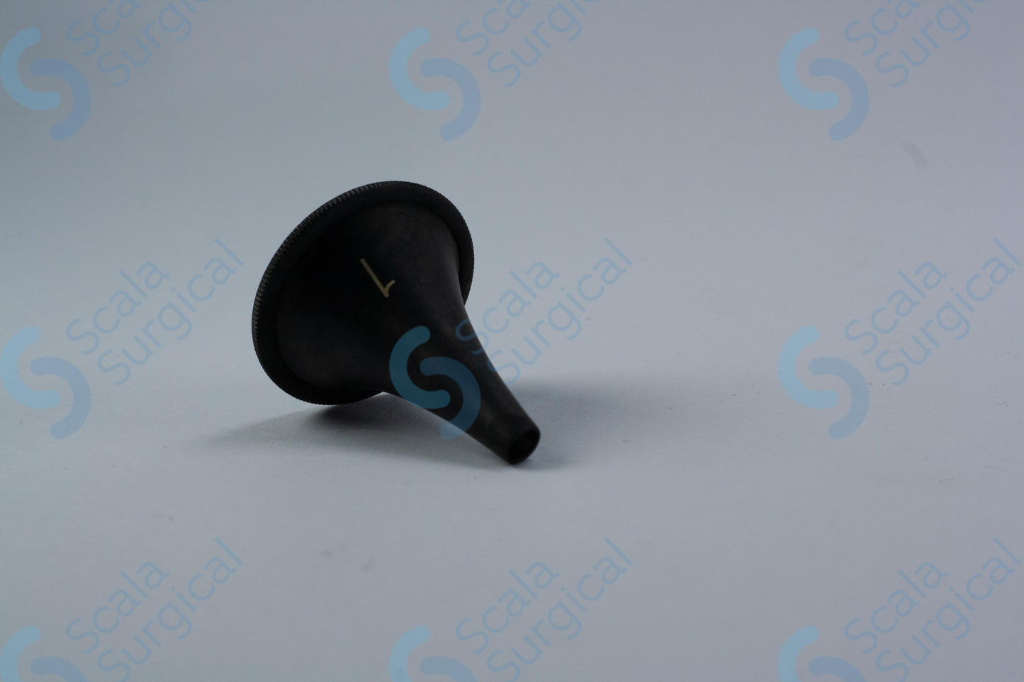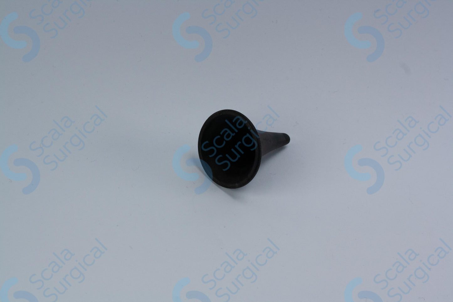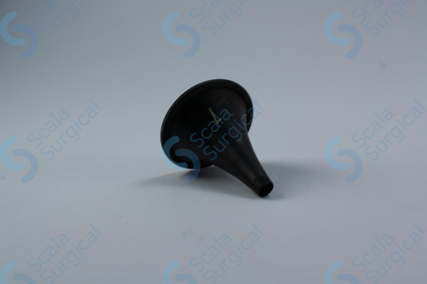 This item is a surgical instrument used to remove ear wax from the ear canal. It is a curved, oblique-ended tool with black plating, measuring 4.1 x 3.3 cm and 38 mm in length.