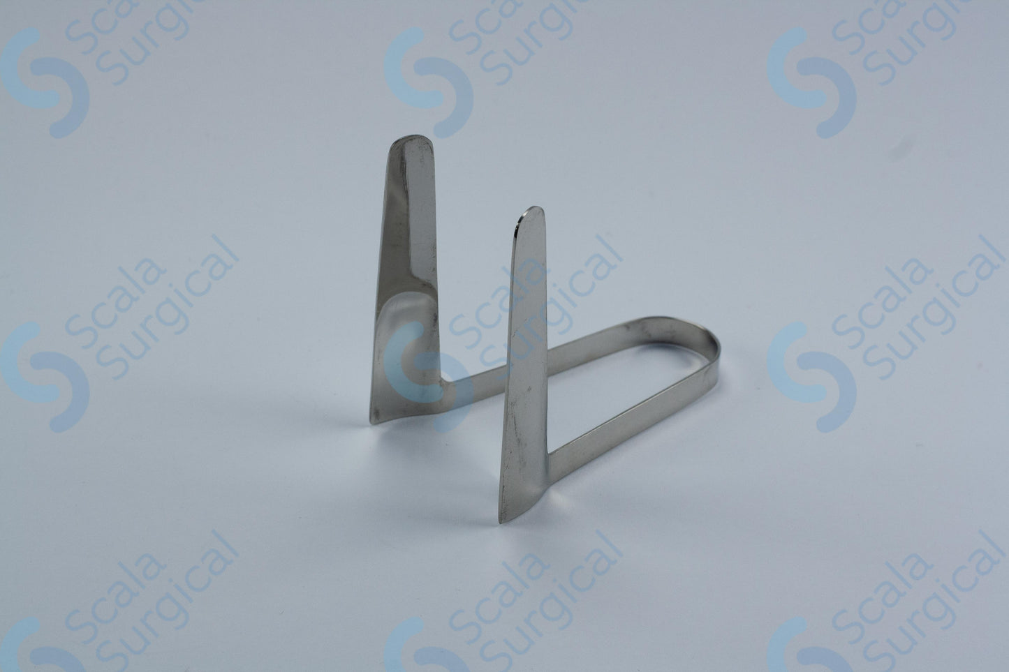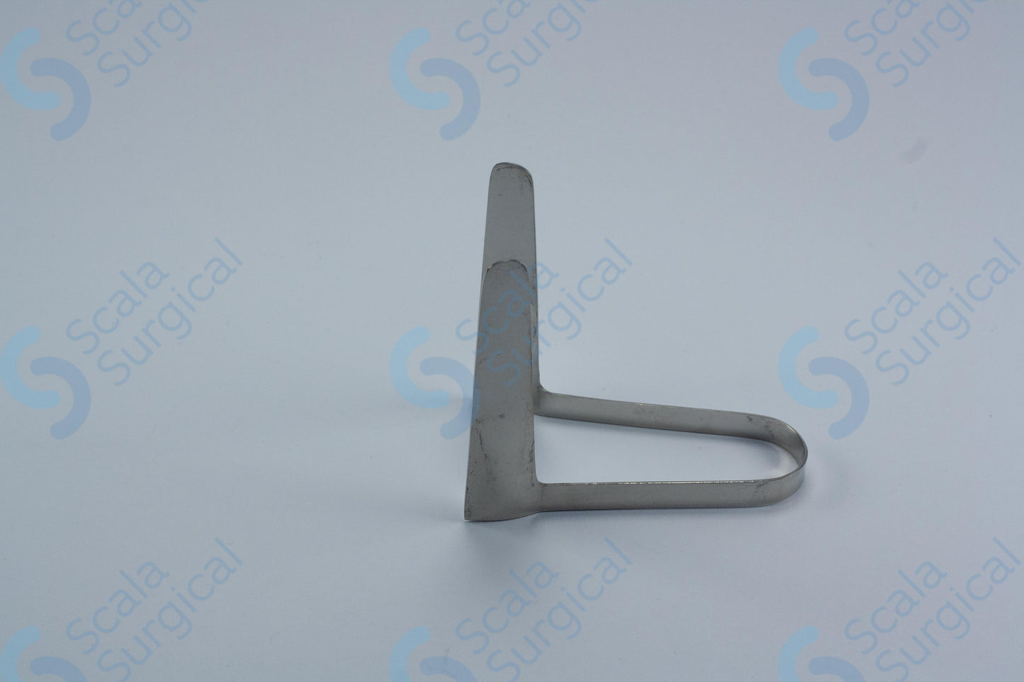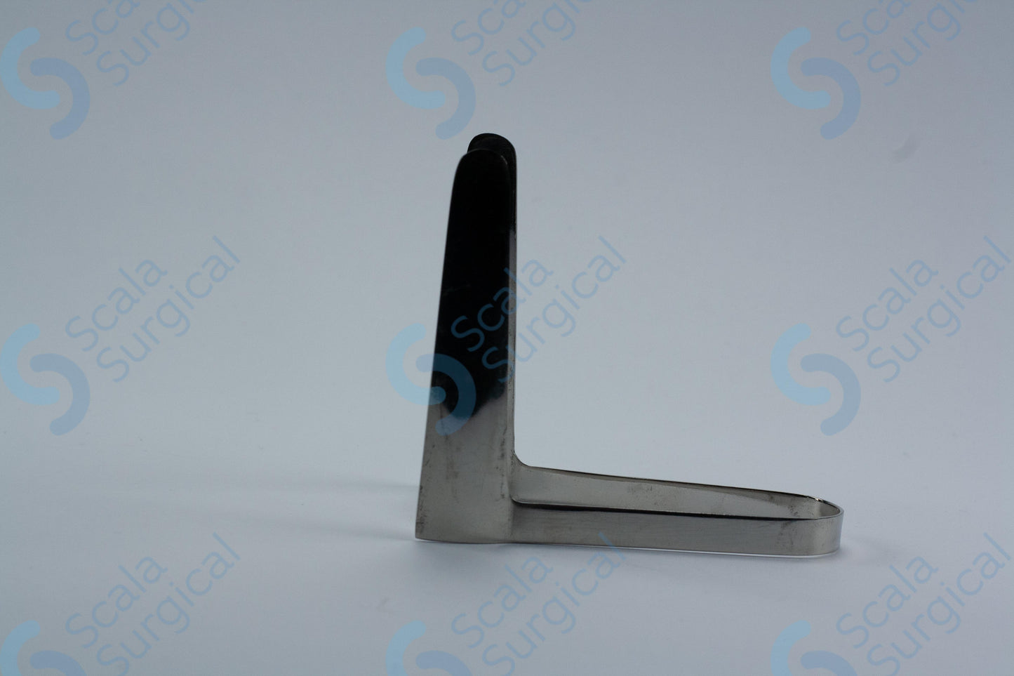 The St Clair Thomson Nasal Speculum is a surgical instrument used during nasal endoscopy procedures. It is used to hold open the nostrils during examination of the nasal cavity, allowing the surgeon to more easily view and access the area. The 65mm blade length refers to the length of the blades of the speculum, which can be adjusted depending on the size of the patient's nostrils.