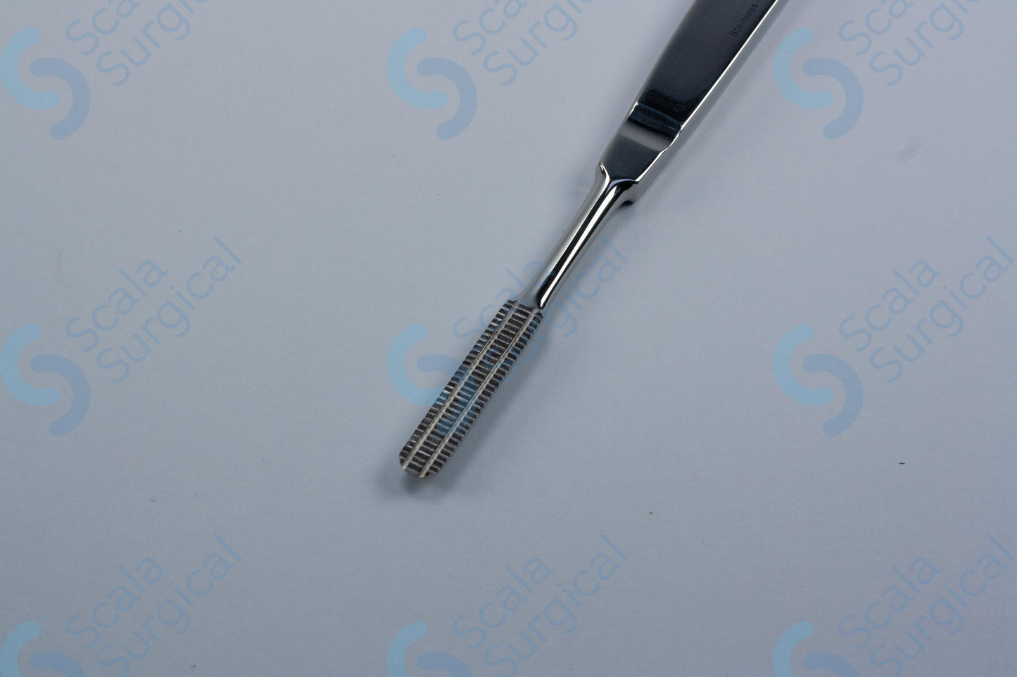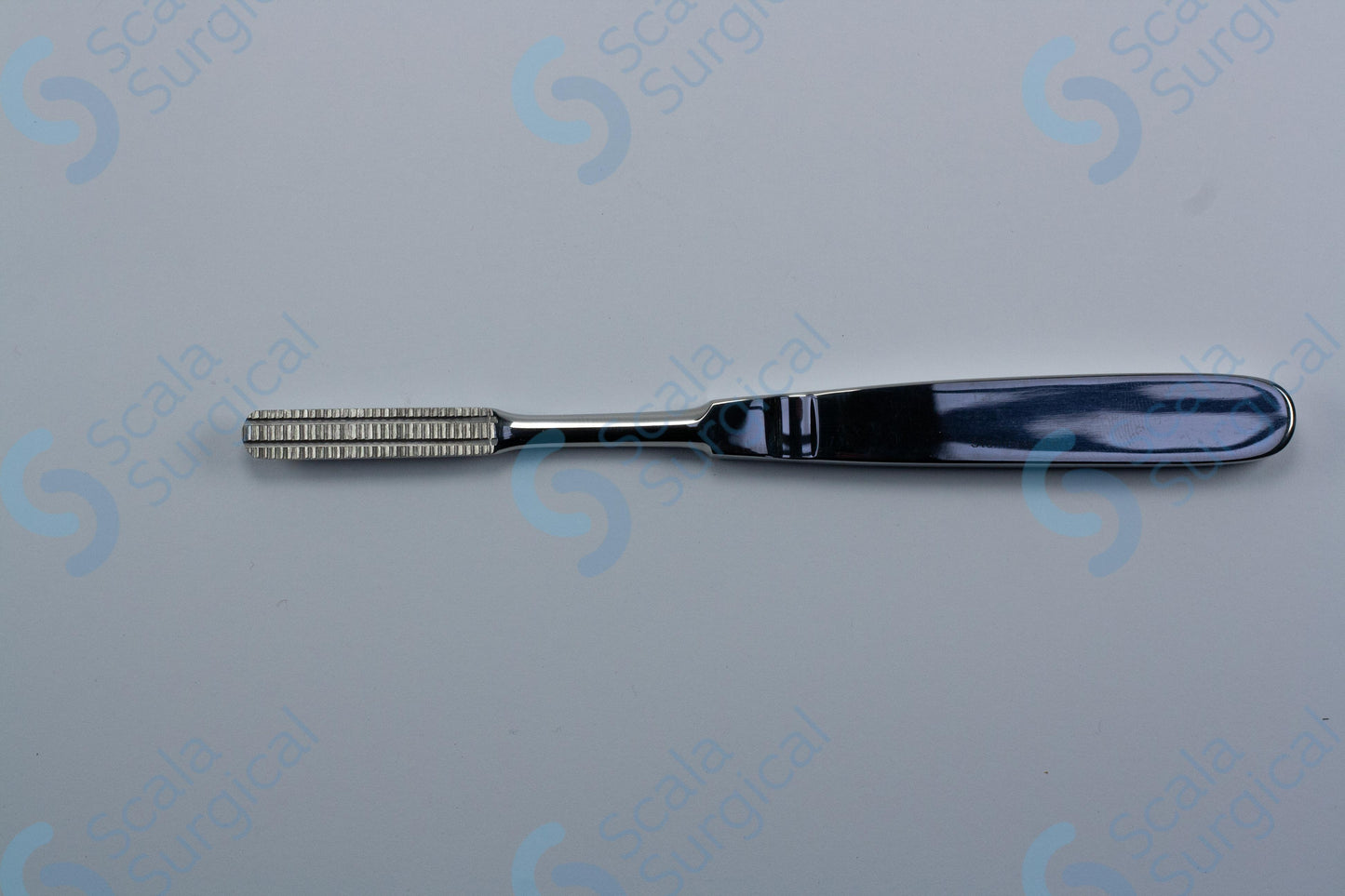 The Maltz Nasal Raspatory Hollow Handle Straight is a surgical instrument used to remove nasal polyps, deviated septum, and other nasal obstructions. It is also used to shape and smooth nasal cartilage.