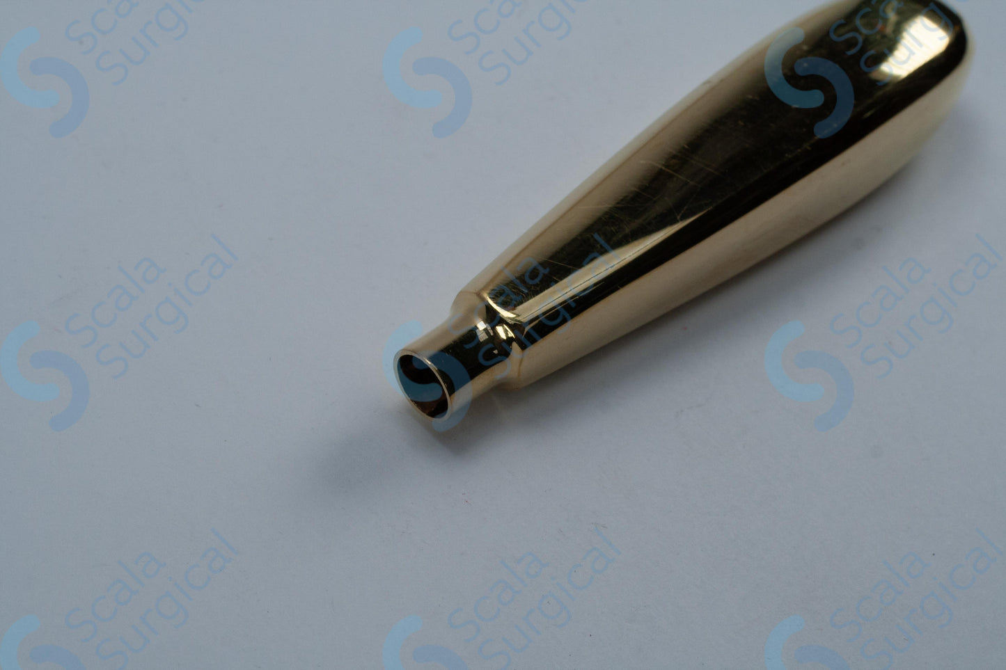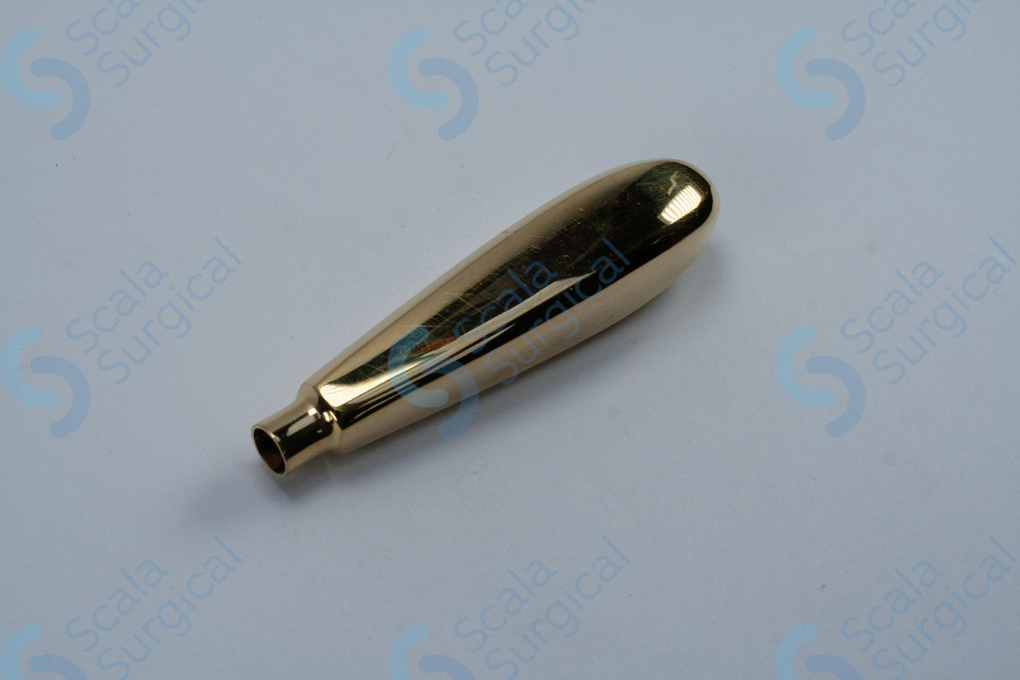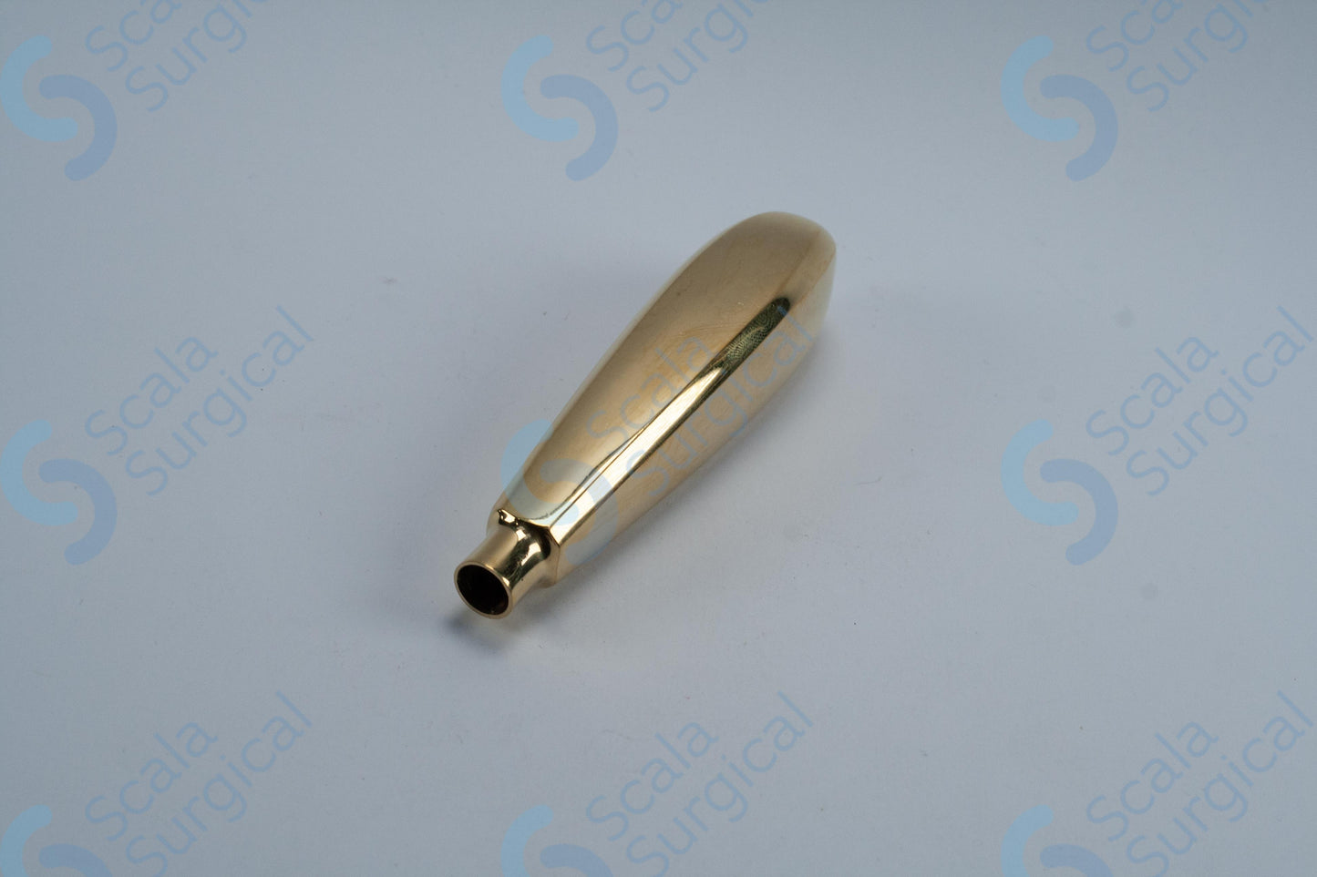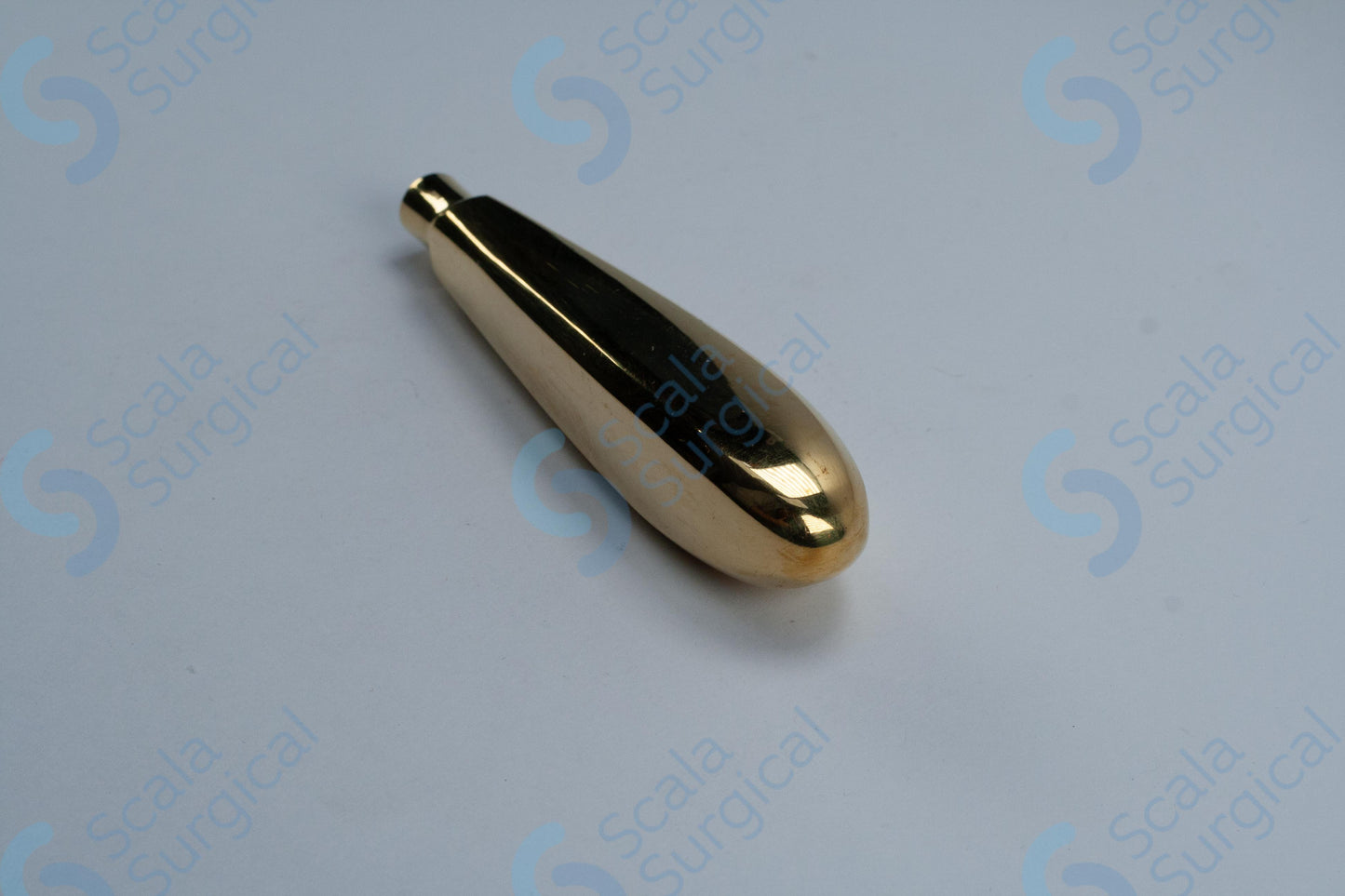 A trocar/curette brass handle is a surgical instrument used to make small incisions in the body and remove tissue samples for biopsy. The handle is not plated, meaning it is made of solid brass and is 98mm (3-15/16 inch) in length.