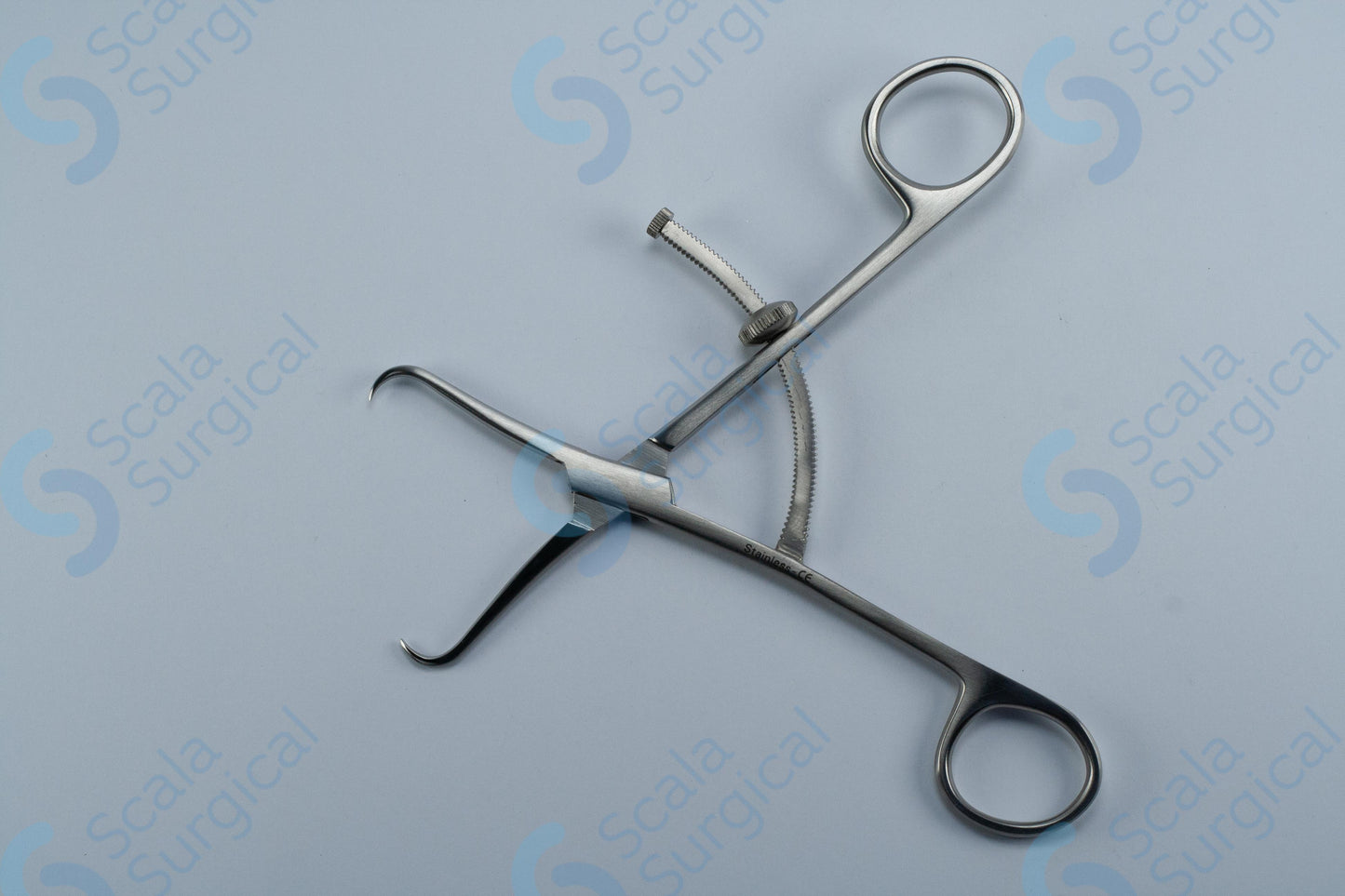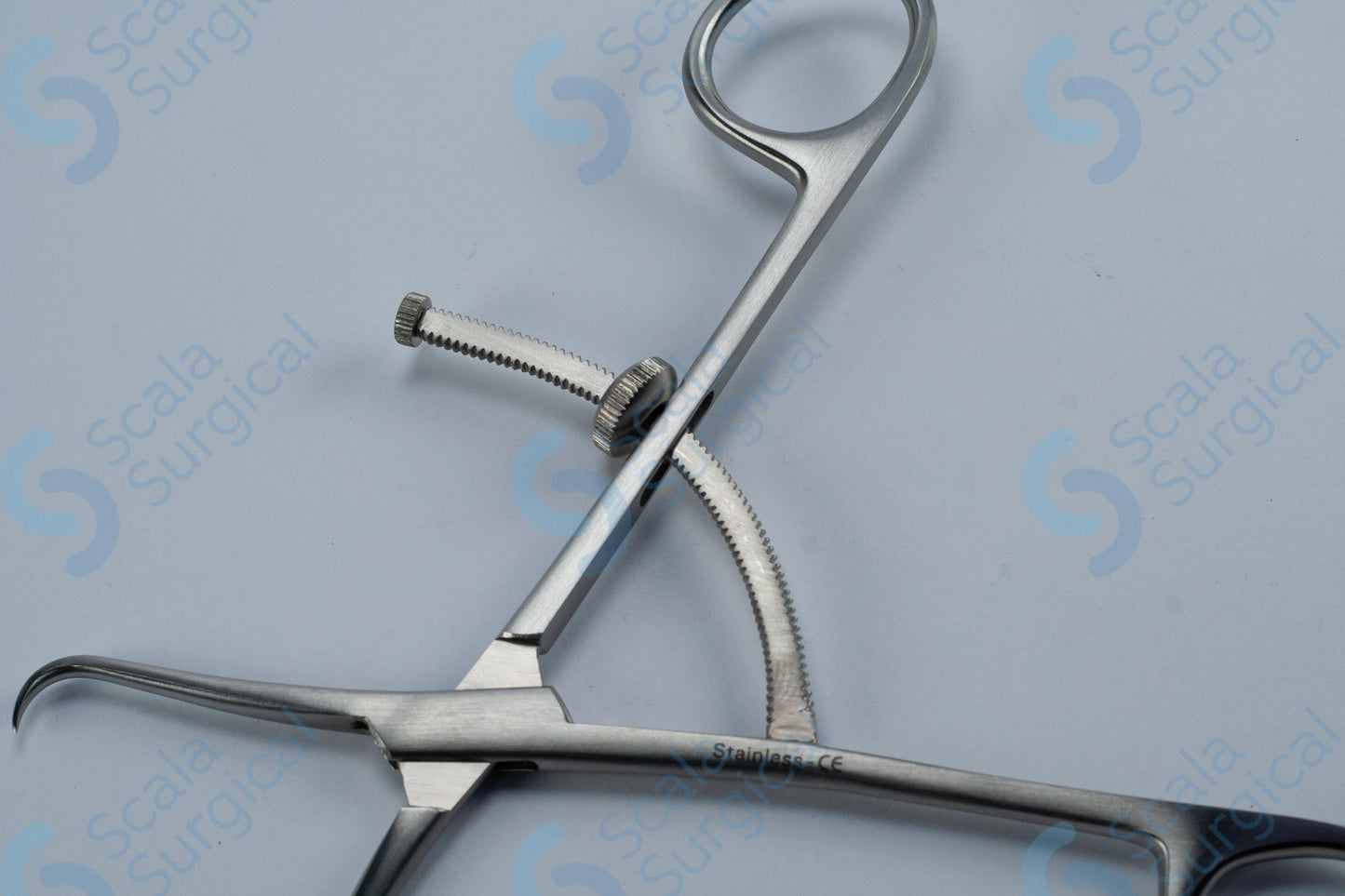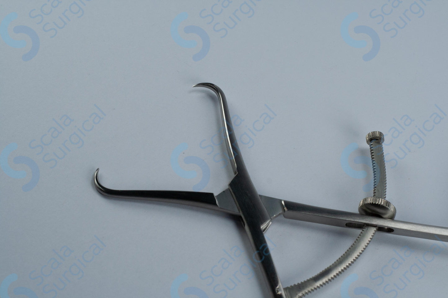 A Tullock Brown Scarf Clamp is a surgical instrument used to hold skin flaps in place during plastic surgery procedures. The clamp has two hinged arms with serrated edges that can be adjusted to fit the size and shape of the skin flap being held. The clamp is typically used to hold the skin flap in place while the surgeon performs suturing or other procedures.