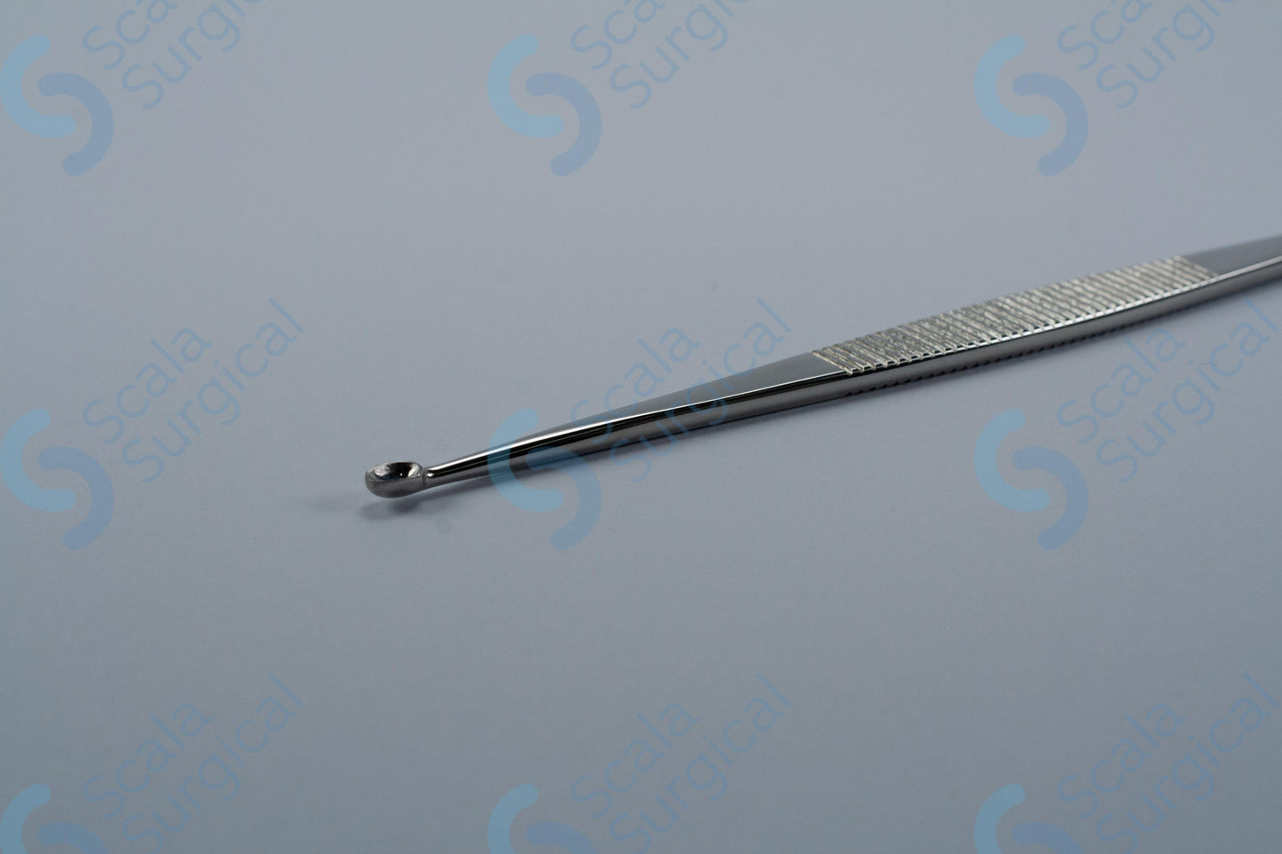 A Williger Bone Curette is a surgical instrument used to scrape, scoop, and gouge bone. It is commonly used in orthopedic and plastic surgery procedures, such as joint replacements, bone grafts, and fracture repairs. The double-ended design allows for a larger size on one end and a smaller size on the other, making it ideal for different types of procedures.