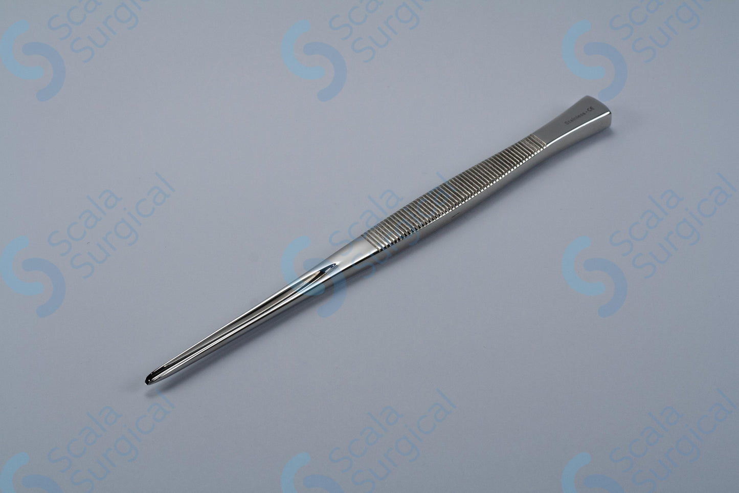 A Partsch Gouge is a surgical instrument used to make holes in bone during reconstructive surgery. It is a type of chisel-shaped instrument with a curved blade and a handle for gripping. The size of the gouge refers to the diameter of the blade, which in this case is 3mm, and the length of the blade, which is 6? inch.