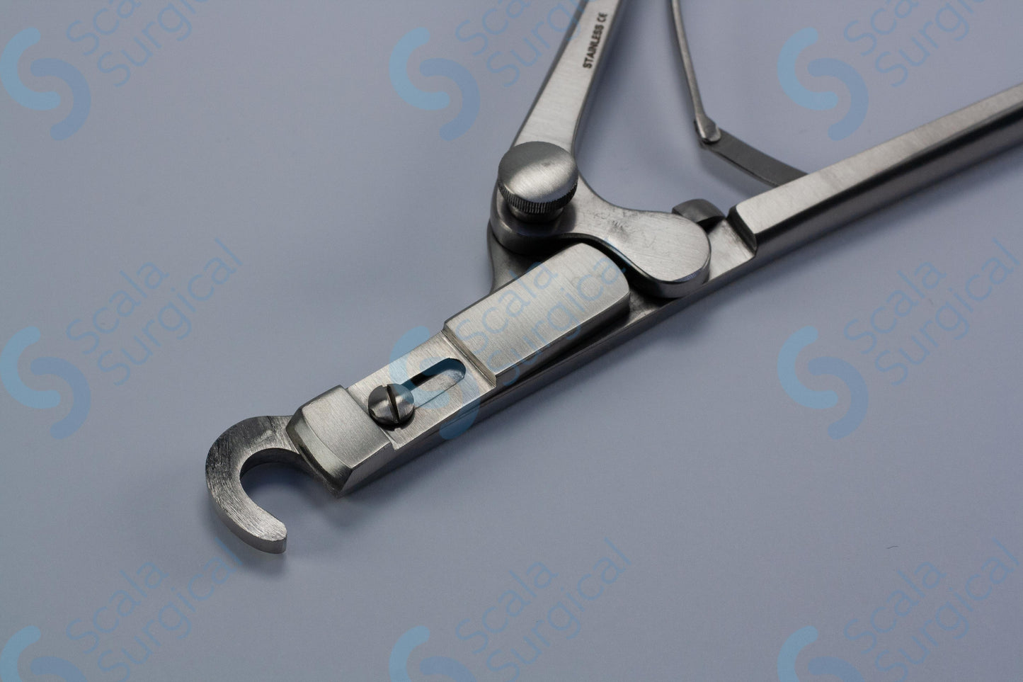 A Sellor Costotome is a surgical instrument used to cut through the ribs during chest surgery. It is a long, curved blade with a handle at one end. The size of the blade is usually measured in millimeters or inches. In this case, the Sellor Costotome is 215.9mm (8? inch) long.