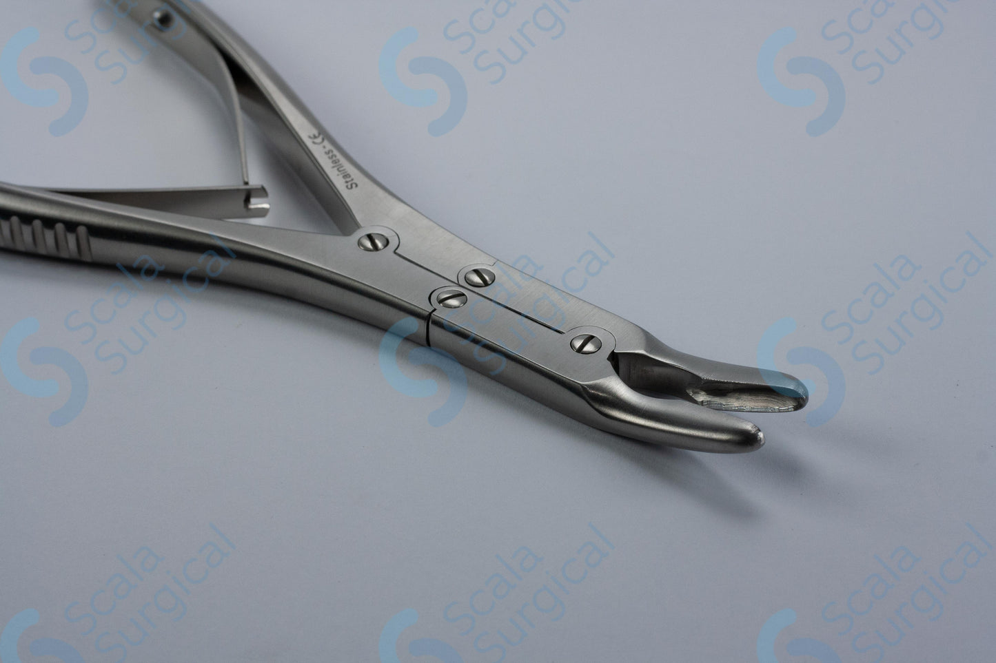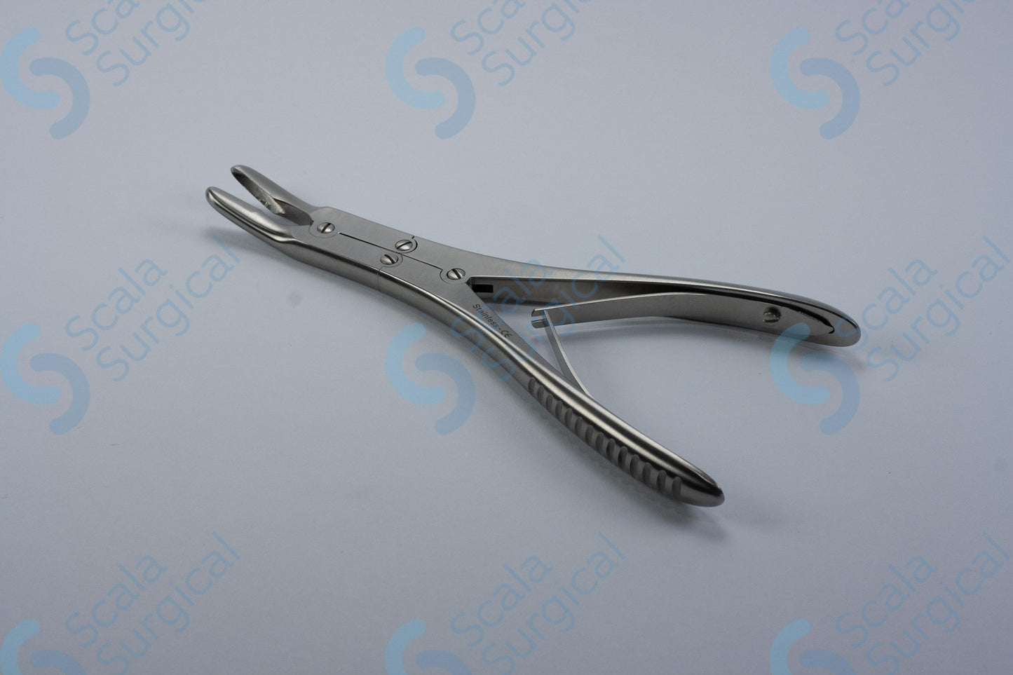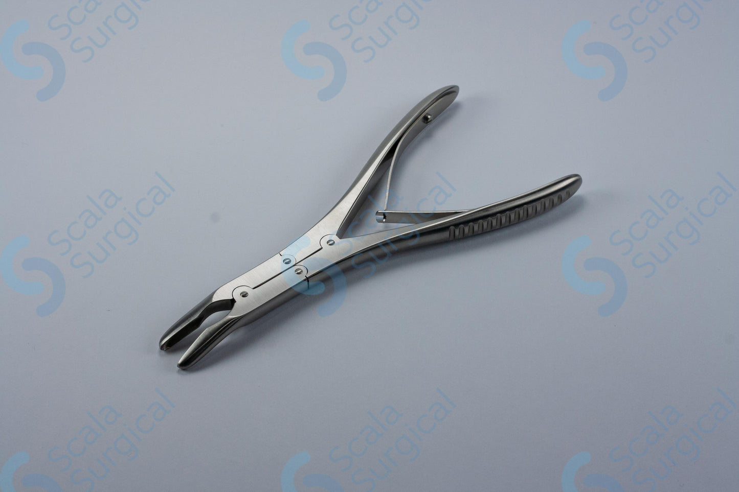 The Ruskin Curved Compound Action (177mm 7inch) is a surgical instrument used to cut and dissect tissue. It has a curved blade design and a compound action that allows for precise cutting and dissection. The instrument is commonly used in orthopedic and plastic surgery procedures.