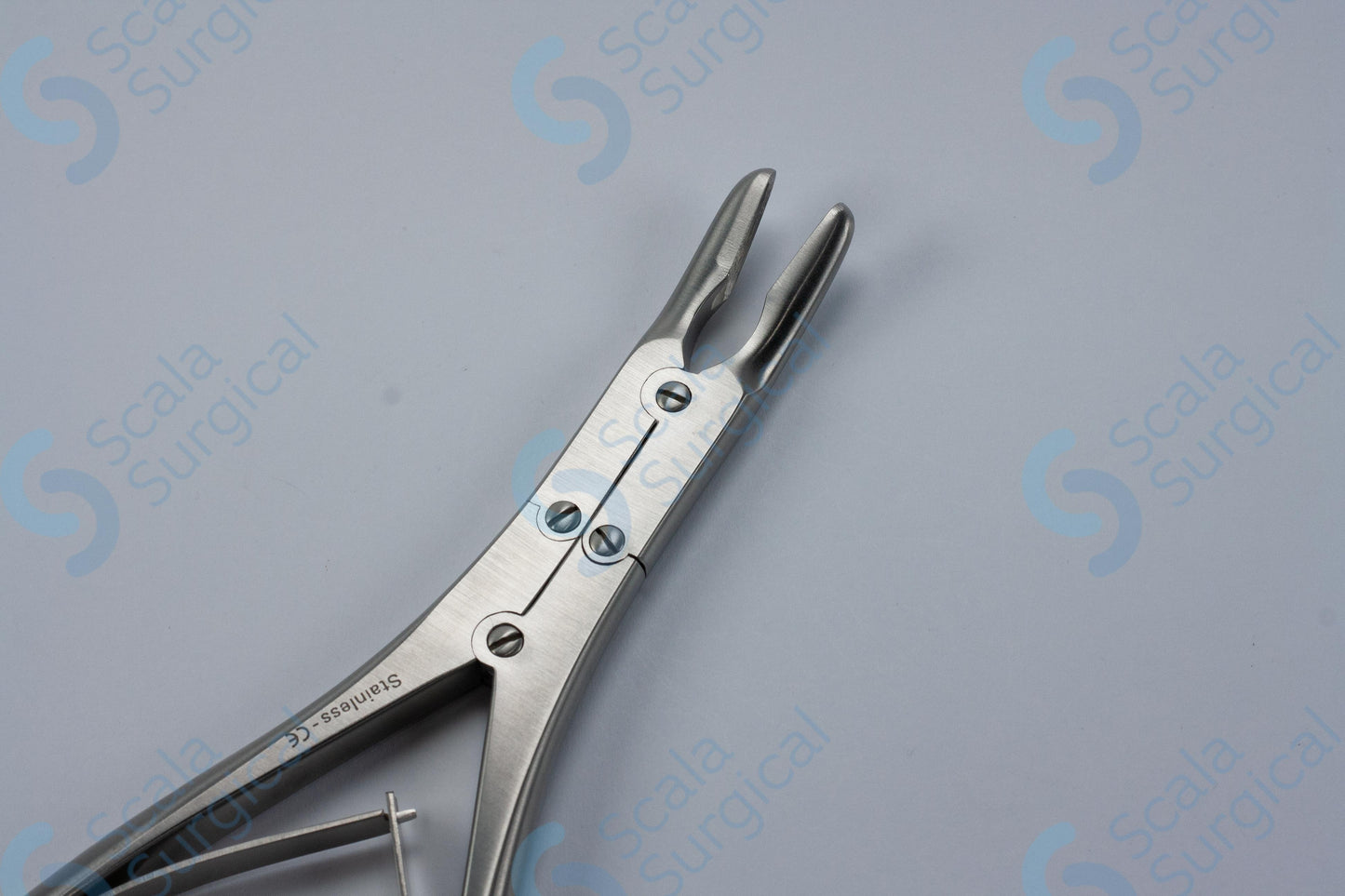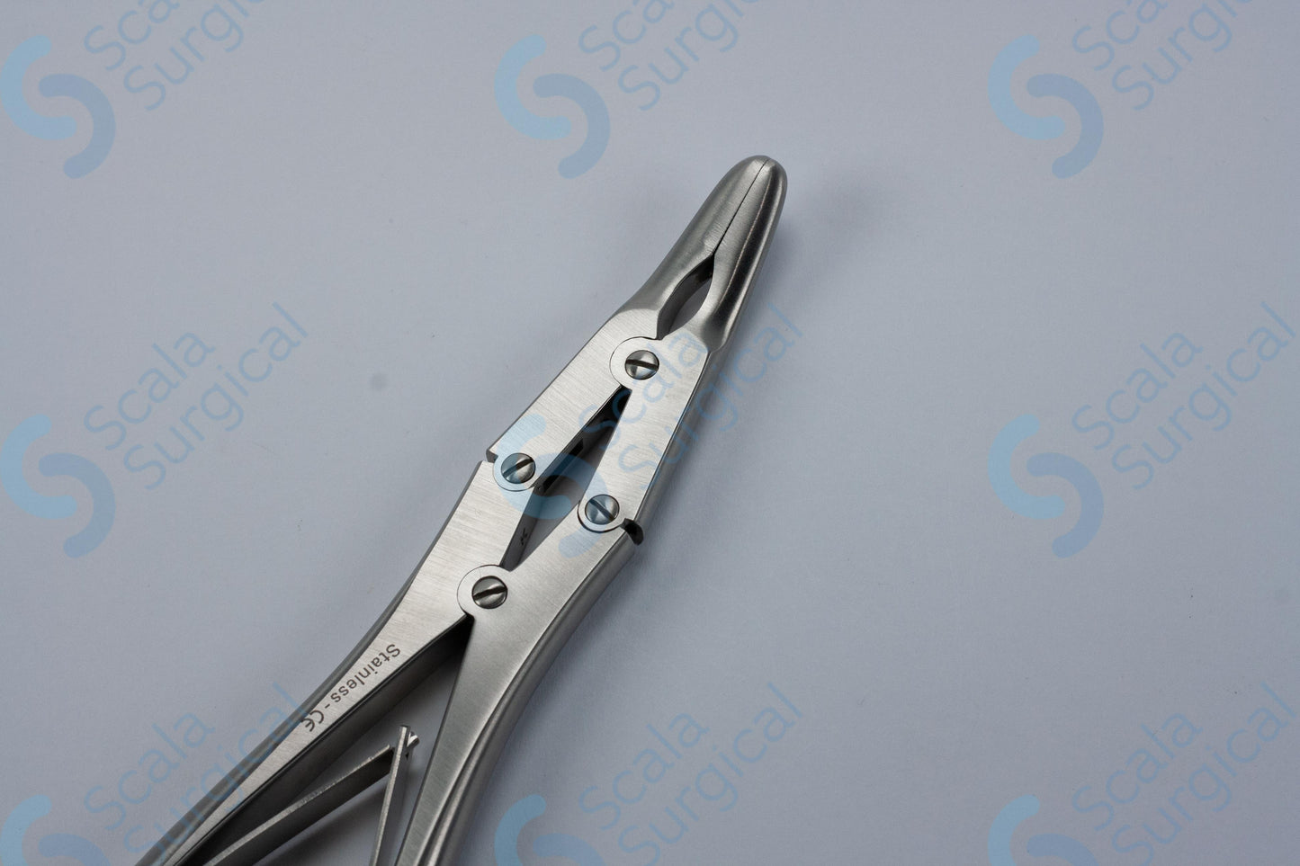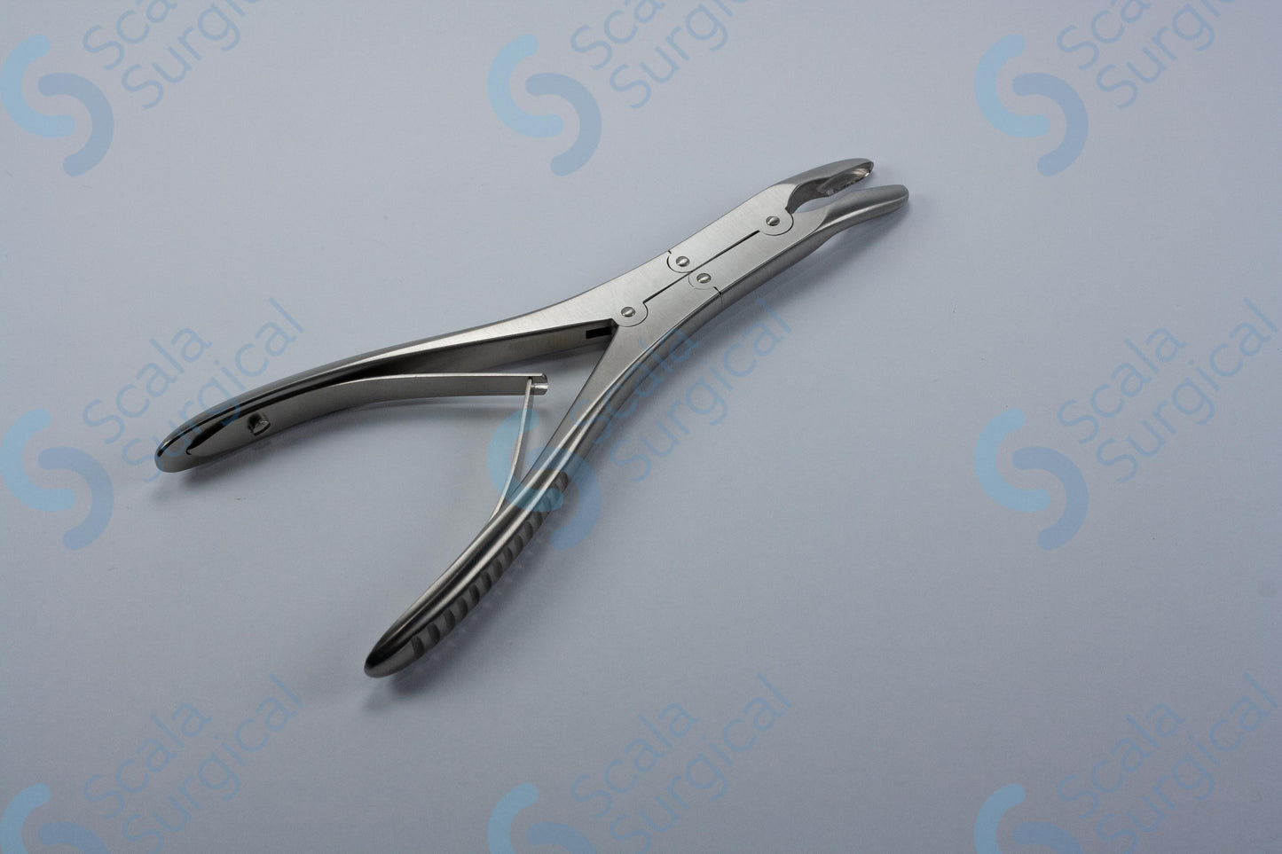 The Ruskin Curved Compound Action (177mm 7inch) is a surgical instrument used to cut and dissect tissue. It has a curved blade design and a compound action that allows for precise cutting and dissection. The instrument is commonly used in orthopedic and plastic surgery procedures.